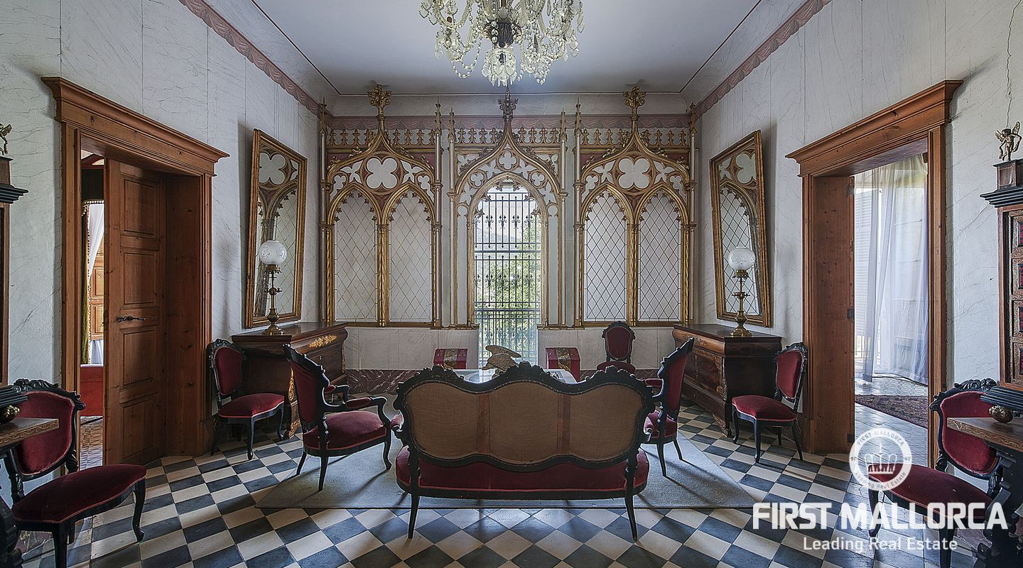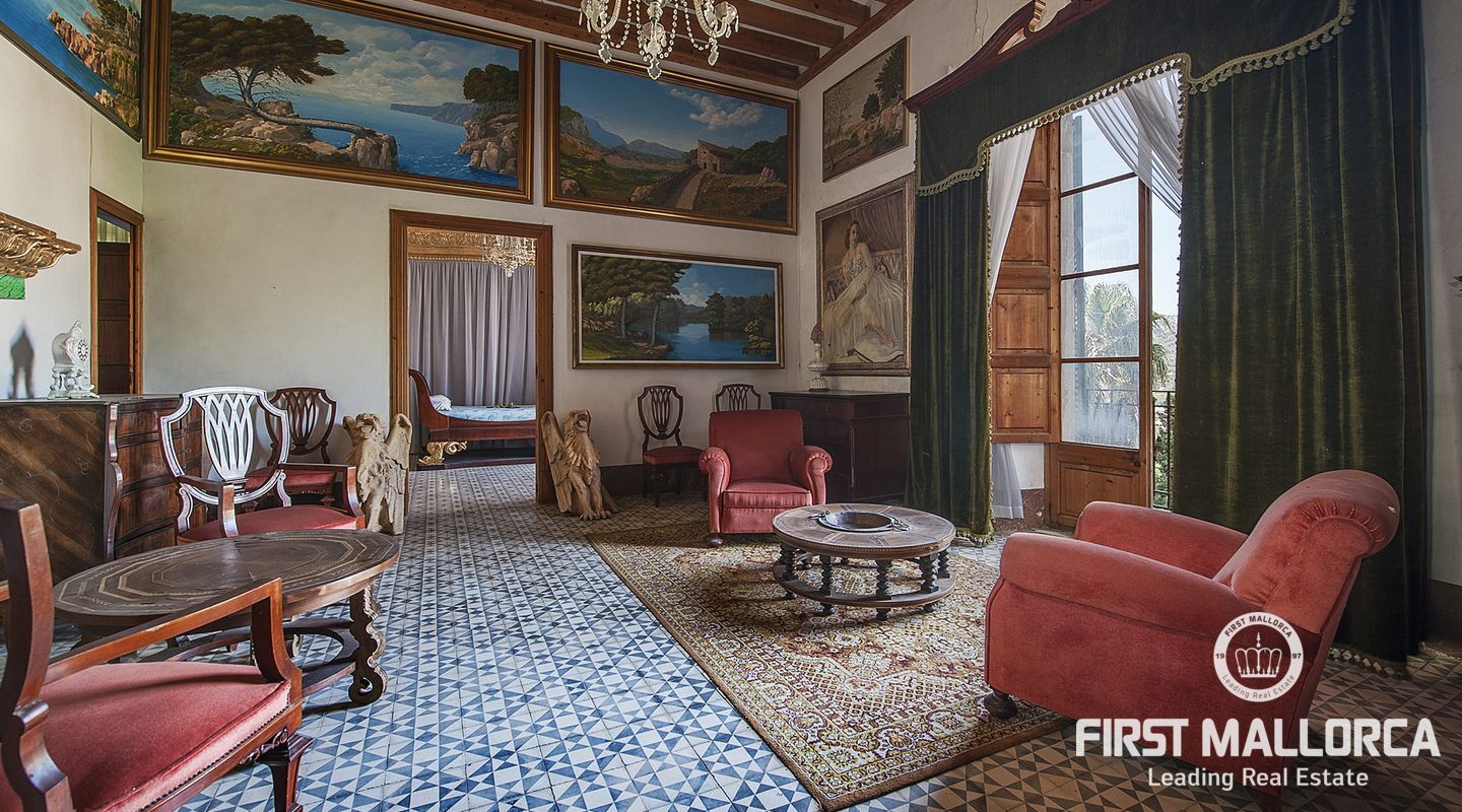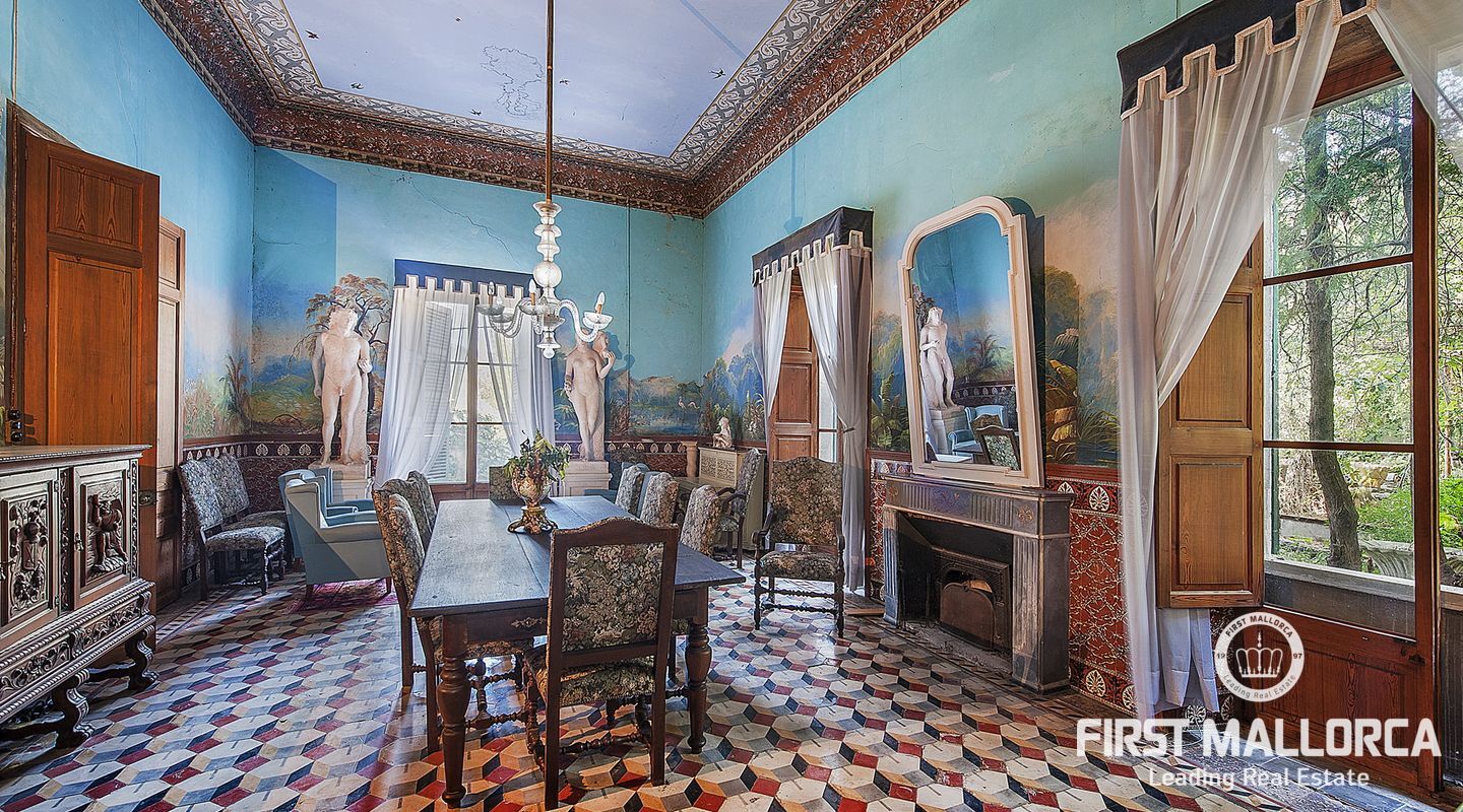 RENOVERINGSPROJEKT.Denna rymliga herrgård i Sóller på Mallorcas västkust byggdes 1902 och har panoramautsikt över den imponerande bergskedjan Tramuntana. Fastigheten med en bebyggd yta på 900 m², fördelat på 3 våningar, har 5 vardagsrum-matsalar, kök samt 14 sovrum och 4 badrum.