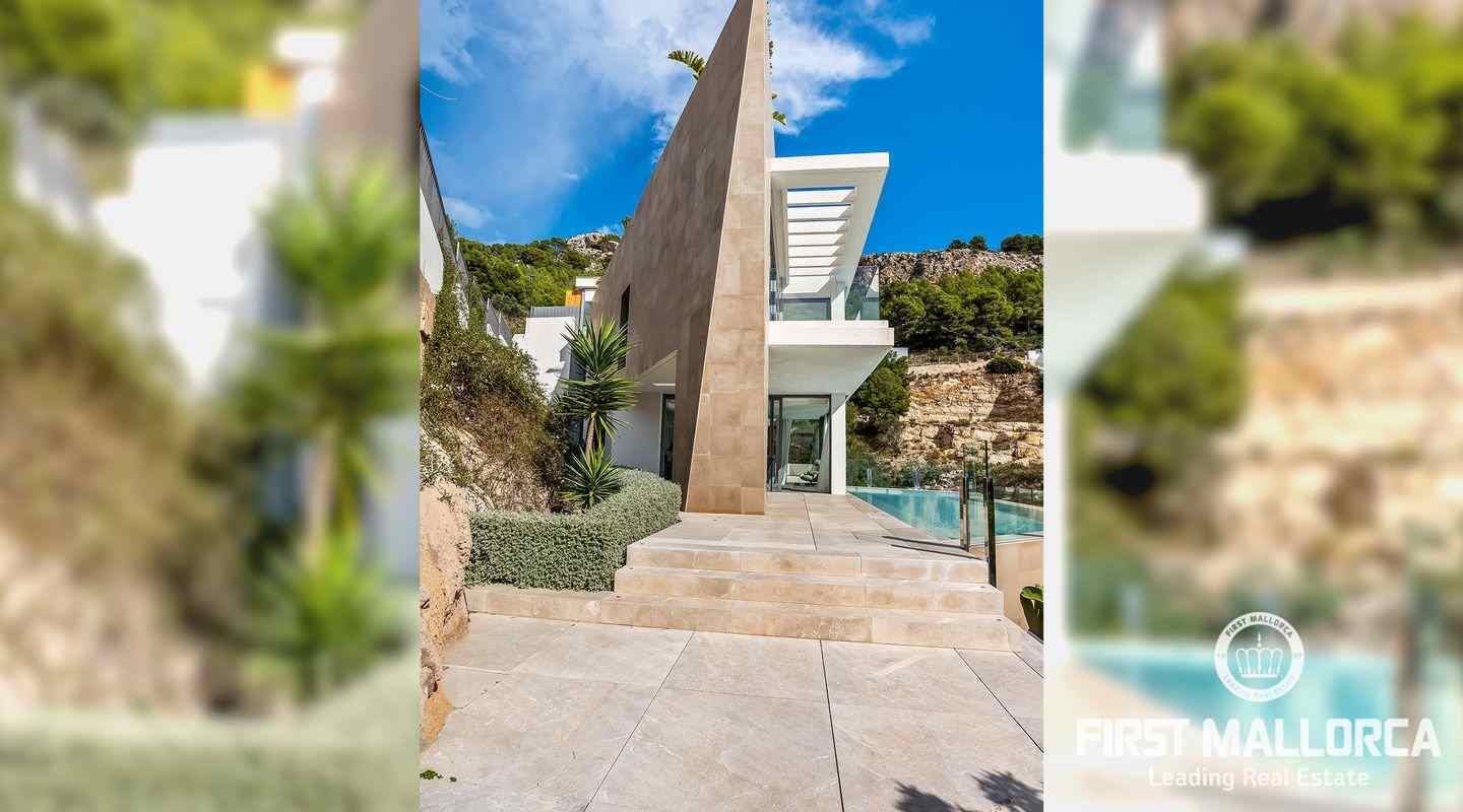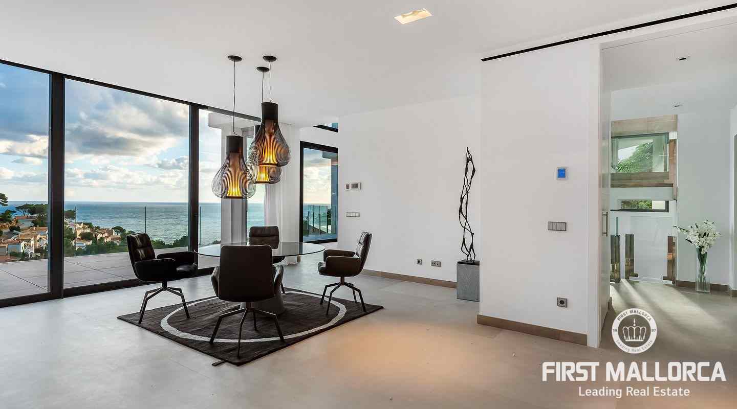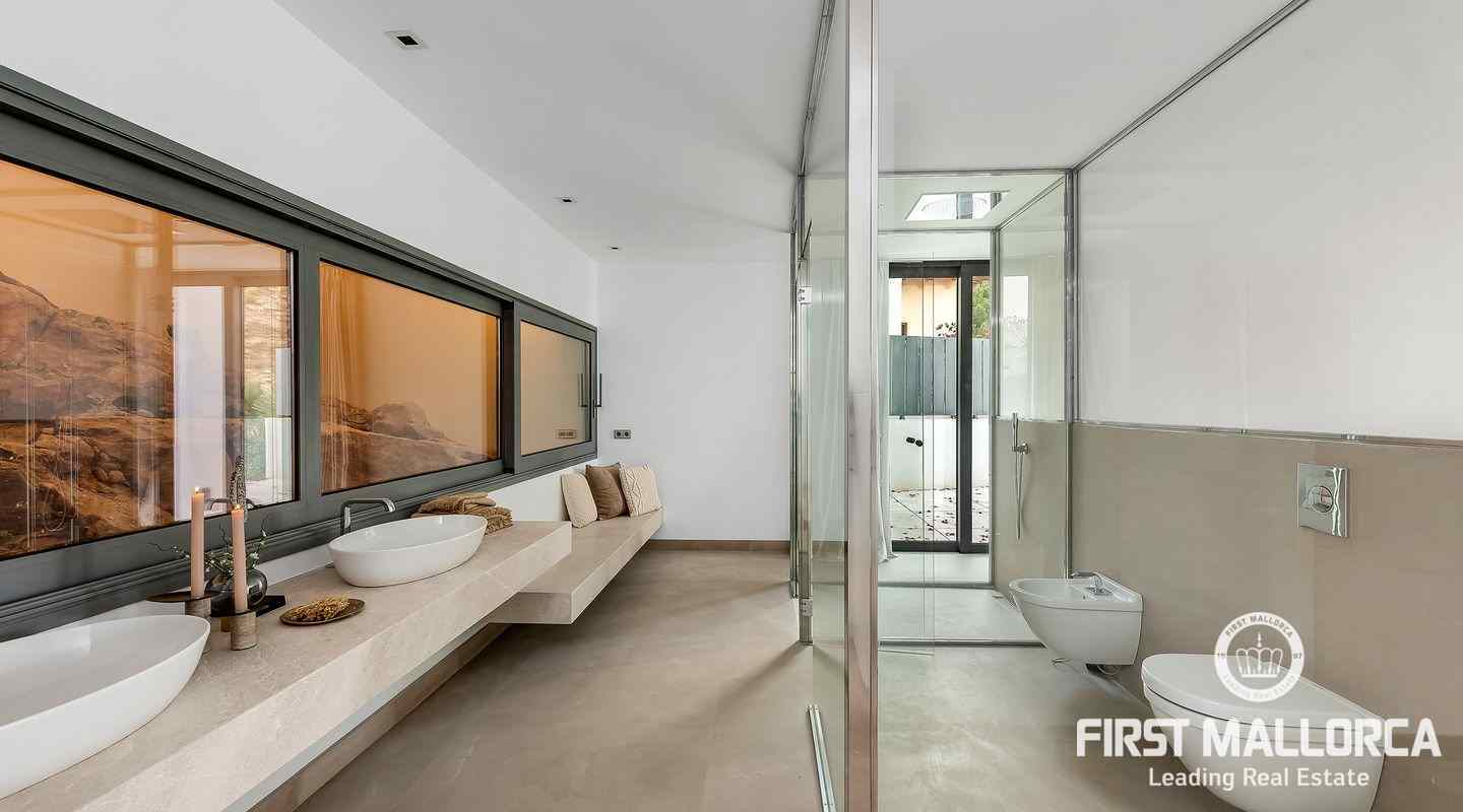 Denna ultramoderna, prestigefyllda villa ligger på ett absolut toppläge på solsidan i Canyamel. På tre våningar finns totalt tre sovrum, fem badrum, ett rymligt vardagsrum, en separat matsal med öppet kök, ett fitnessrum och en hemmabio. Från alla rum i denna exceptionella fastighet har du en fantastisk och fri utsikt över havet och det vackra bergslandskapet runt Canyamel. Den stora poolen och den täckta terrassen med öppen spis bjuder in till avkoppling. Både på sommaren och vintern. Den berömda stranden Canyamel ligger bara några minuter bort. Detsamma gäller golfbanan och de välkända restaurangerna i byn.