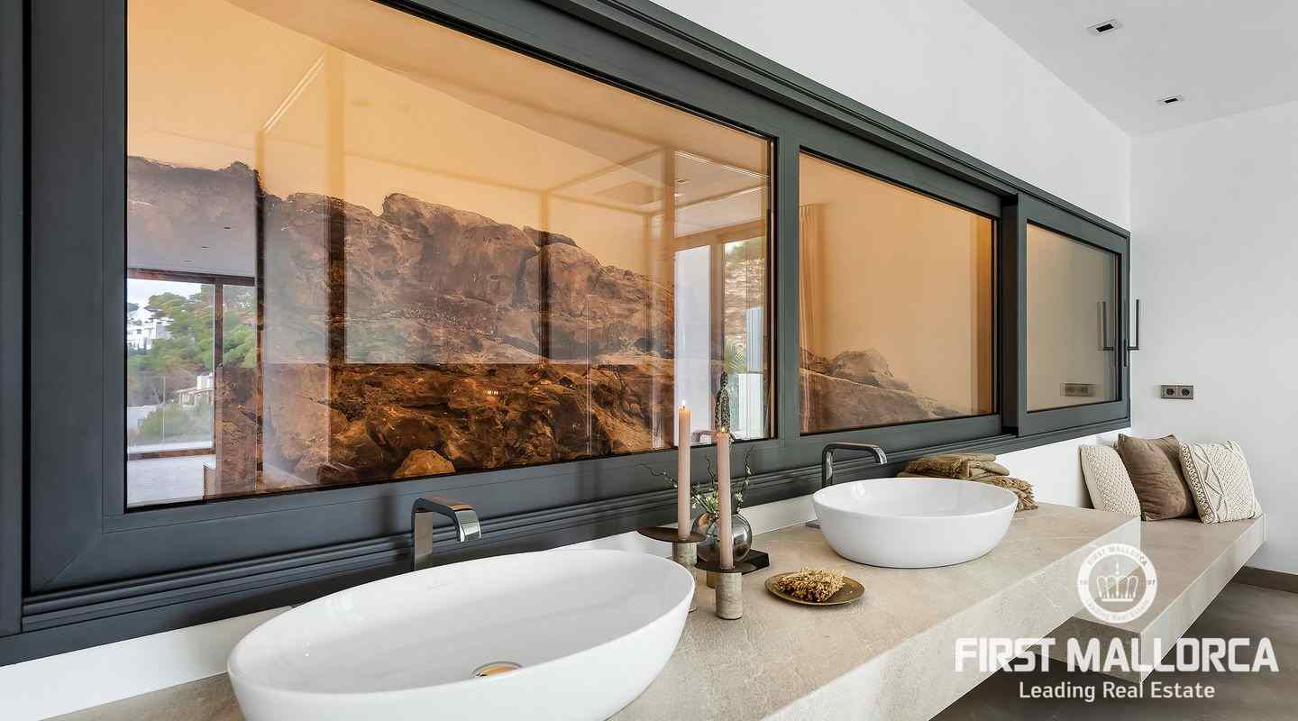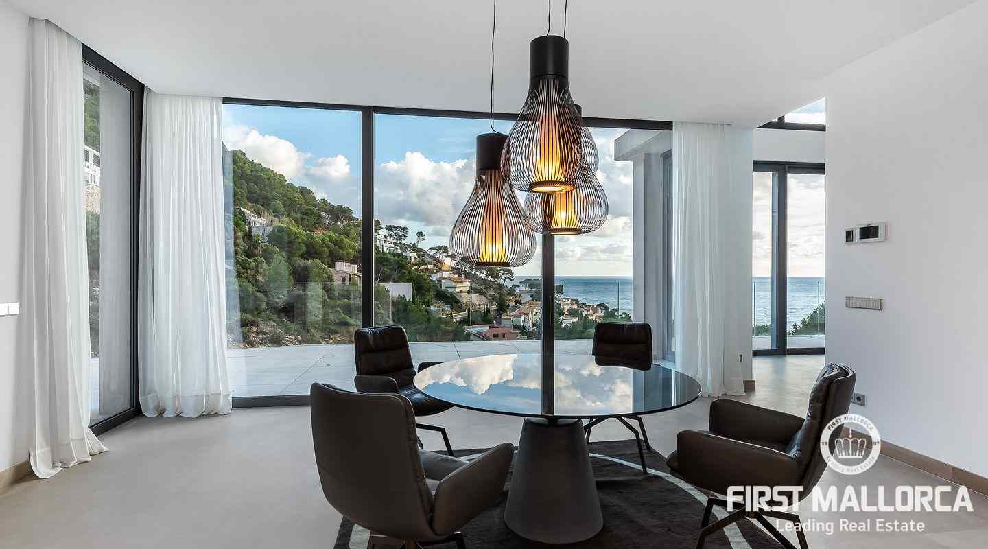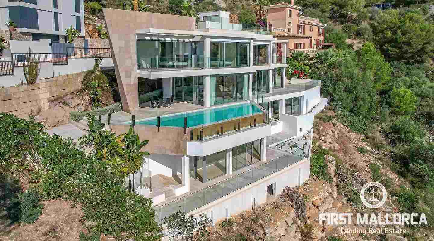 Denna ultramoderna, prestigefyllda villa ligger på ett absolut toppläge på solsidan i Canyamel. På tre våningar finns totalt tre sovrum, fem badrum, ett rymligt vardagsrum, en separat matsal med öppet kök, ett fitnessrum och en hemmabio. Från alla rum i denna exceptionella fastighet har du en fantastisk och fri utsikt över havet och det vackra bergslandskapet runt Canyamel. Den stora poolen och den täckta terrassen med öppen spis bjuder in till avkoppling. Både på sommaren och vintern. Den berömda stranden Canyamel ligger bara några minuter bort. Detsamma gäller golfbanan och de välkända restaurangerna i byn.