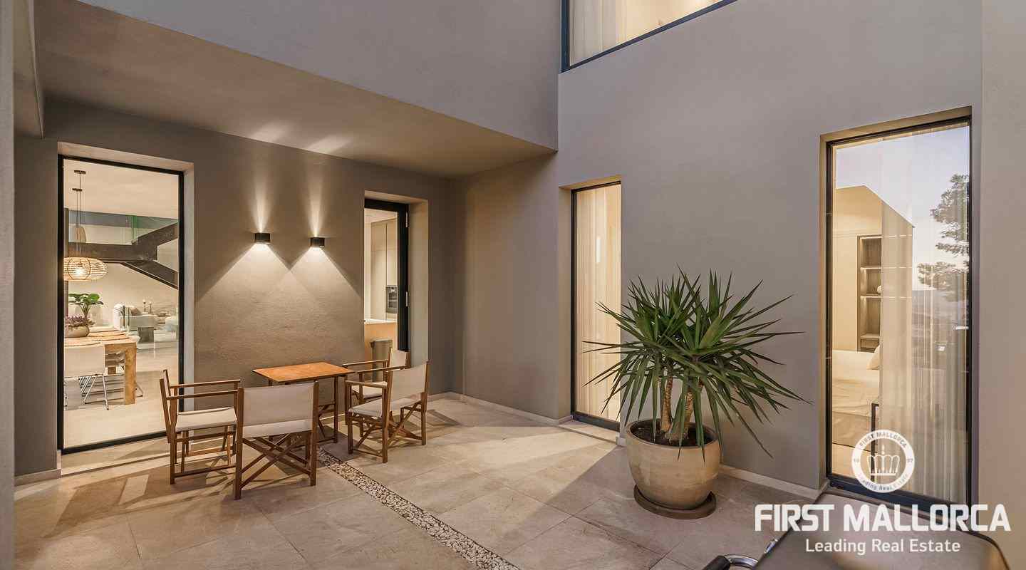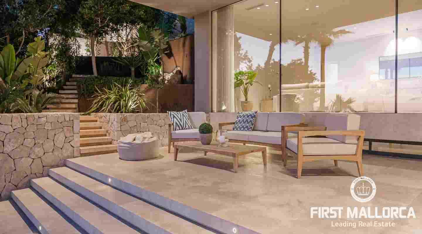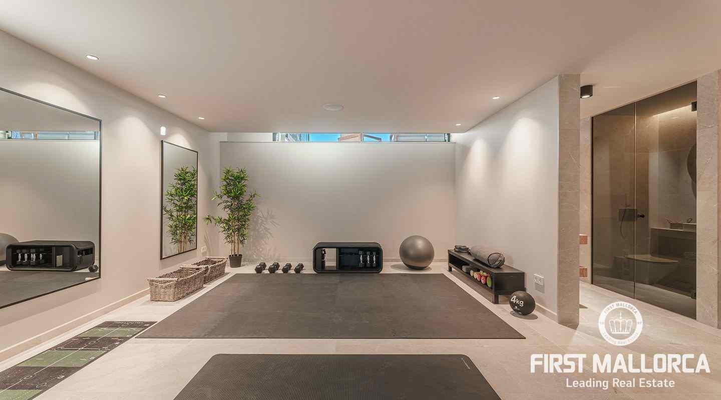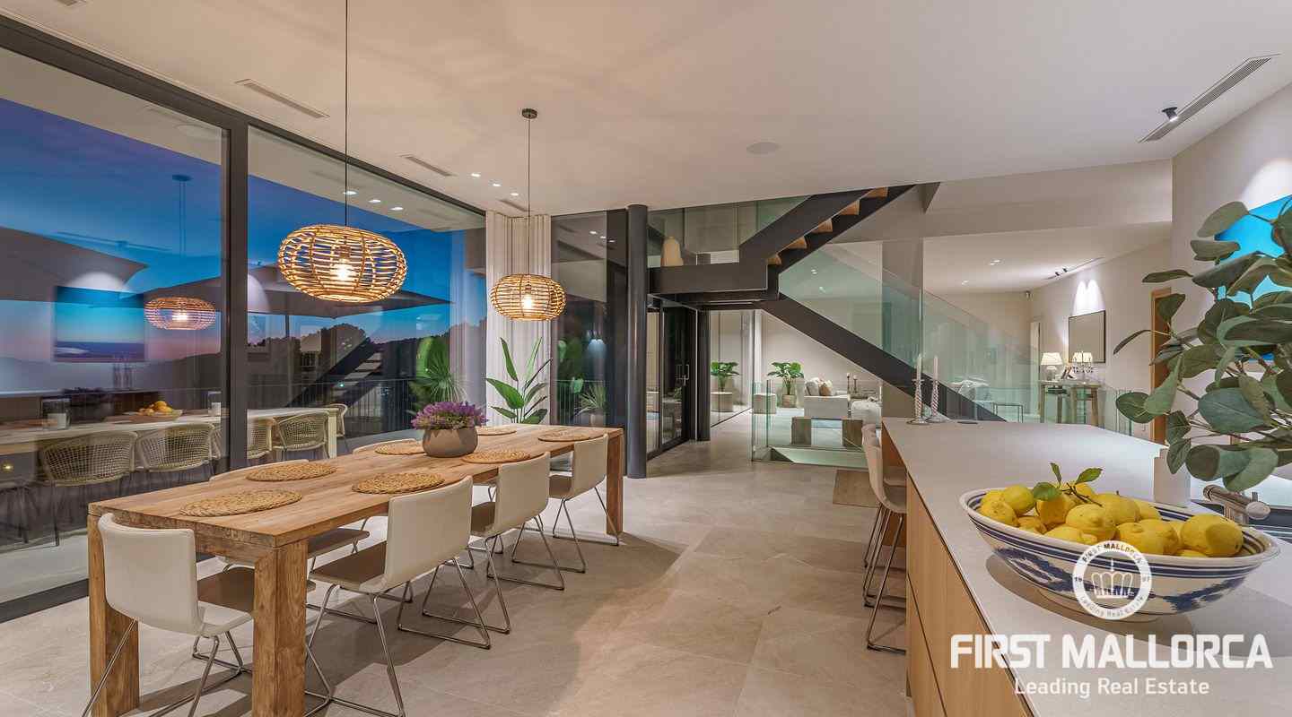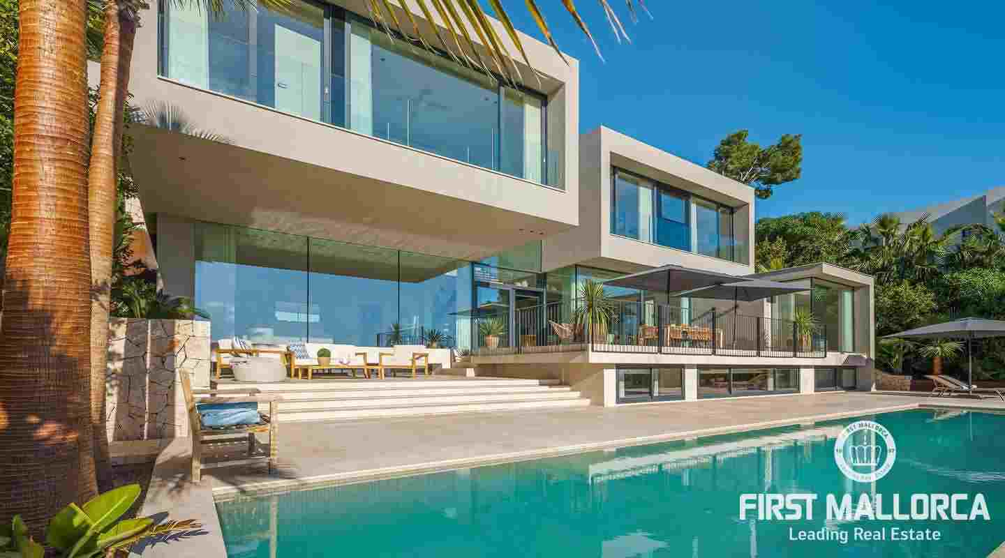 Denna moderna designvilla ligger i bergen i Costa d'en Blanes ovanför Puerto Portals. Den ädla nybyggnaden erbjuder en spektakulär utsikt över landskapet, sydvästkusten och det öppna havet. Det finns 5 sovrum och 4 badrum, ett rymligt och öppet vardagsrum/matsal och en spa-avdelning med fitnessrum och ångbastu. Den sensationella och oöverblickbara havsutsikten kan avnjutas från alla inomhus- och utomhusområden. Andra funktioner ingår: Hiss, hemautomationssystem, golvvärme, luftkonditionering varm / kall, öppen spis och en täckt parkeringsplats för 4 bilar. Costa d'en Blanes är ett lugnt bostadsområde, bara några minuter från den exklusiva småbåtshamnen Puerto Portals. Området erbjuder 24-timmars bevakning, olika tennisbanor, privat parkering och tillgång till stranden Costa d'en Blanes. Palmas centrum nås på bara 10 minuter och den internationella flygplatsen på mindre än 20 minuter med bil. Det finns flera internationella privatskolor och golfbanor i omedelbar närhet.