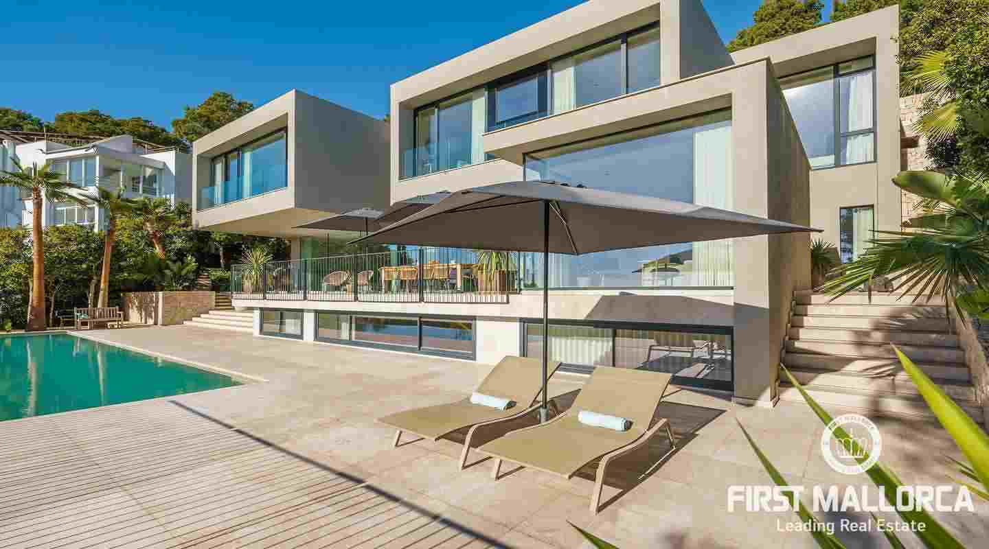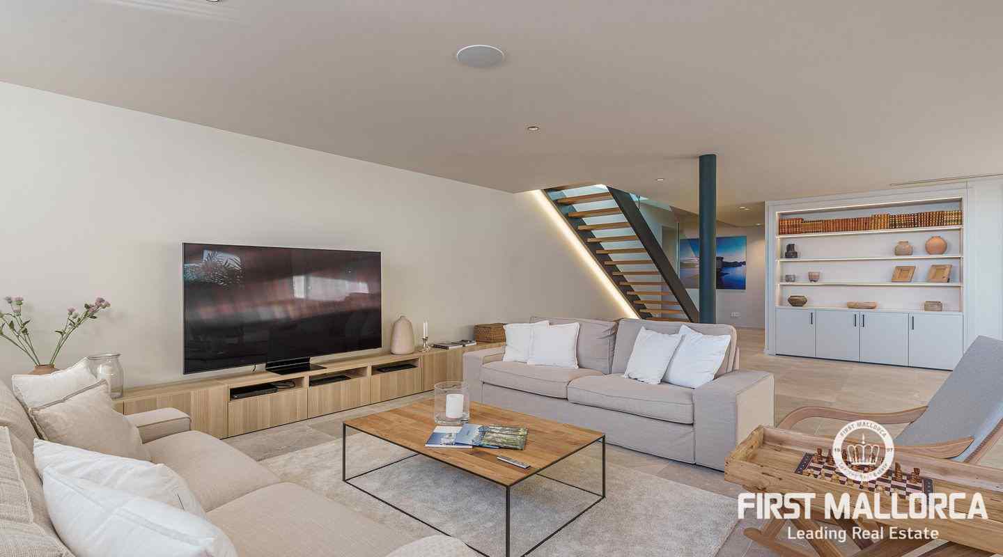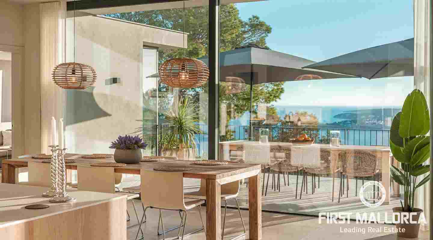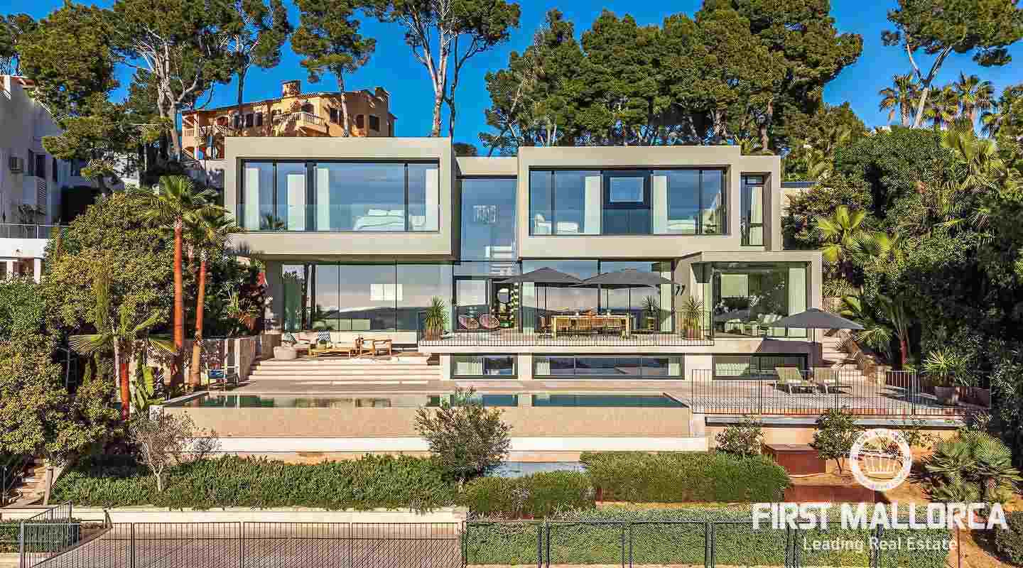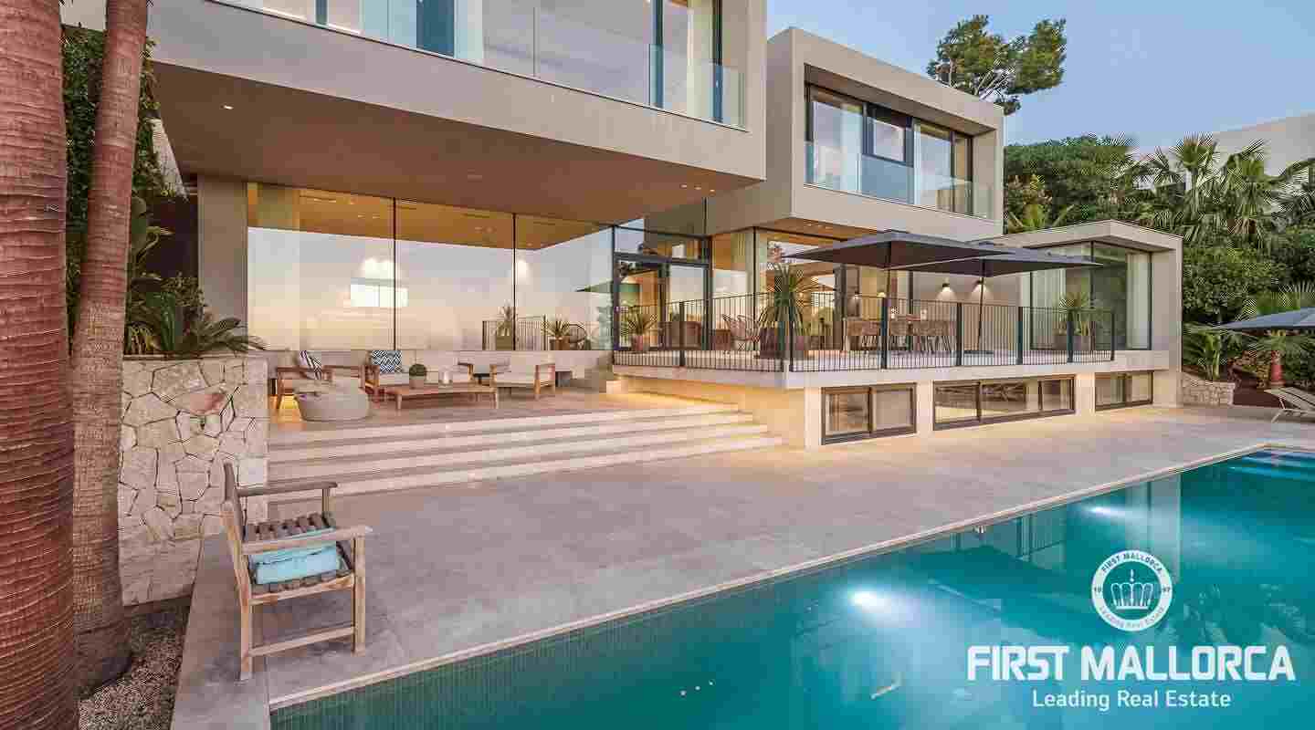 Denna moderna designvilla ligger i bergen i Costa d'en Blanes ovanför Puerto Portals. Den ädla nybyggnaden erbjuder en spektakulär utsikt över landskapet, sydvästkusten och det öppna havet. Det finns 5 sovrum och 4 badrum, ett rymligt och öppet vardagsrum/matsal och en spa-avdelning med fitnessrum och ångbastu. Den sensationella och oöverblickbara havsutsikten kan avnjutas från alla inomhus- och utomhusområden. Andra funktioner ingår: Hiss, hemautomationssystem, golvvärme, luftkonditionering varm / kall, öppen spis och en täckt parkeringsplats för 4 bilar. Costa d'en Blanes är ett lugnt bostadsområde, bara några minuter från den exklusiva småbåtshamnen Puerto Portals. Området erbjuder 24-timmars bevakning, olika tennisbanor, privat parkering och tillgång till stranden Costa d'en Blanes. Palmas centrum nås på bara 10 minuter och den internationella flygplatsen på mindre än 20 minuter med bil. Det finns flera internationella privatskolor och golfbanor i omedelbar närhet.