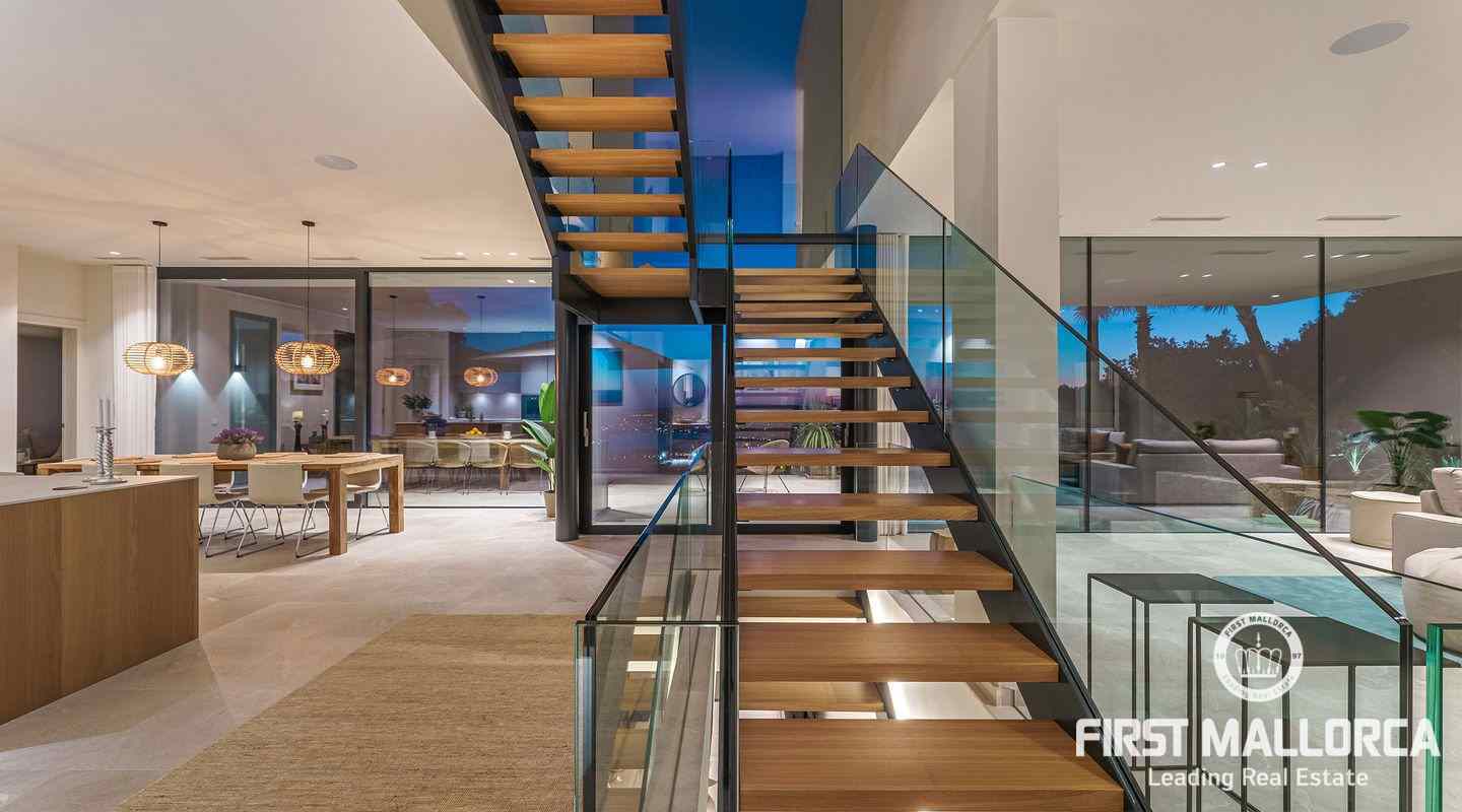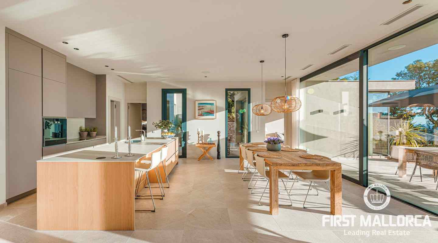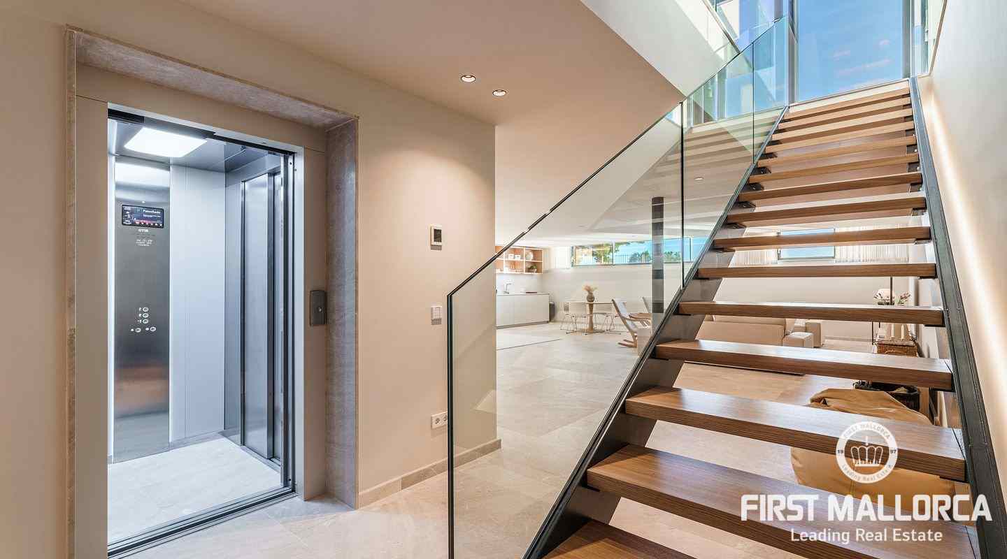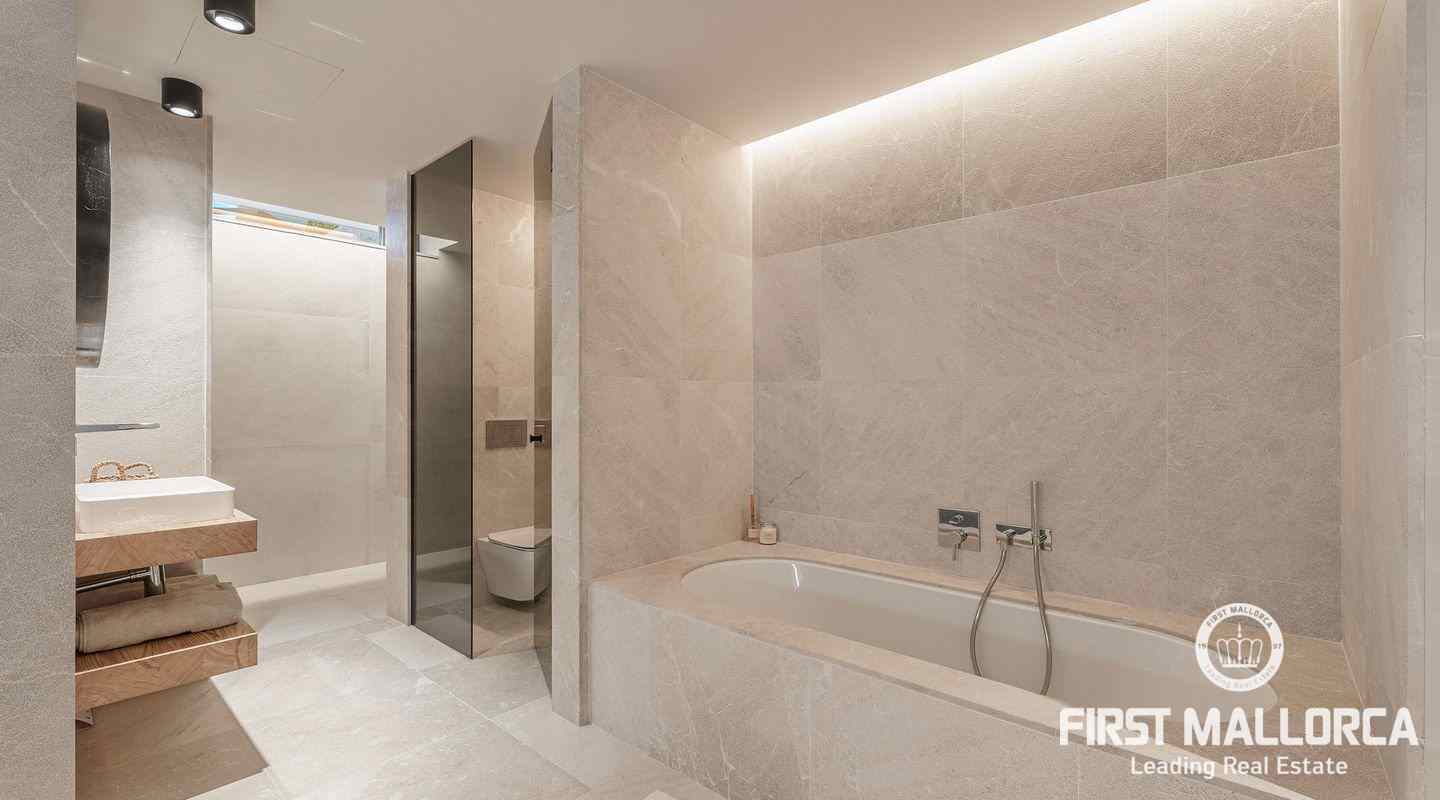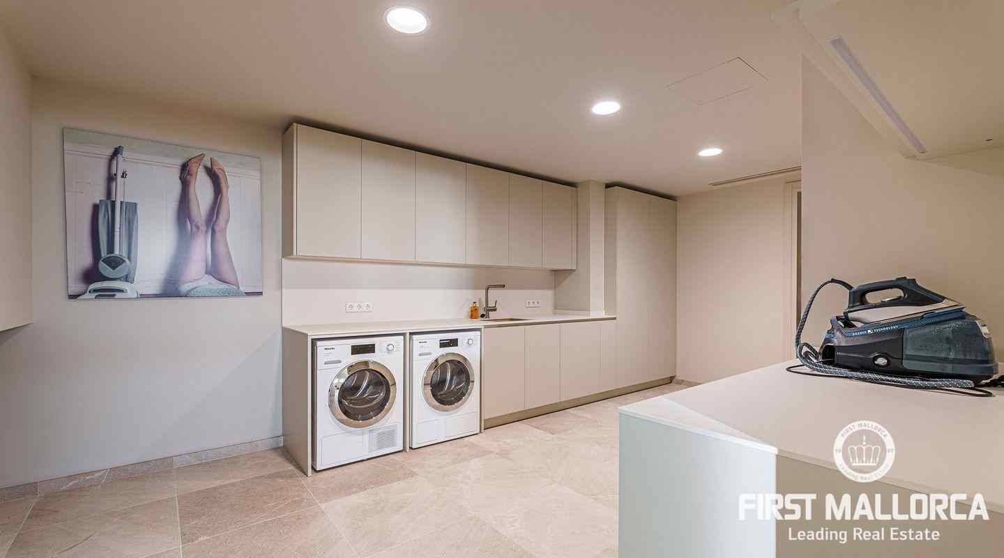 Denna moderna designvilla ligger i bergen i Costa d'en Blanes ovanför Puerto Portals. Den ädla nybyggnaden erbjuder en spektakulär utsikt över landskapet, sydvästkusten och det öppna havet. Det finns 5 sovrum och 4 badrum, ett rymligt och öppet vardagsrum/matsal och en spa-avdelning med fitnessrum och ångbastu. Den sensationella och oöverblickbara havsutsikten kan avnjutas från alla inomhus- och utomhusområden. Andra funktioner ingår: Hiss, hemautomationssystem, golvvärme, luftkonditionering varm / kall, öppen spis och en täckt parkeringsplats för 4 bilar. Costa d'en Blanes är ett lugnt bostadsområde, bara några minuter från den exklusiva småbåtshamnen Puerto Portals. Området erbjuder 24-timmars bevakning, olika tennisbanor, privat parkering och tillgång till stranden Costa d'en Blanes. Palmas centrum nås på bara 10 minuter och den internationella flygplatsen på mindre än 20 minuter med bil. Det finns flera internationella privatskolor och golfbanor i omedelbar närhet.