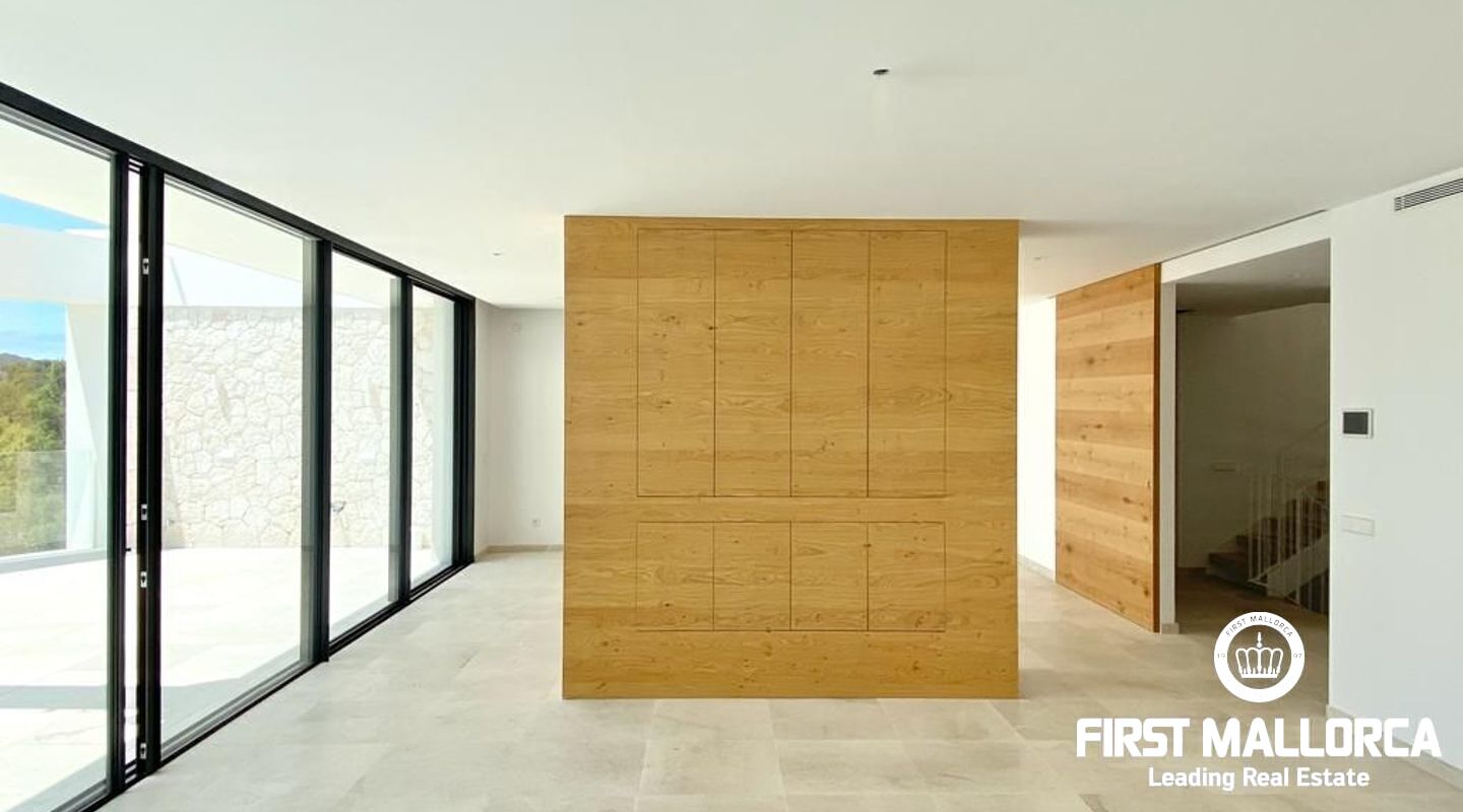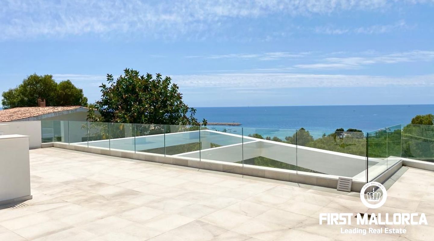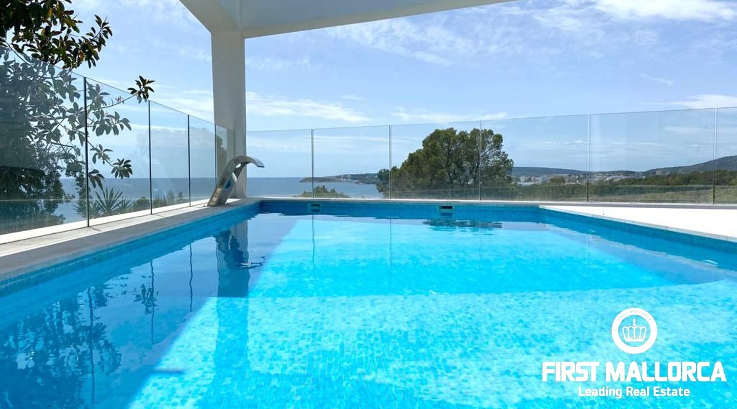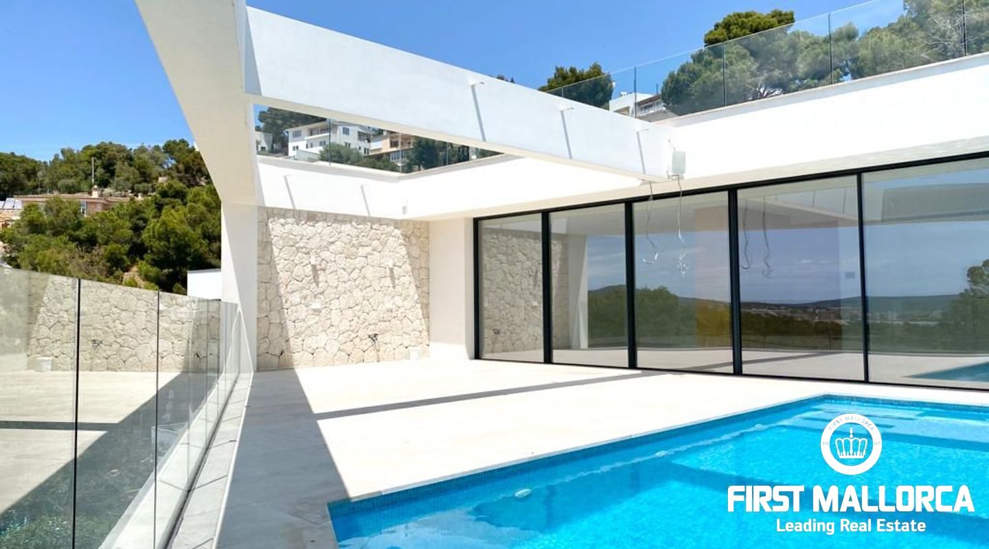 Denna nybyggda villa tronar ovanför Puerto Portals i bostadsområdet Costa d'en Blanes. Den moderna villan har en fantastisk panoramautsikt över havet över Portals hamn och Palmanovabukten upp till Cala Vinyas. Inte bara en imponerande utsikt under dagen utan också ett förtrollande ljusspel på natten. Den moderna designen är kantig och tydlig, med traditionella medelhavsbyggnadselement som användning av natursten och trä som möter den senaste tekniken. Den imponerande villan med 4 sovrum och 5 badrum har en byggd yta på 450 m2 och har öppna och täckta terrasser och en saltvattenpool, även den med havsutsikt.