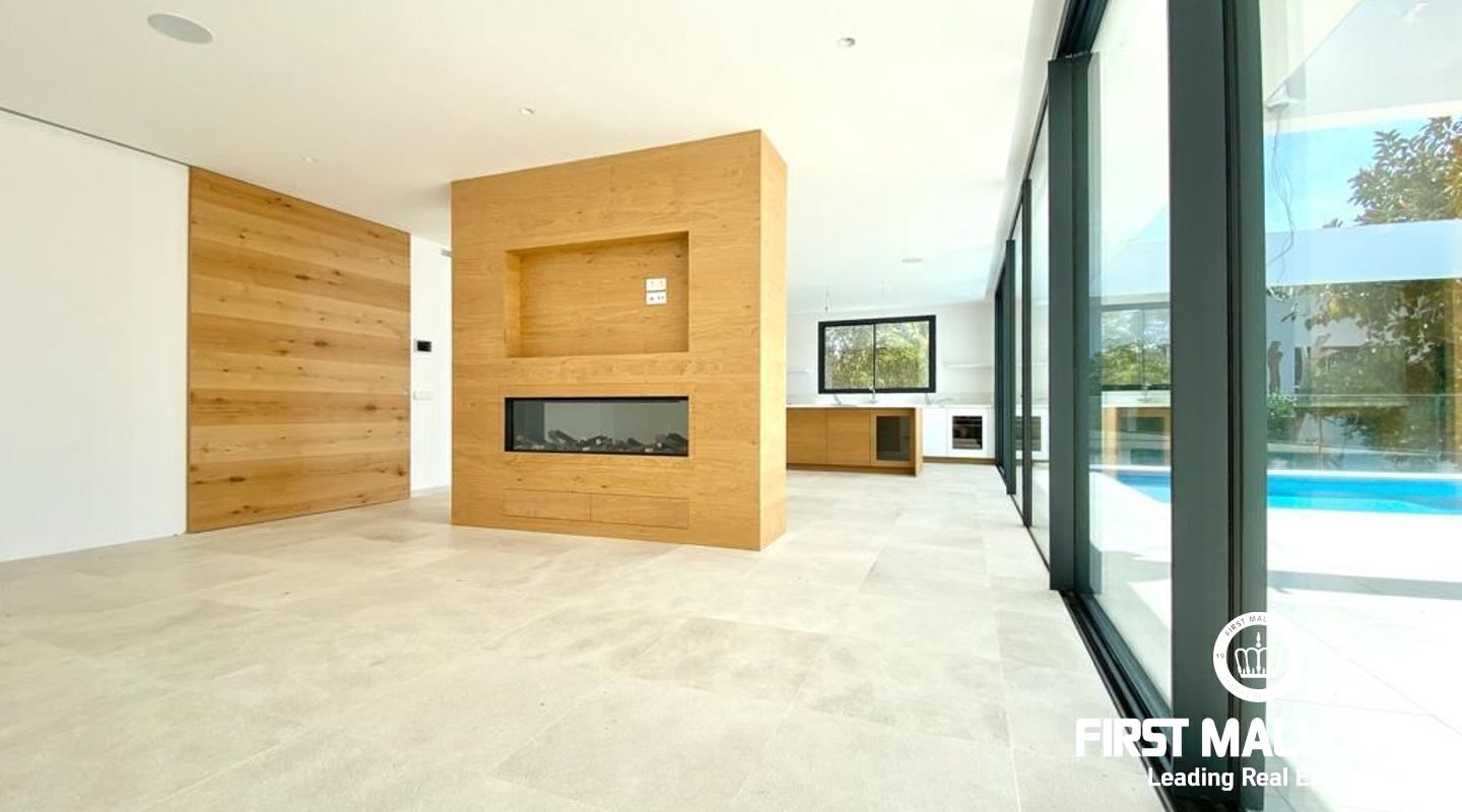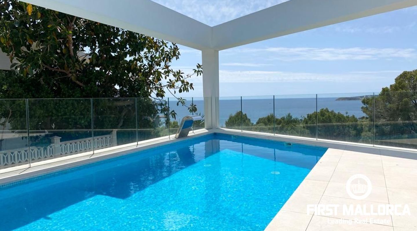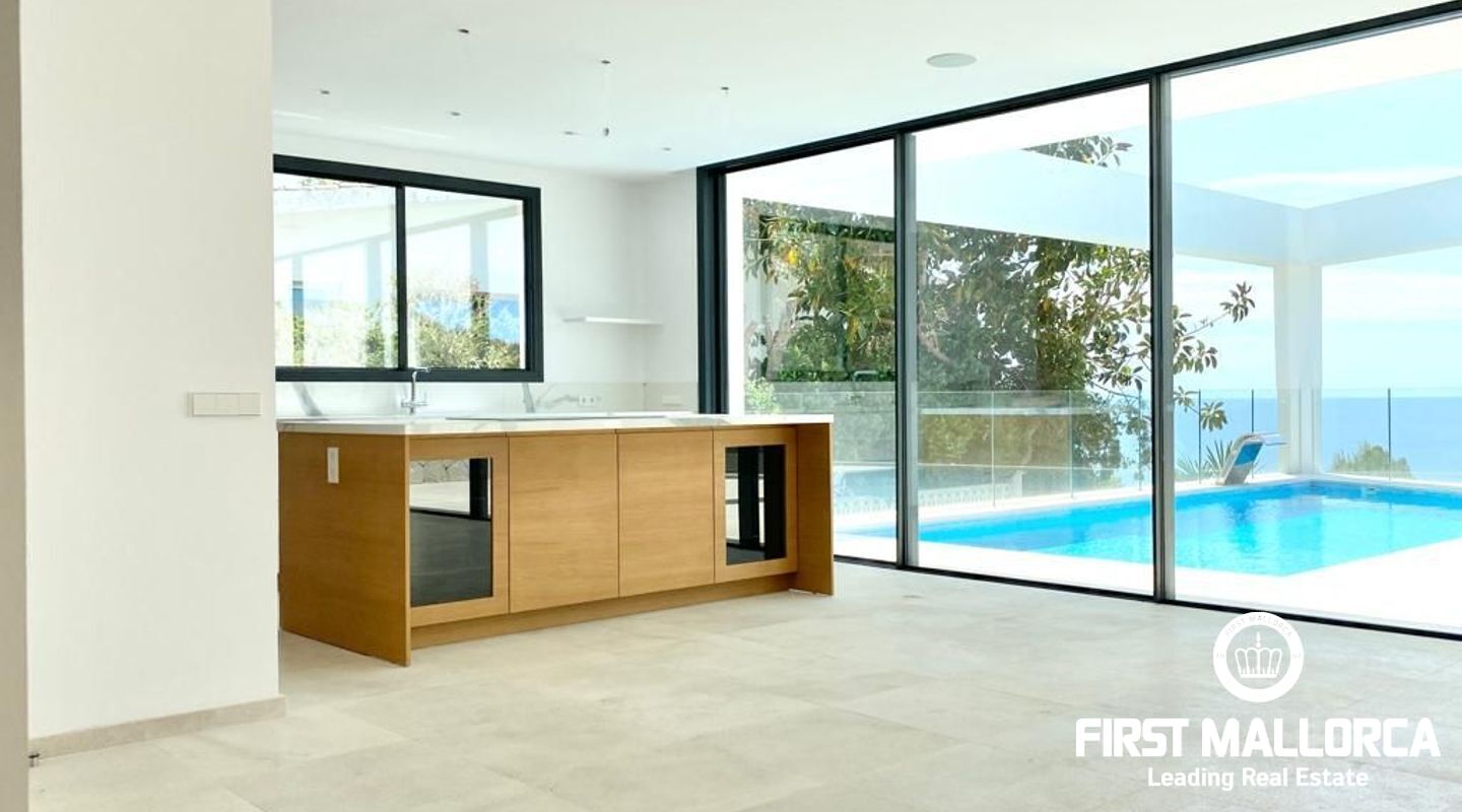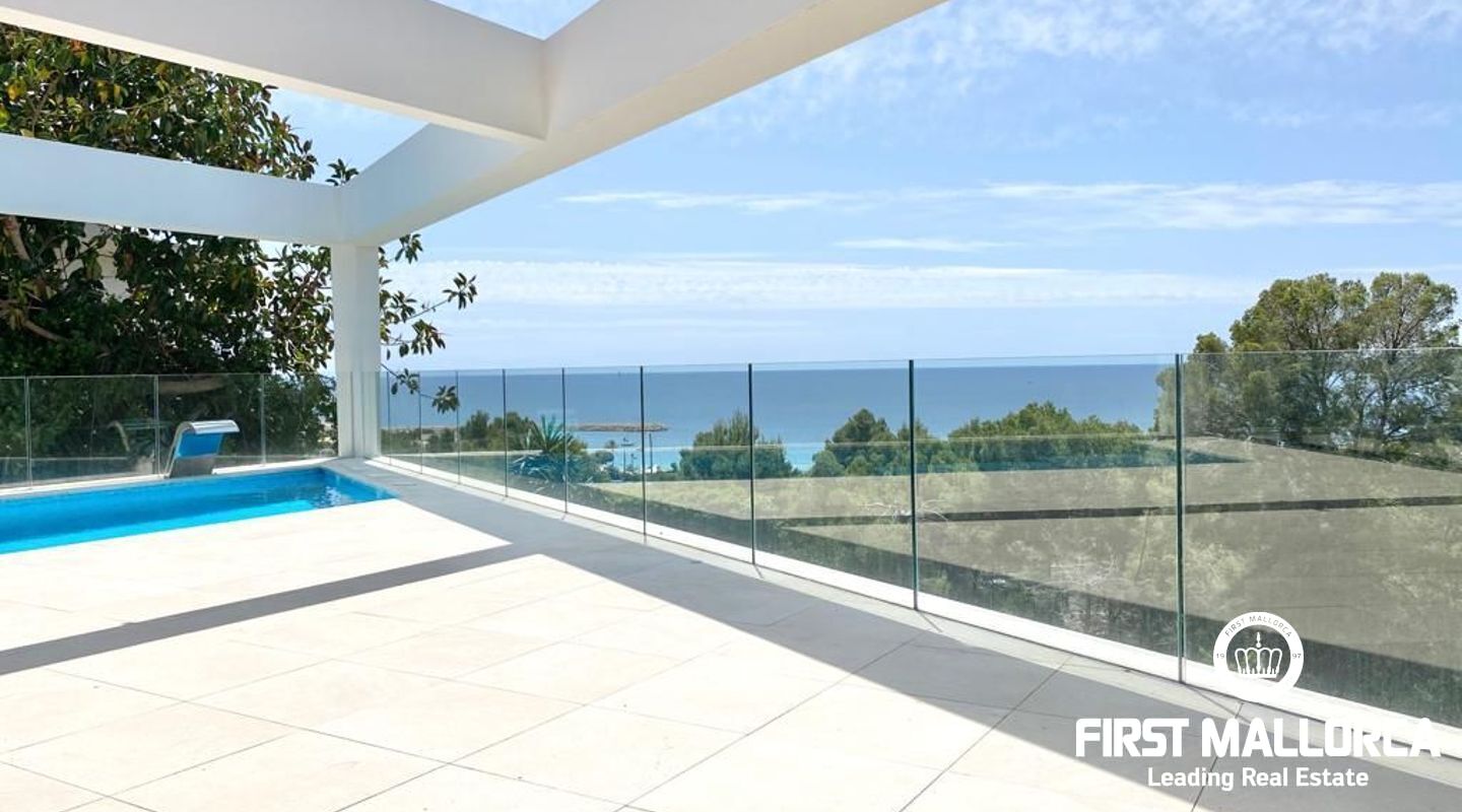 Denna nybyggda villa tronar ovanför Puerto Portals i bostadsområdet Costa d'en Blanes. Den moderna villan har en fantastisk panoramautsikt över havet över Portals hamn och Palmanovabukten upp till Cala Vinyas. Inte bara en imponerande utsikt under dagen utan också ett förtrollande ljusspel på natten. Den moderna designen är kantig och tydlig, med traditionella medelhavsbyggnadselement som användning av natursten och trä som möter den senaste tekniken. Den imponerande villan med 4 sovrum och 5 badrum har en byggd yta på 450 m2 och har öppna och täckta terrasser och en saltvattenpool, även den med havsutsikt.