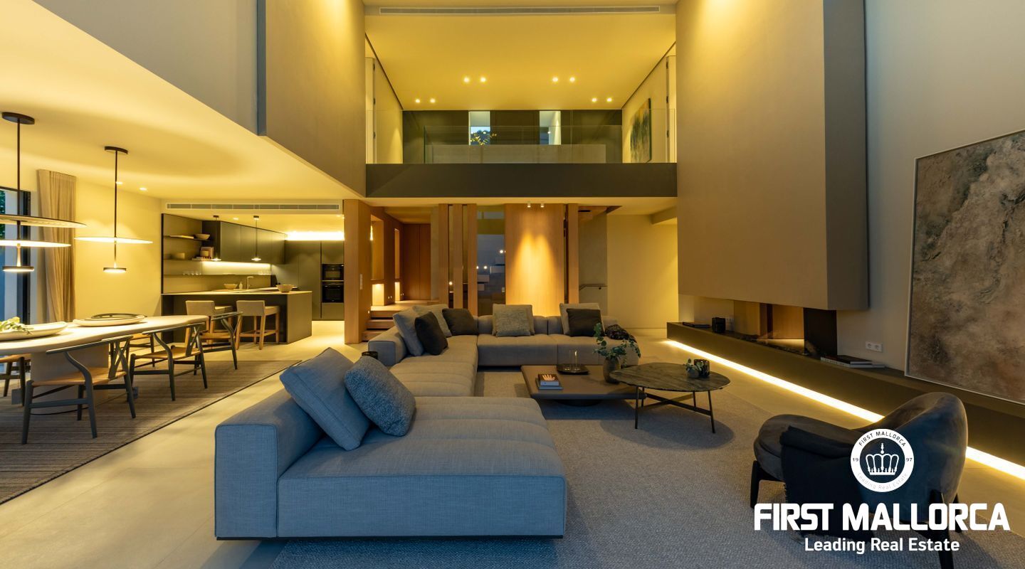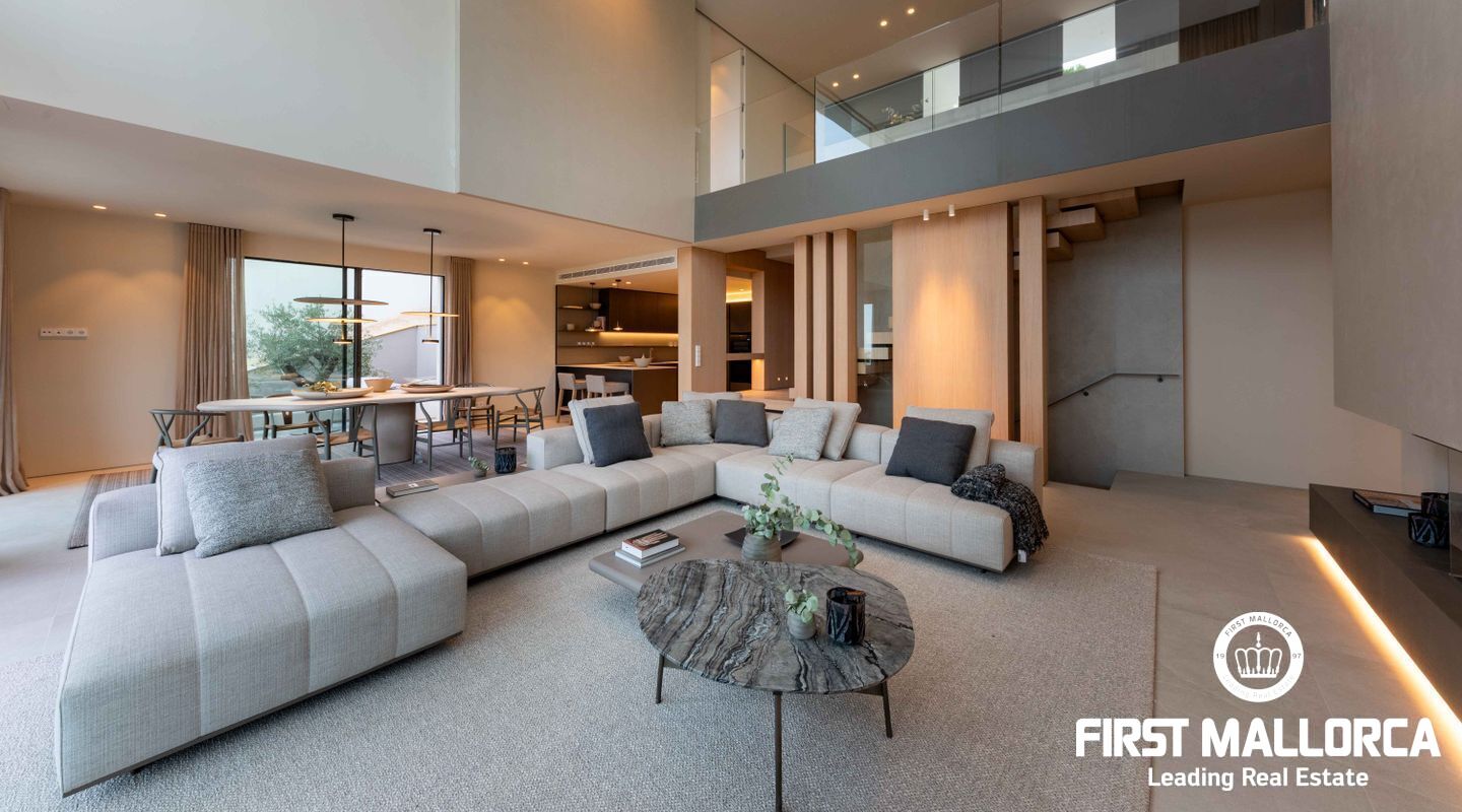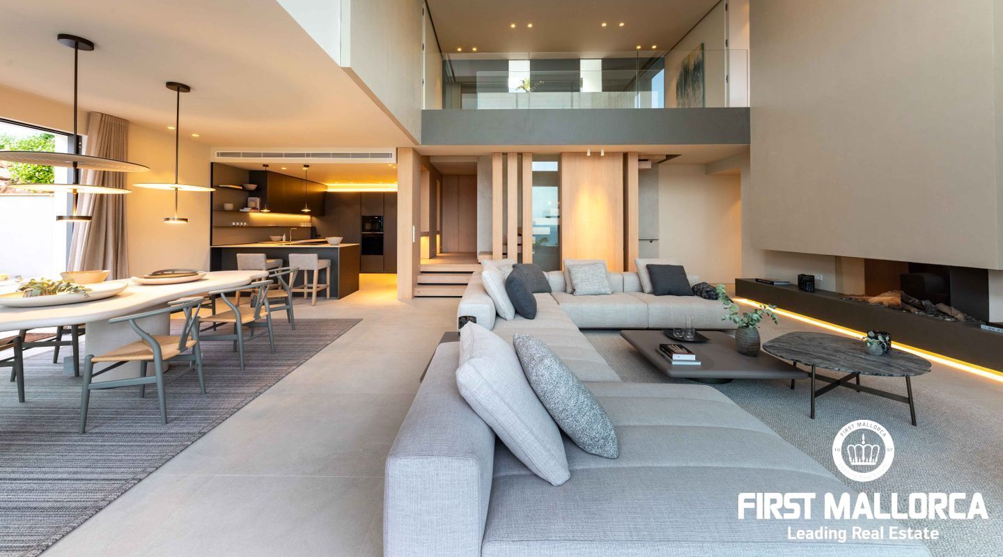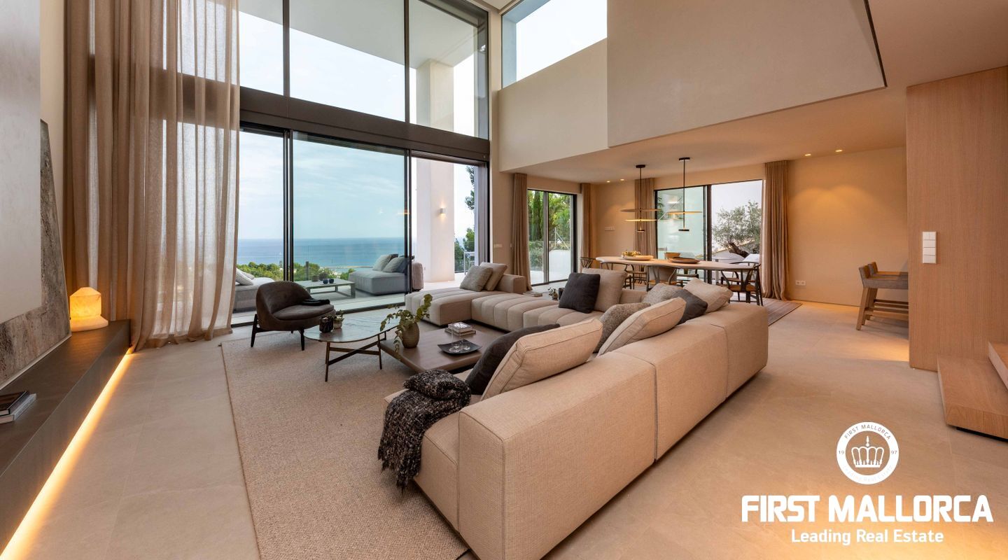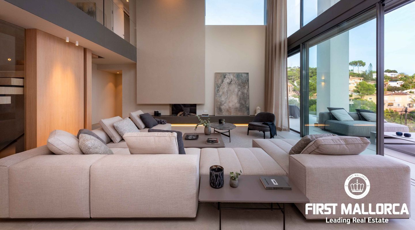 Denna moderna villa med havsutsikt ligger ovanför den lyxiga hamnen i Puerto Portals. Den har totalt 5 sovrum och 5 en-suite badrum och ett walk-in dressing room i det stora sovrummet. Bostadsytan är uppdelad på tre nivåer. På den övre nivån finns huvudentrén med 2 gästrum, fullt utrustade badrum med eget badrum. Hissen leder härifrån till den lägsta våningen. På mellannivån finns huvudköket med rymlig matsal, ett av vardagsrummen med öppen spis och gästtoalett. På nedre plan finns ett annat vardagsrum med direkt tillgång till poolen och ytterligare två gästrum med eget badrum. Ett rymligt loungeområde vid poolen med ett fullt utrustat utomhuskök avrundar Medelhavsstämningen perfekt. Från alla rum och terrasser har man en fantastisk utsikt över Medelhavet. Utrustningen inkluderar Poliform-garderober, ett Poliform-kök, Minotti-möbler, central luftkonditionering och golvvärme i hela huset. Sammanfattningsvis; det perfekta hemmet på Mallorca! Costa den Blanes är ett av de mest exklusiva bostadsområdena på sydvästra Mallorca. Omgivet av Puerto Portals marina, vackra sandstränder och internationella skolor, kan man njuta av Medelhavsklimatet här året runt i lugn och ro. Både öns huvudstad Palma ligger bara 15 minuter bort och flygplatsen kan nås på 25 minuter med bil.
