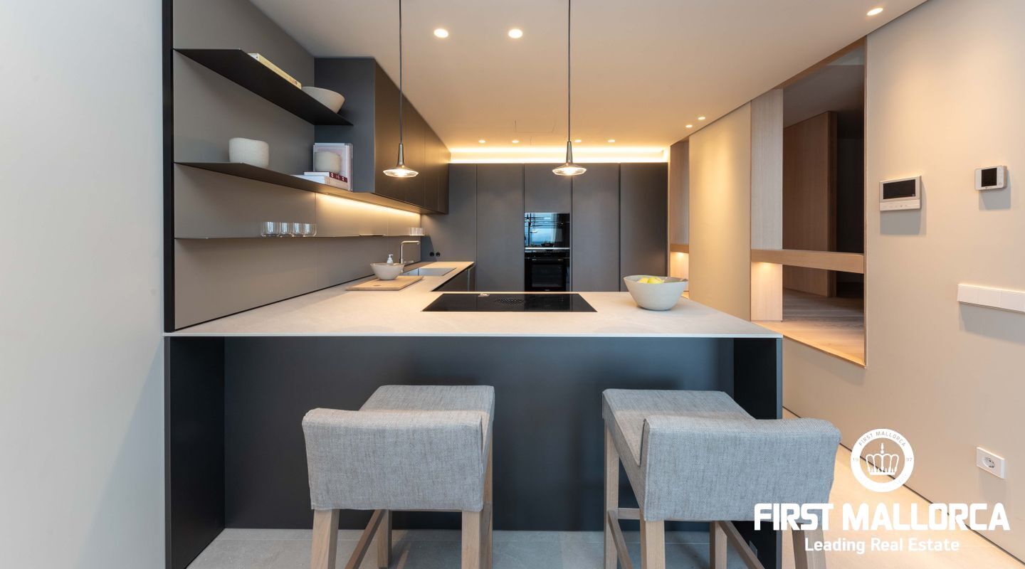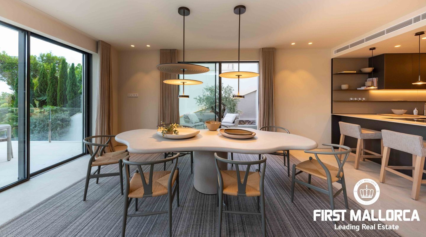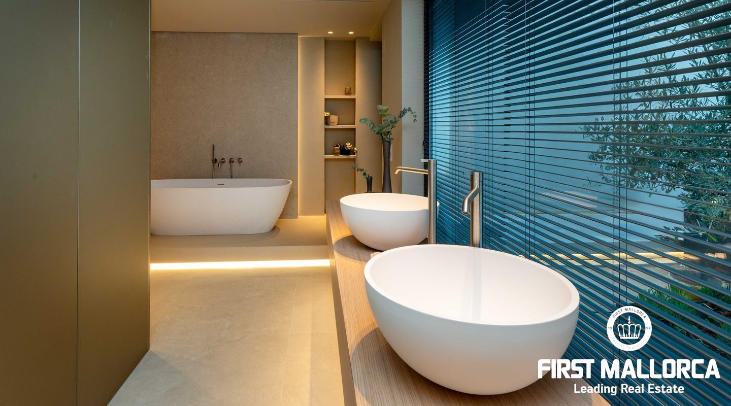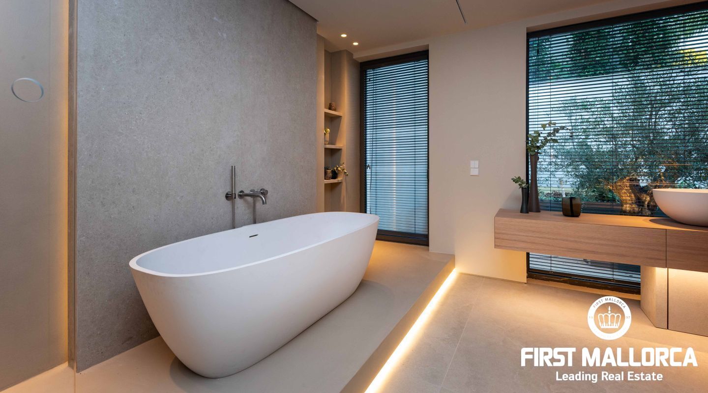 Denna moderna villa med havsutsikt ligger ovanför den lyxiga hamnen i Puerto Portals. Den har totalt 5 sovrum och 5 en-suite badrum och ett walk-in dressing room i det stora sovrummet. Bostadsytan är uppdelad på tre nivåer. På den övre nivån finns huvudentrén med 2 gästrum, fullt utrustade badrum med eget badrum. Hissen leder härifrån till den lägsta våningen. På mellannivån finns huvudköket med rymlig matsal, ett av vardagsrummen med öppen spis och gästtoalett. På nedre plan finns ett annat vardagsrum med direkt tillgång till poolen och ytterligare två gästrum med eget badrum. Ett rymligt loungeområde vid poolen med ett fullt utrustat utomhuskök avrundar Medelhavsstämningen perfekt. Från alla rum och terrasser har man en fantastisk utsikt över Medelhavet. Utrustningen inkluderar Poliform-garderober, ett Poliform-kök, Minotti-möbler, central luftkonditionering och golvvärme i hela huset. Sammanfattningsvis; det perfekta hemmet på Mallorca! Costa den Blanes är ett av de mest exklusiva bostadsområdena på sydvästra Mallorca. Omgivet av Puerto Portals marina, vackra sandstränder och internationella skolor, kan man njuta av Medelhavsklimatet här året runt i lugn och ro. Både öns huvudstad Palma ligger bara 15 minuter bort och flygplatsen kan nås på 25 minuter med bil.