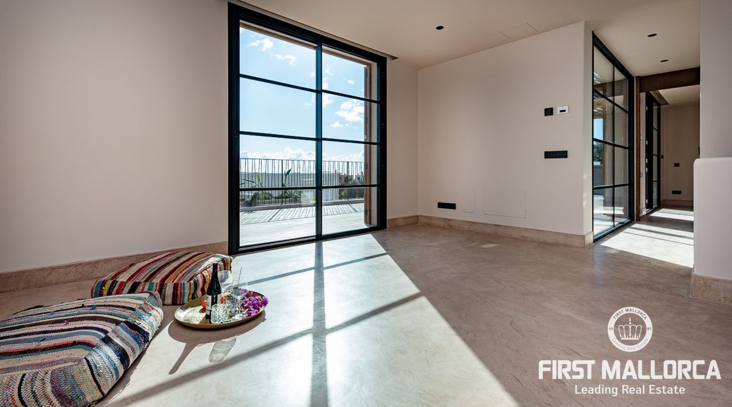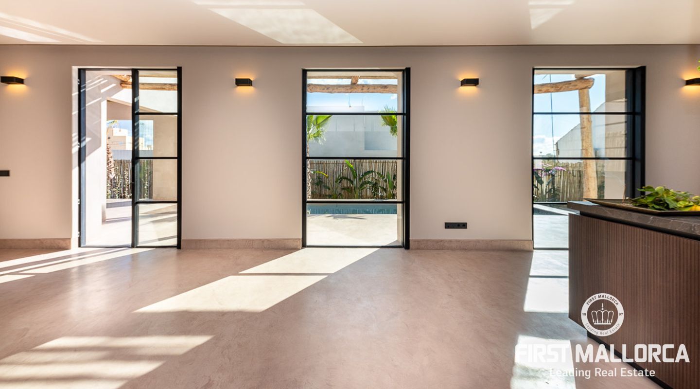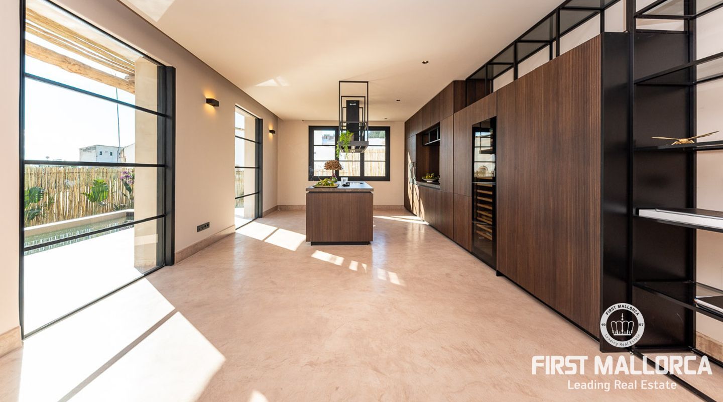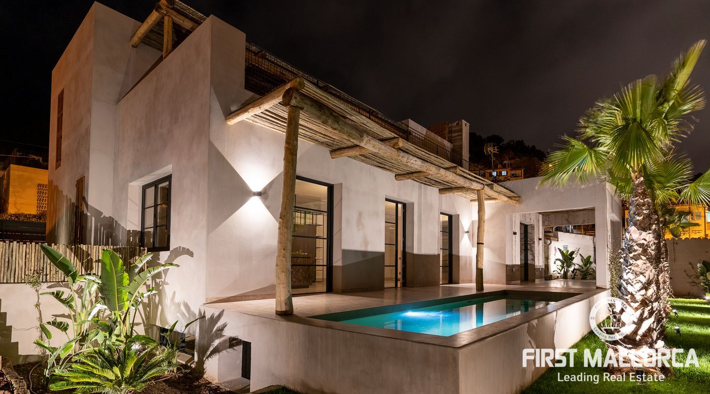 Denna nybyggda villa ligger i hjärtat av Génova, en förort till Palma som imponerar med sin bykaraktär. Den chica nya byggnaden smälter harmoniskt in i den gamla stadsdelen och imponerar med den framgångsrika kombinationen av modern och organisk arkitektur samt industriell design. Naturliga material som trä och sten kombineras smart med konstgjorda som järn, vilket skapar en unik men ändå mycket hemtrevlig atmosfär. Övergångarna mellan inne och ute är också flytande, så att du kan fira medelhavslivsstilen utomhus året runt. Terrasserna som gränsar till vardagsrummet och poolnivån ramas in av subtropiska växter, vilket skapar känslan av att bo mitt i en grön oas.