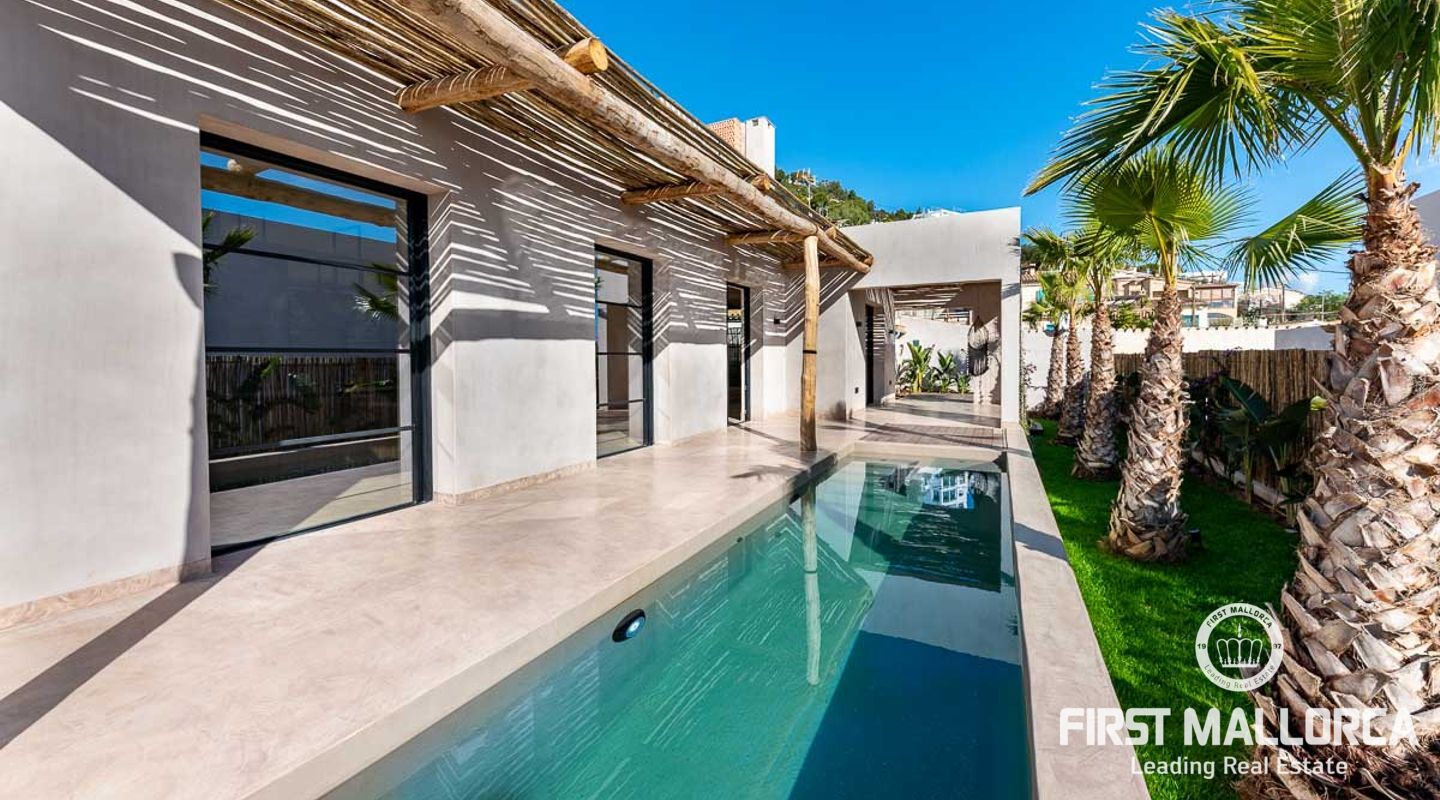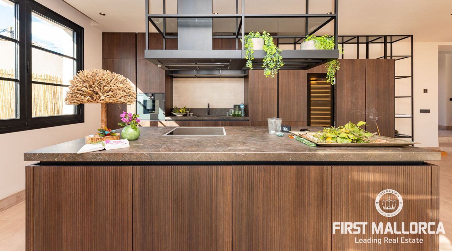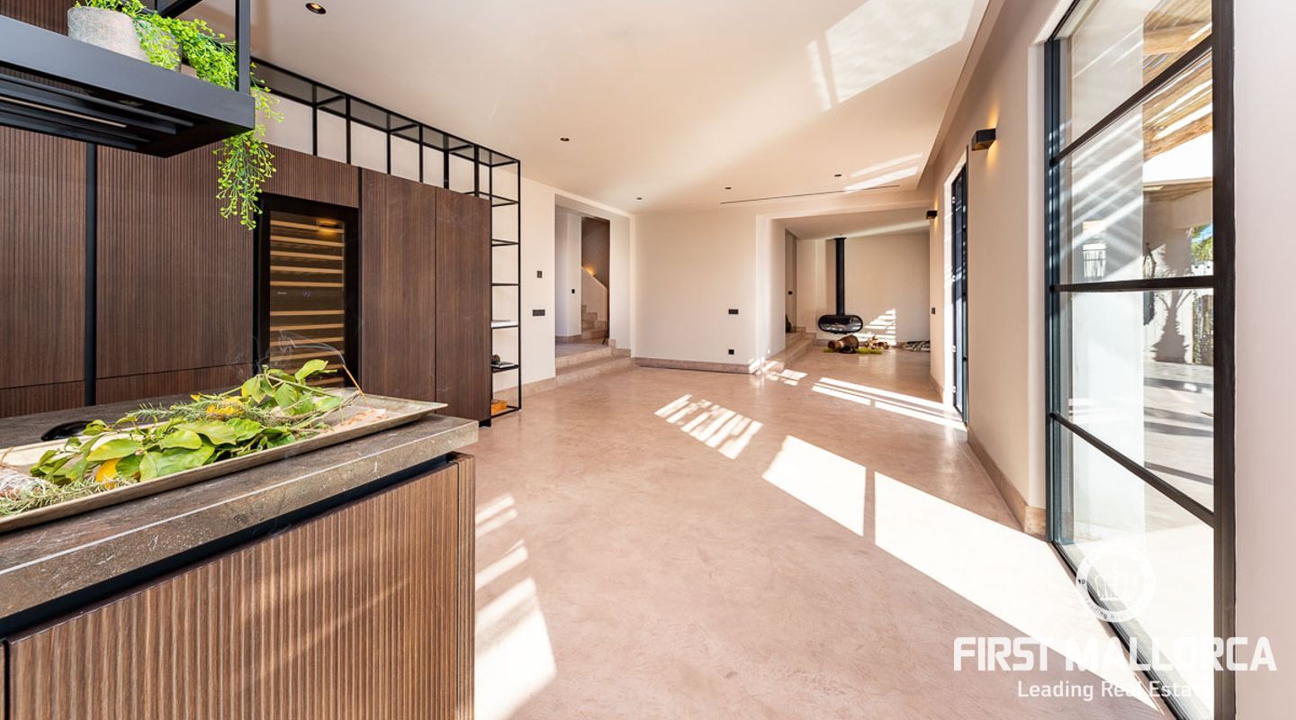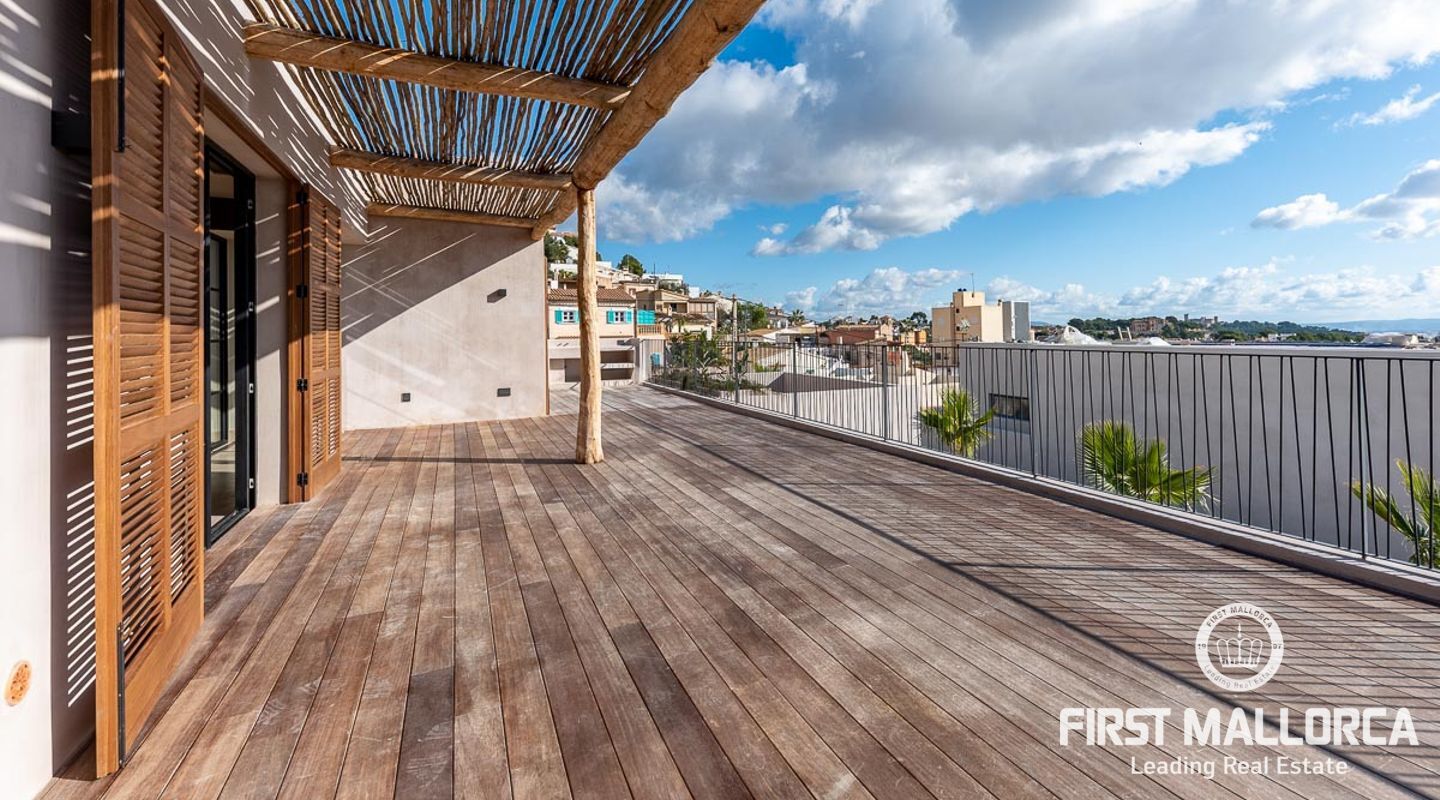 Denna nybyggda villa ligger i hjärtat av Génova, en förort till Palma som imponerar med sin bykaraktär. Den chica nya byggnaden smälter harmoniskt in i den gamla stadsdelen och imponerar med den framgångsrika kombinationen av modern och organisk arkitektur samt industriell design. Naturliga material som trä och sten kombineras smart med konstgjorda som järn, vilket skapar en unik men ändå mycket hemtrevlig atmosfär. Övergångarna mellan inne och ute är också flytande, så att du kan fira medelhavslivsstilen utomhus året runt. Terrasserna som gränsar till vardagsrummet och poolnivån ramas in av subtropiska växter, vilket skapar känslan av att bo mitt i en grön oas.