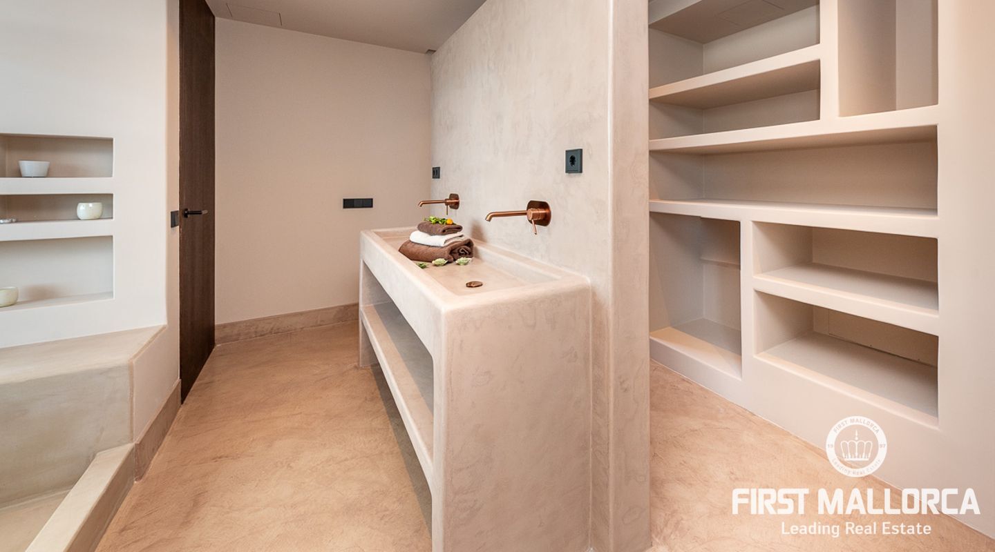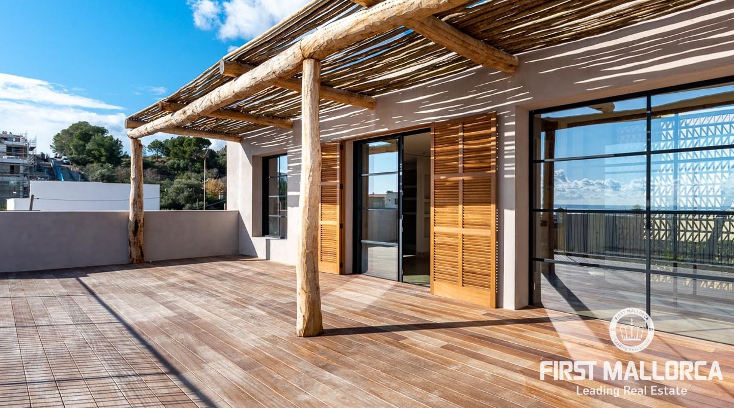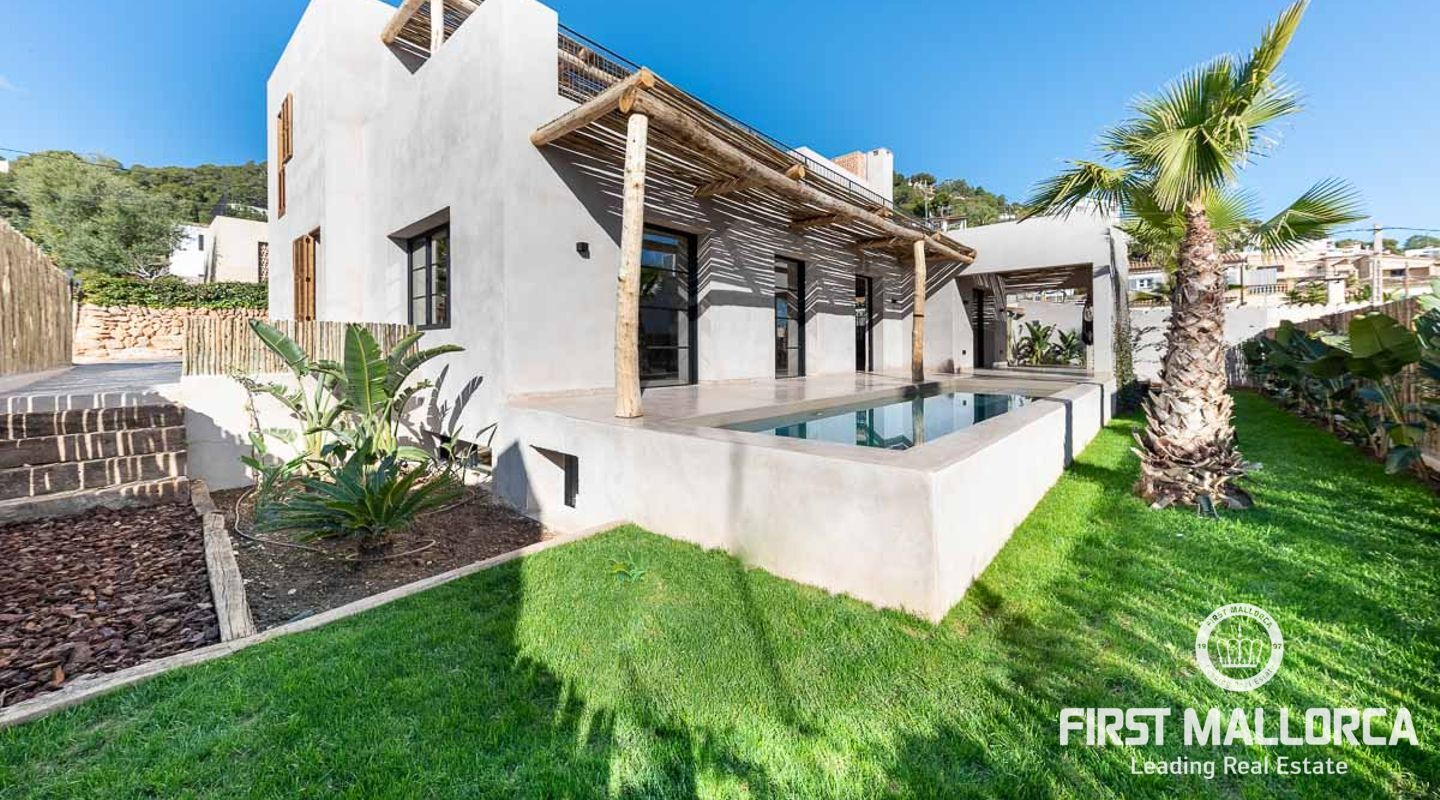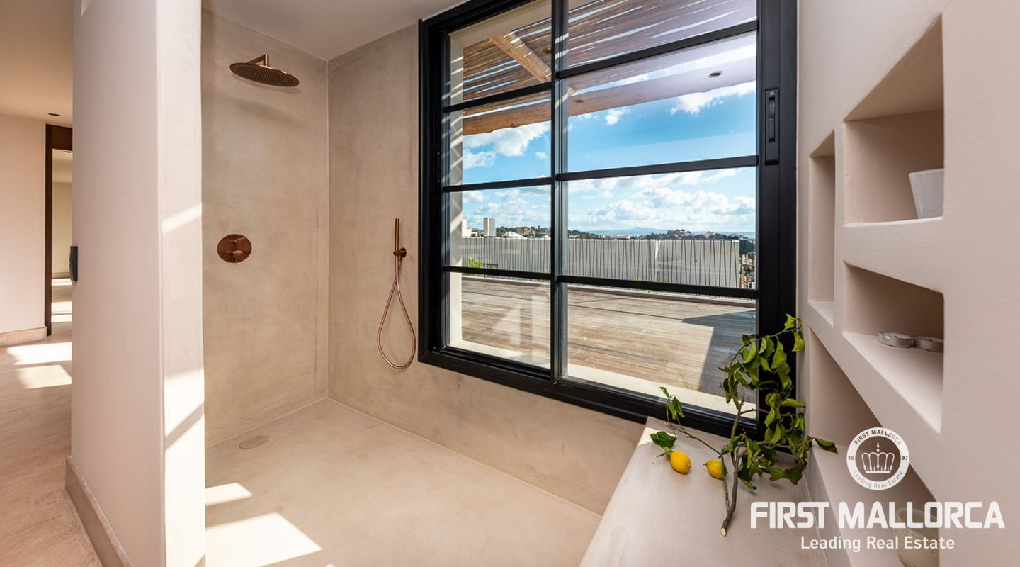 Denna nybyggda villa ligger i hjärtat av Génova, en förort till Palma som imponerar med sin bykaraktär. Den chica nya byggnaden smälter harmoniskt in i den gamla stadsdelen och imponerar med den framgångsrika kombinationen av modern och organisk arkitektur samt industriell design. Naturliga material som trä och sten kombineras smart med konstgjorda som järn, vilket skapar en unik men ändå mycket hemtrevlig atmosfär. Övergångarna mellan inne och ute är också flytande, så att du kan fira medelhavslivsstilen utomhus året runt. Terrasserna som gränsar till vardagsrummet och poolnivån ramas in av subtropiska växter, vilket skapar känslan av att bo mitt i en grön oas.