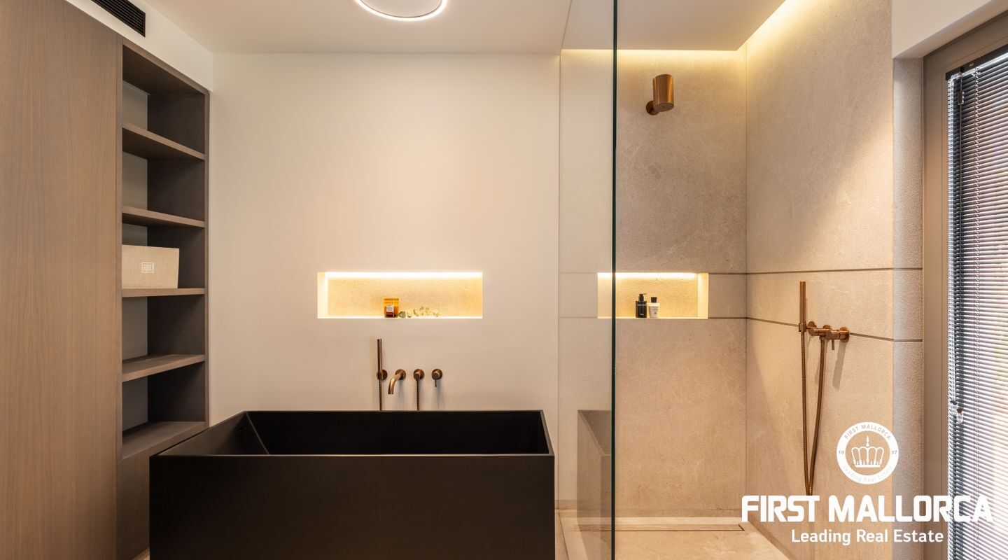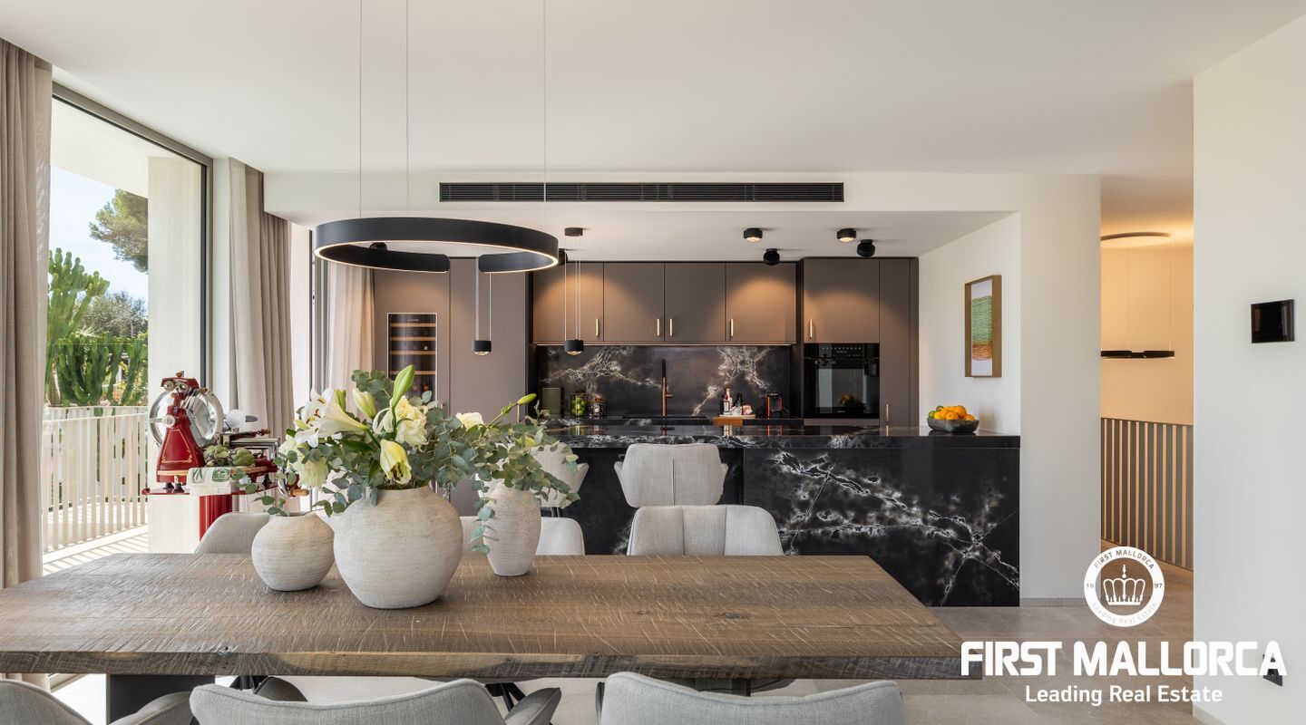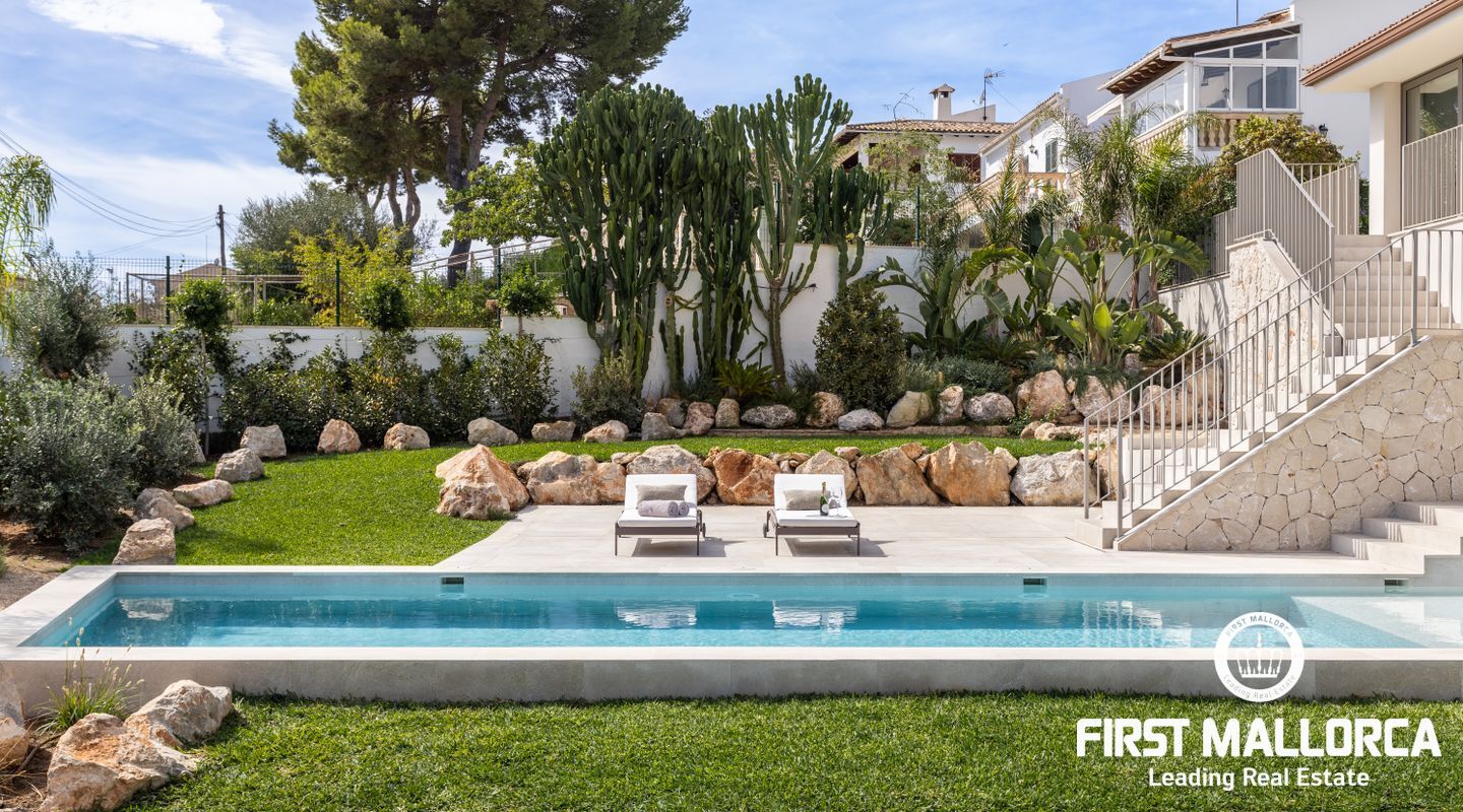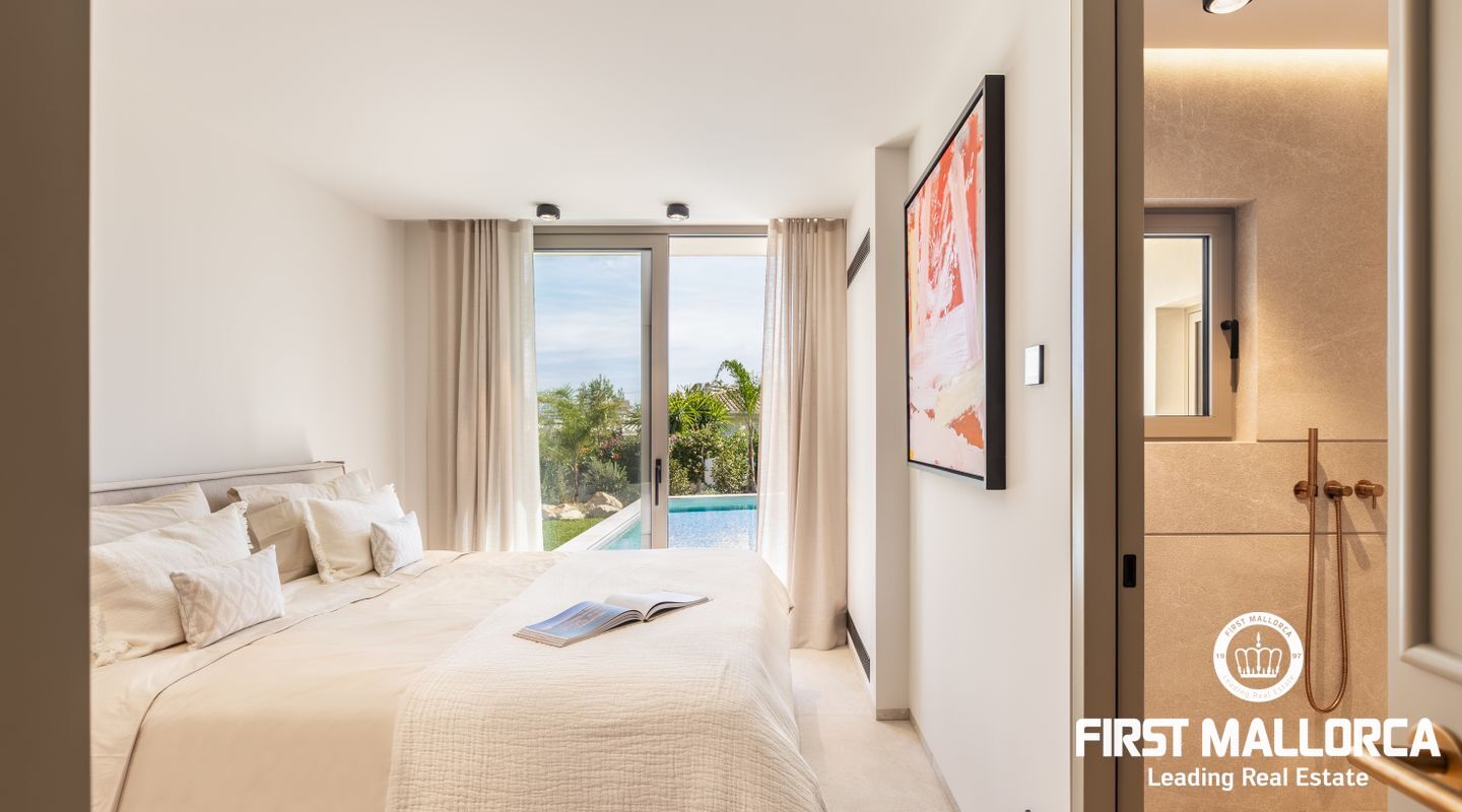 Denna lyxiga, nybyggda fastighet i ett eftertraktat område, bara några minuter från den vita sandstranden, är det perfekta exemplet på mallorcinsk lyx. Det ligger i ett lugnt bostadsområde, men bara en kort promenad från strandpromenaden med alla dess barer och restauranger. Med alla moderna bekvämligheter som golvvärme, en skräddarsydd inredning med lokala material och gott om naturligt ljus, är det perfekt som semester eller permanent bostad. Området är strategiskt beläget med bara 5 minuters bilresa till de bästa internationella skolorna på ön och huvudstaden Palma de Mallorca med sin internationella flygplats ligger 10 minuter bort.