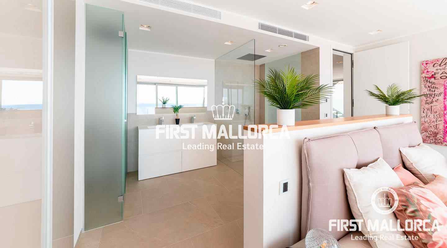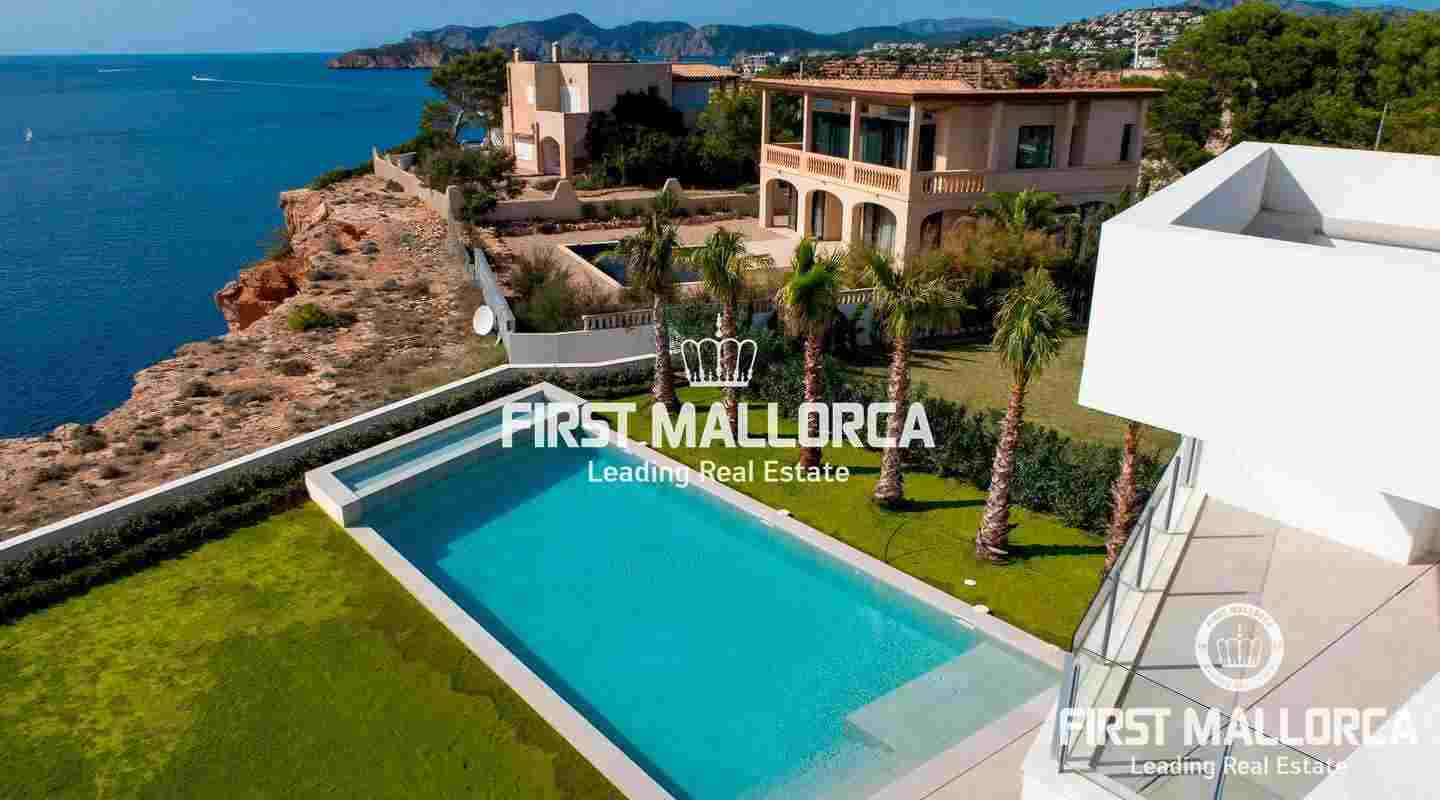 Denna moderna villa i första linjen av havet ligger på en 700 m2 stor tomt och erbjuder fri utsikt över hamnen och Medelhavet från alla rum. Arkitekturen med stora fönster och högt i tak gör att interiören i villan är ljus. Rymliga öppna och täckta terrasser och den stora poolen garanterar en bekväm avkopplingsplats för flera personer. Totalt finns det 3 sovrum med eget badrum, ett vardagsrum/matsal i öppen planlösning med ett angränsande lyxigt utrustat kök, en gästtoalett och en tvättstuga. Ytterligare egenskaper: luftkonditionering varm/kall, golvvärme, hiss, parkeringsplats för 2 bilar, intelligent husteknik, elektriska fönsterluckor, aluminiumfönster, takterrass.