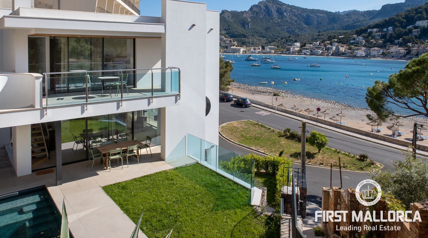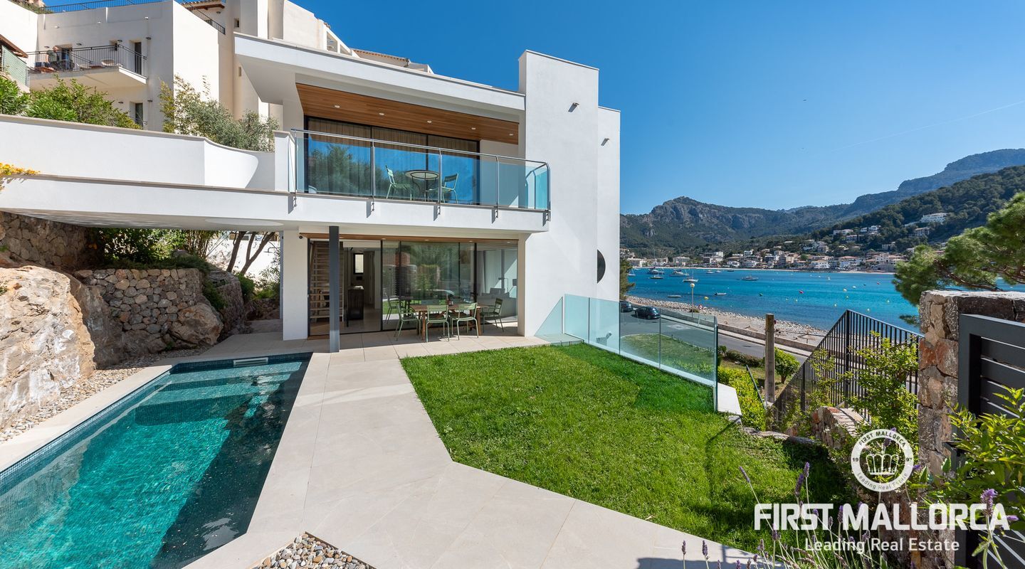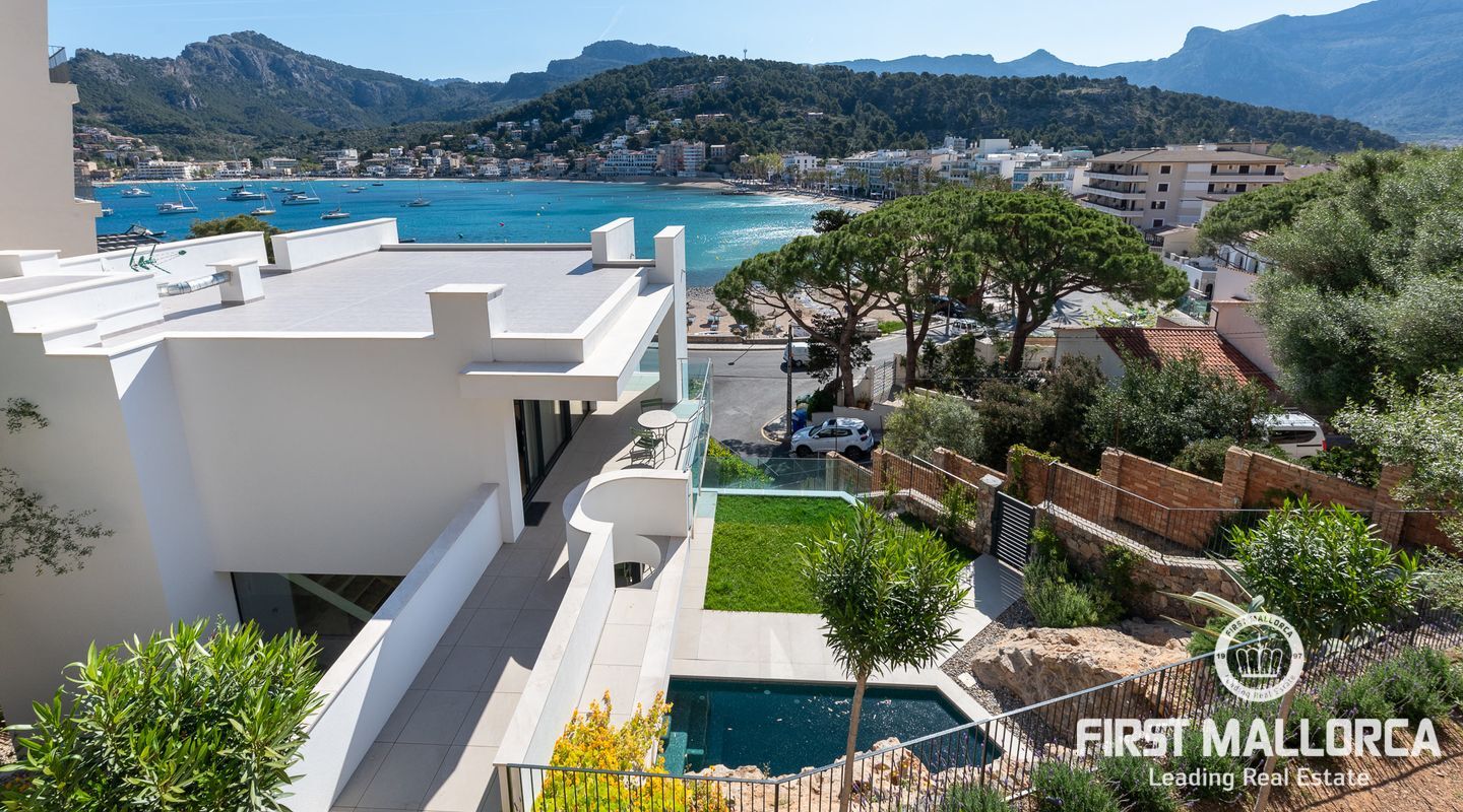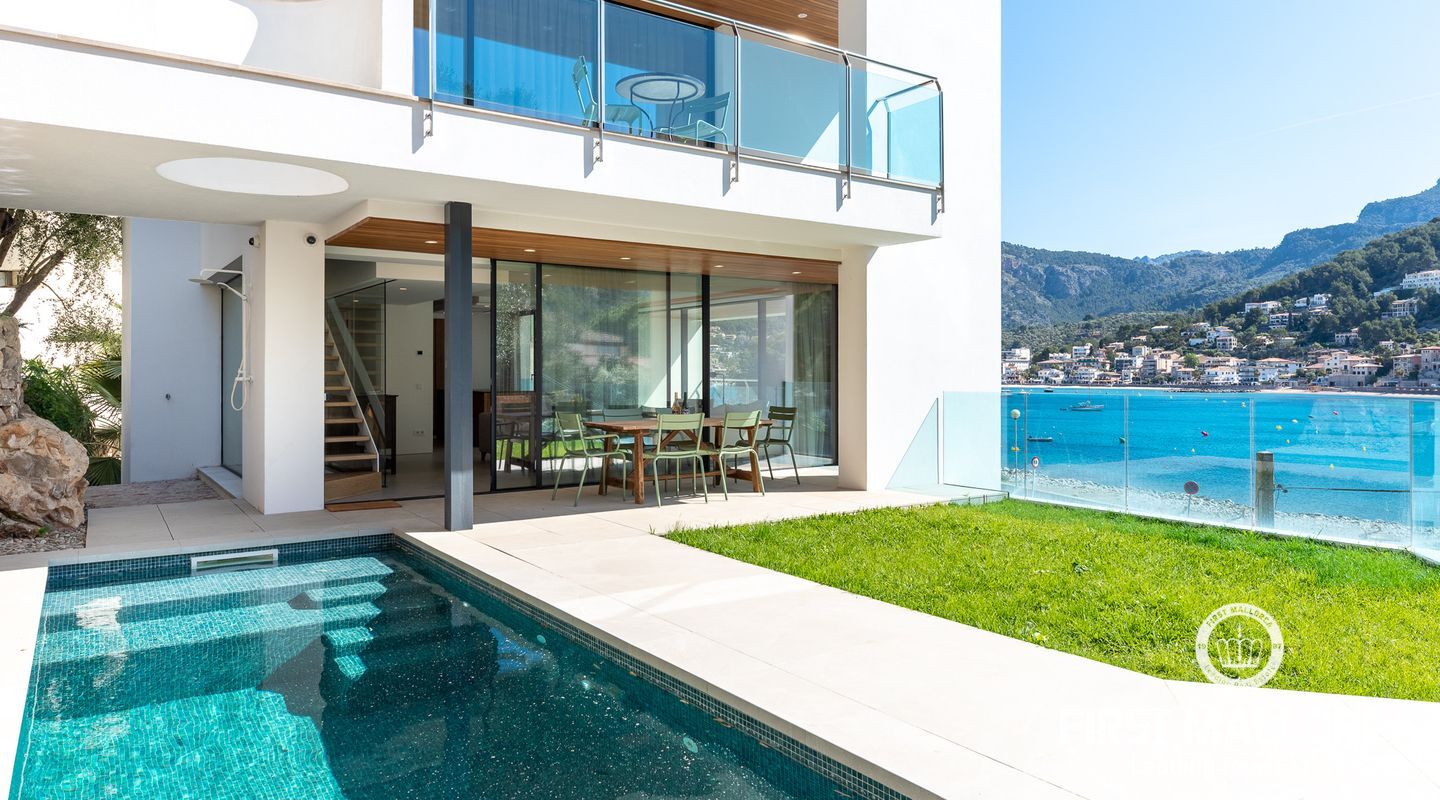 Denna exklusiva moderna villa med 4 sovrum och 4 badrum med en fantastisk atmosfär och magnifik havsutsikt ligger i det bästa bostadsområdet i Puerto de Sóller, bara några steg från den pittoreska hamnen och stranden.