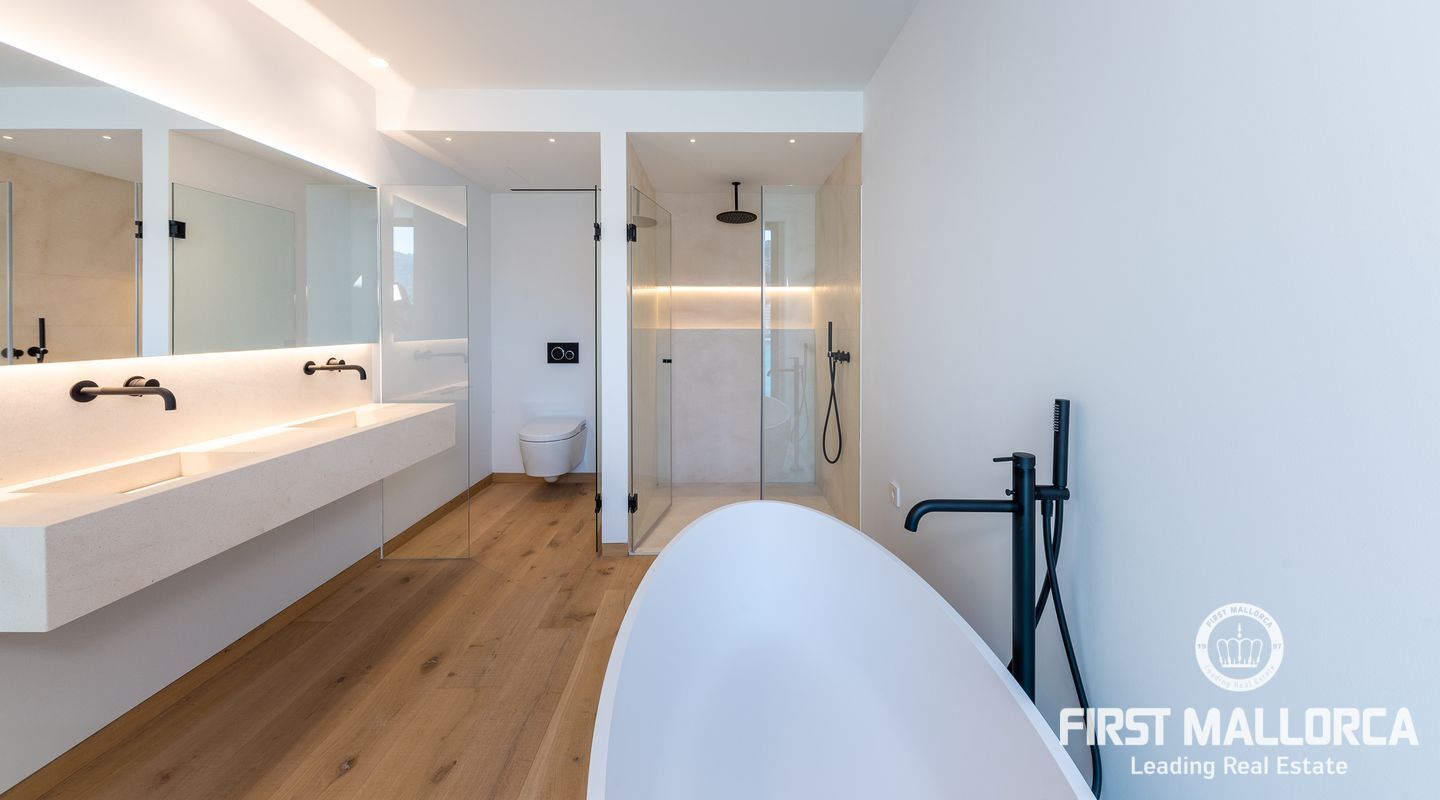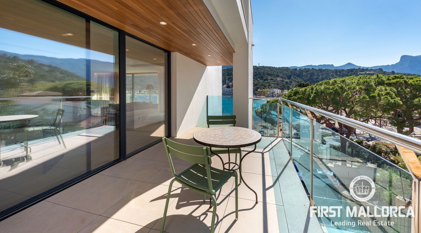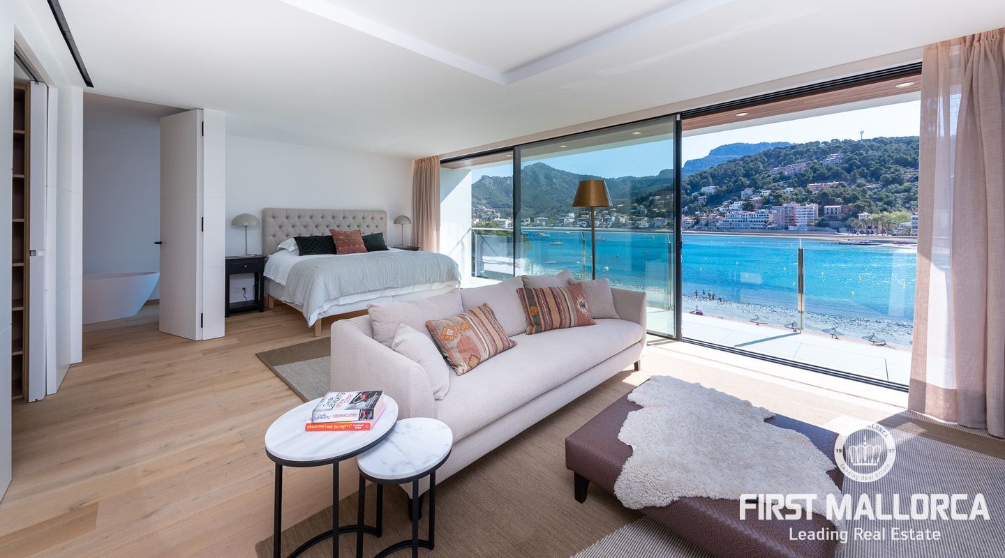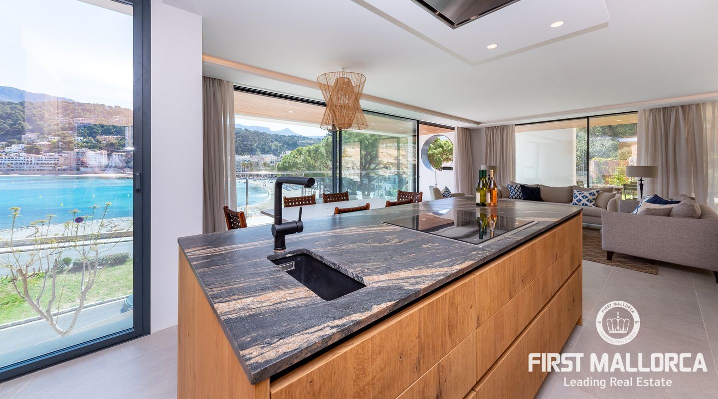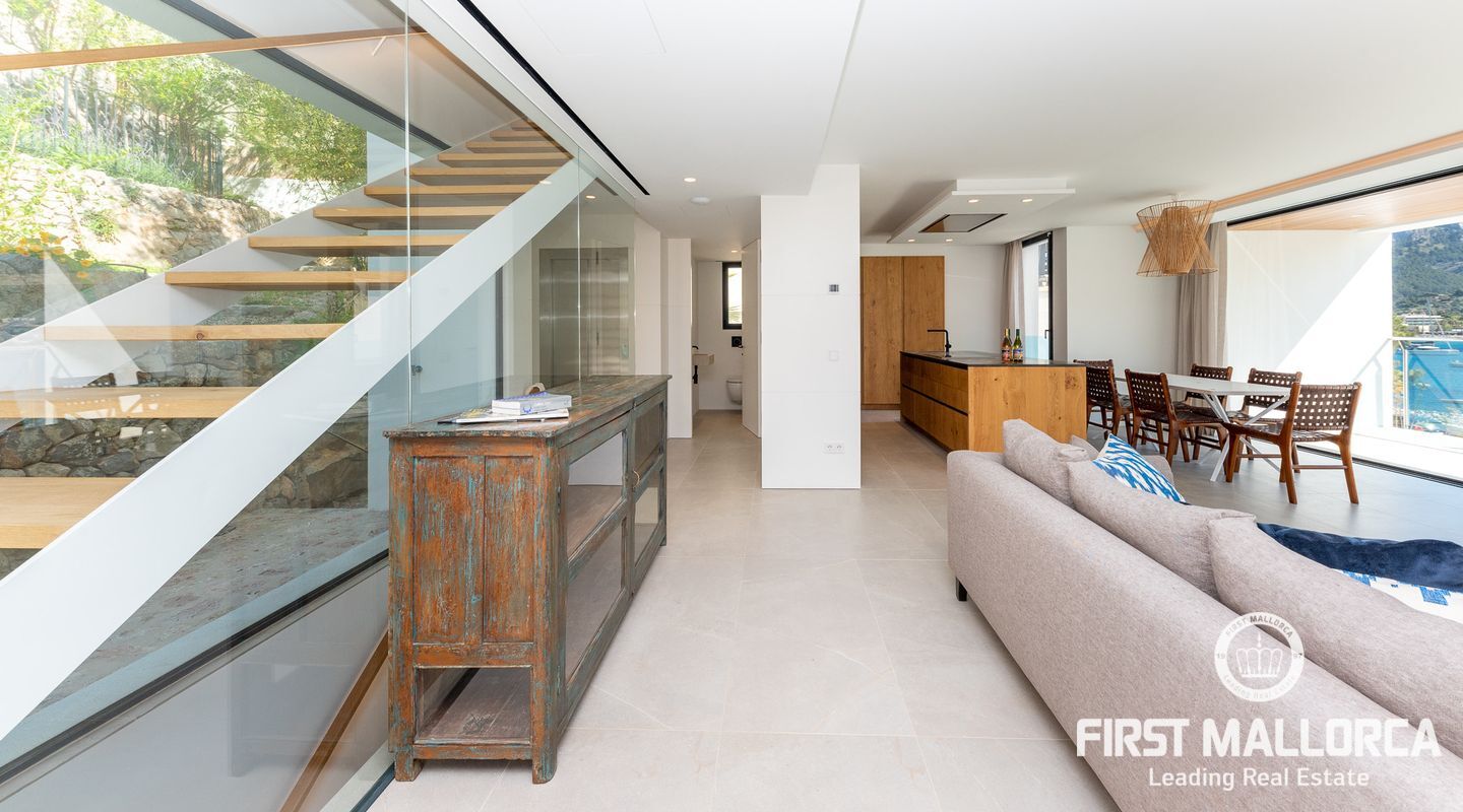 Denna exklusiva moderna villa med 4 sovrum och 4 badrum med en fantastisk atmosfär och magnifik havsutsikt ligger i det bästa bostadsområdet i Puerto de Sóller, bara några steg från den pittoreska hamnen och stranden.
