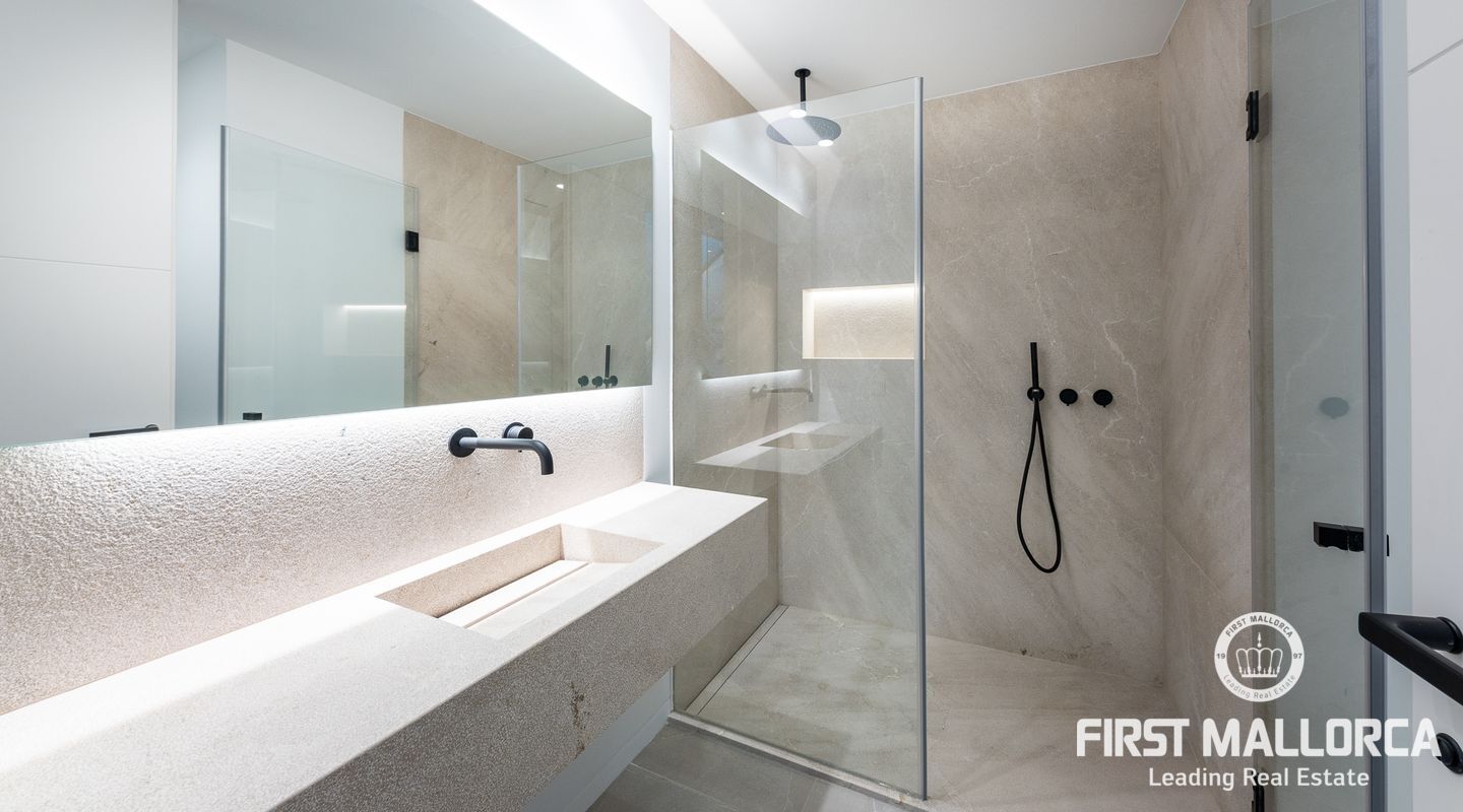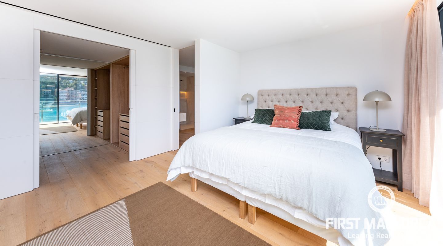 På första våningen har fastigheten ett sovrum med eget badrum och ytterligare 2 sovrum som delar badrum. Den andra våningen består av ett designkök, ett vardagsrum med matplats och en gästtoalett. Från denna nivå kan du enkelt nå poolen och trädgården, perfekt för att koppla av och varva ner. Tack vare den generösa planlösningen på översta våningen erbjuder denna nivå gott om plats för en master bedroom svit och ett vardagsrum med tillgång till den övre trädgården. Denna exceptionella fastighet har ytbehandlingar och tillbehör av högsta kvalitet samt den senaste tekniken. Exklusiva funktioner i denna lyxvilla inkluderar varm/kall luftkonditionering, frisk luftcirkulation, golvvärme, uppvärmd pool och ett fjärrstyrt VVS-system. Var och en av de 3 övre våningarna har en härlig terrass med utsikt över havet. I källaren finns invändig uteplats och garage för 2 bilar med hiss till de övre våningarna. Exteriören på den lyxiga fastigheten på Mallorca erbjuder ett fantastiskt poolområde och en vackert anlagd trädgård. Kontakta oss nu för mer information om denna unika möjlighet att förvärva en nybyggd designvilla i frontlinjen på den vackra Es Repic-stranden.