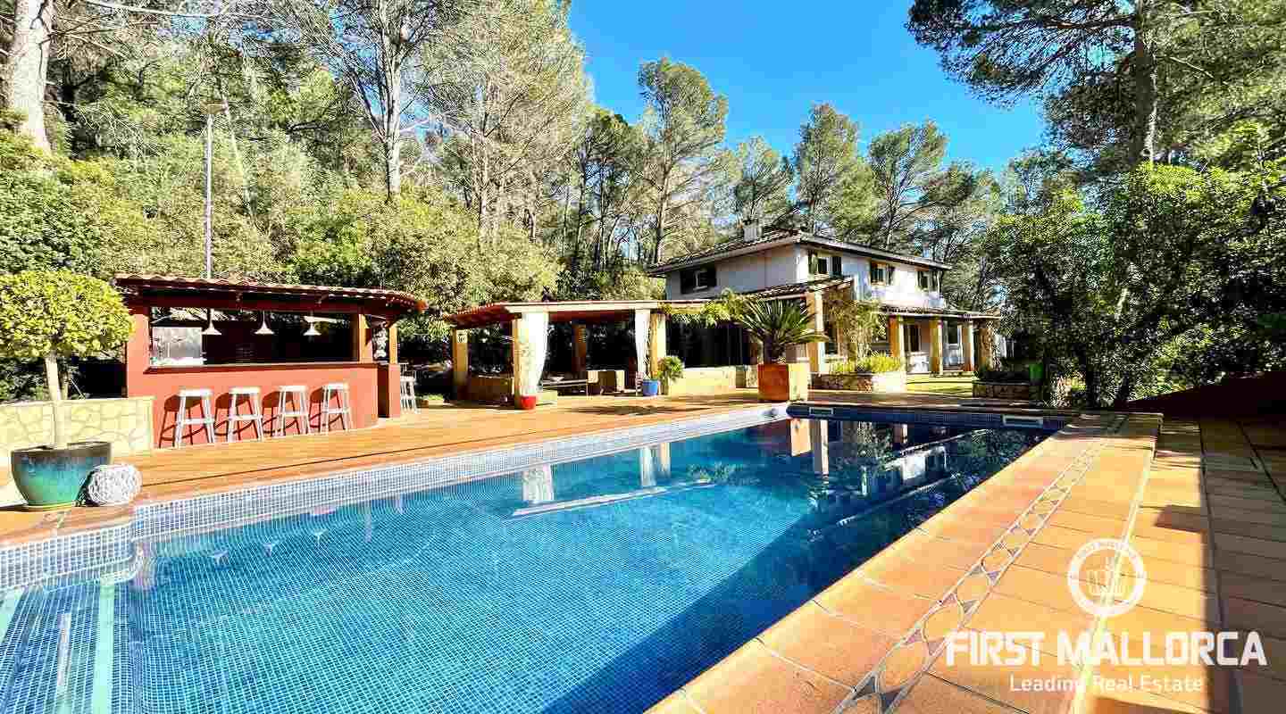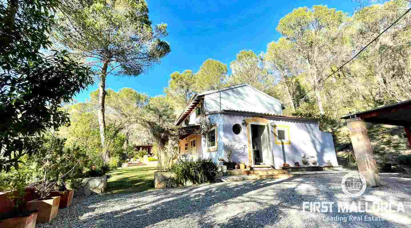Vackert möblerat 2-våningshus med 4 sovrum och med en gästlägenhet, pool, 4 sovrum 2 badrum och gästlägenhet. Omgiven av skog, tjugo minuter från Palma.