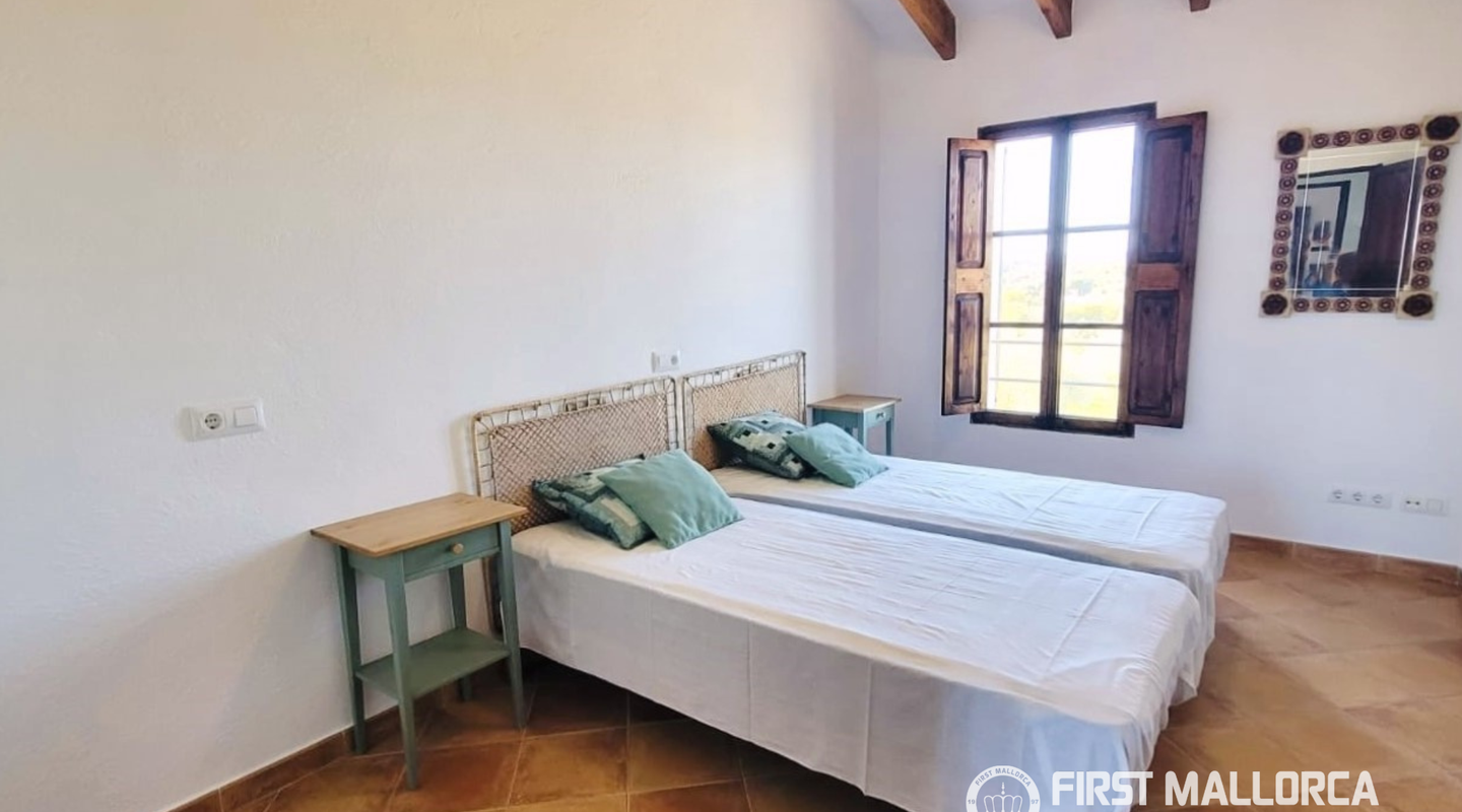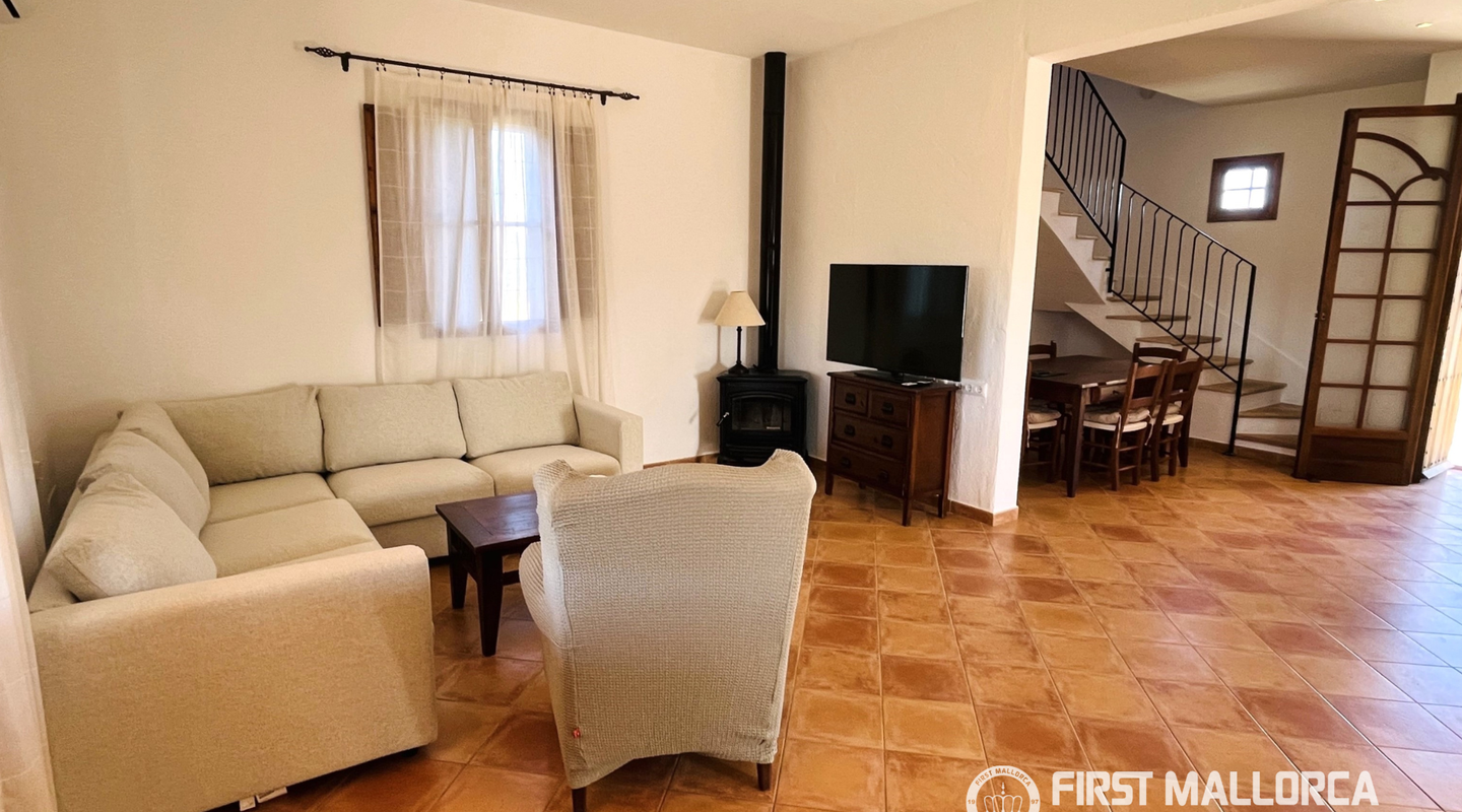 Charmigt lantställe i två plan uthyres i lugnt och privat läge, utan direkta grannar och med vacker utsikt över bergen från övervåningen. Bottenvåningen har en öppen planlösning med kök och vardagsrum/matplats, skafferi, tvättstuga samt en gästtoalett (utan dusch), med luftkonditionering, öppen spis och direkt tillgång till verandan och poolen. På övervåningen finns 3 sovrum med inbyggda garderober och luftkonditionering, 2 kompletta badrum samt synliga träbjälkar som ger mycket charm. Utomhus finns privat pool, rymlig veranda, grillplats, gräsmatta samt förråd. Trädgårds- och poolskötsel ingår (poolkemikalier ingår ej). Beläget endast 14 km från Manacor, 3 km från s’Illot och 3,8 km från Porto Cristo – en perfekt kombination av lugn och närhet till service och stränder.