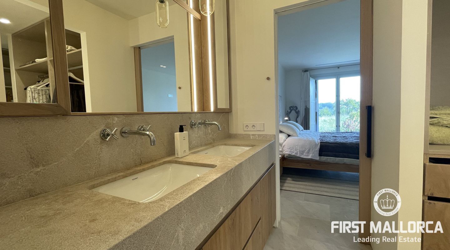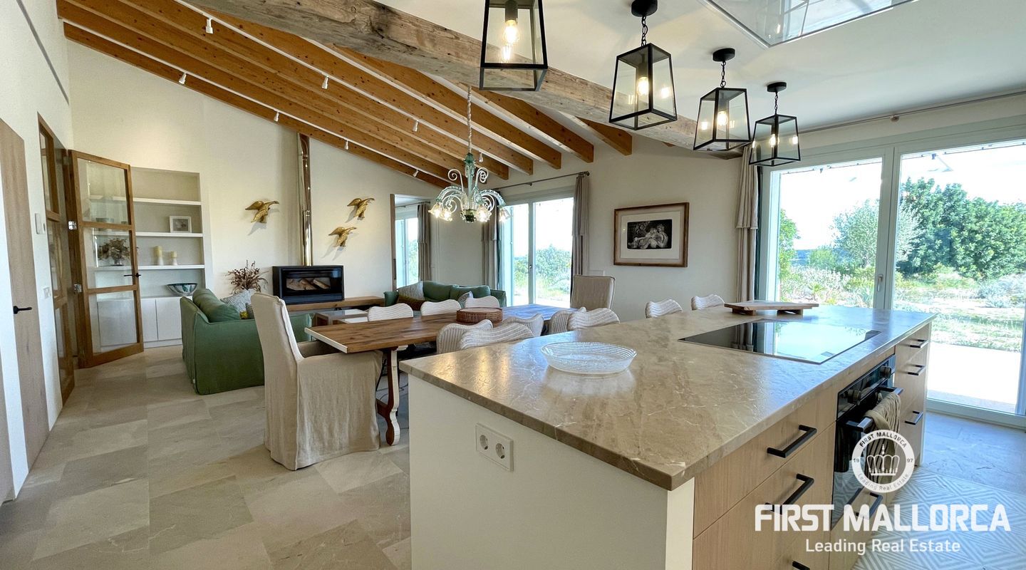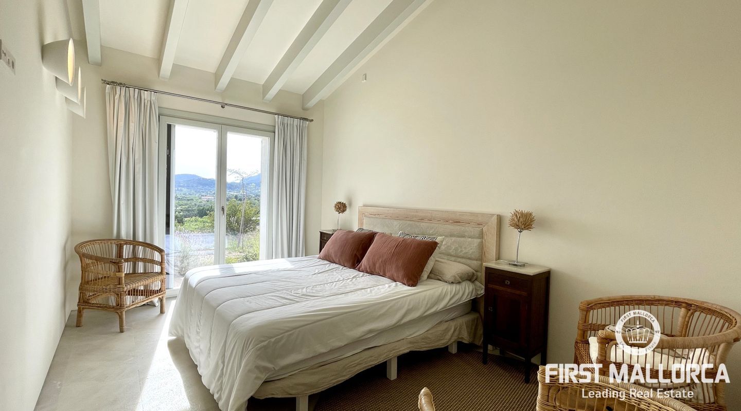 Upplev ekologisk lyx när den är som bäst med detta fantastiska envåningshus som ligger inbäddat i det fridfulla landskapet i Selva. Detta hem är noggrant utformat med miljömedvetenhet i åtanke och integreras sömlöst med sin omgivning samtidigt som det erbjuder hisnande panoramautsikt över Selva, Puig de Santa Magdalena och Alcúdia-bukten. Bostaden är tillverkad av naturliga och lokala material och prioriterar hållbarhet och komfort, och har en kemikaliefri interiörmiljö. Certifierat enligt Passivhaus-kriterierna och med en imponerande energieffektivitetsklassning på "A" garanterar detta hem minimala CO2-utsläpp och optimal energiprestanda. Luftkvaliteten inomhus är av största vikt, vilket underlättas av ett sofistikerat mekaniskt renoveringssystem som ger konsekvent ventilation i hela huset. Husets orientering maximerar det naturliga ljuset genom att utnyttja solens värme, samtidigt som isoleringsåtgärderna upprätthåller en mysig atmosfär året runt. Huset är utrustat med solpaneler för energiproduktion och dubbla cisterner för vattenförsörjning, och är en symbol för självförsörjning och miljöansvar. Det 503 m² stora huset byggdes 2021 och har 4 sovrum, 4 badrum (tre en suite) och en mängd lyxiga bekvämligheter. Invändigt kompletterar vackra trädetaljer den professionellt designade interiören, med ett kök med öppen planlösning och en sittgrupp, luftkonditionering och solvärme. Ytterligare höjdpunkter inkluderar tvättstuga, skafferi och utvändig parkering för tre bilar och 24-timmars säkerhetssystem garanterar sinnesfrid. Trädgården utgör en integrerad del av fastighetens landskap och är utformad som en medelhavsträdgård med låg vattenförbrukning och lågt underhåll. Det är en trädgård under utveckling, med arter som valts ut för att blomstra under hela året och med tillfällig tillsyn av en specialiserad trädgårdsmästare. Poolen, med något salt vatten, är integrerad i denna miljö och erbjuder en fantastisk utsikt över det omgivande landskapet. Den här fastigheten är bekvämt belägen nära bekvämligheter men ändå omsluten av lugn landsbygd och erbjuder den perfekta balansen mellan lyx, hållbarhet och naturlig skönhet. Missa inte chansen att göra denna eko-chica oas till din egen och kontakta oss idag för mer information eller för att ordna en visning.