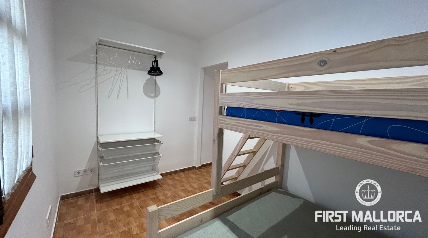 Fastigheten ligger på bottenvåningen och består av en stor terrass med grill, två sovrum, ett badrum, ett fullt utrustat kök och ett vardagsrum. Ett av sovrummen har en dubbelsäng och det andra har en våningssäng, båda har fläktar men utöver detta är fastigheten utrustad med luftkonditionering i vardagsrummet, vilket är tillräckligt för hela huset på grund av den goda fördelningen av huset.