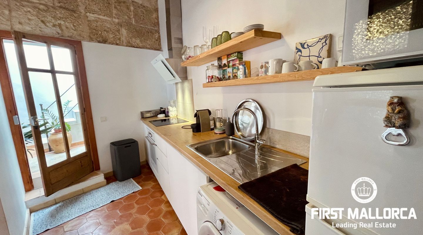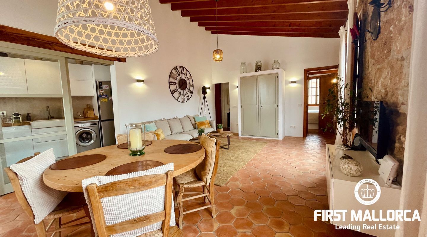 Denna charmiga fastighet i Andratx är fördelad på två oberoende nivåer och erbjuder en varm och inbjudande atmosfär med en delikat och mjuk stil. Fastigheten har totalt 2 sovrum, 2 badrum och 2 kök, ett på varje våning. Fastigheten är mycket ljus, vilket gör den till en mysig plats under hela dagen. På bottenvåningen finns för närvarande en fullt utrustad frisersalong, ett kök, ett badrum och ett sovrum. På övervåningen finns ett vardagsrum, ett andra kök, ett badrum och ett sovrum. Om fastigheten hyrs ut till en frisör kan den förbli som den är, eller i slutet av året kan ägaren välja att omvandla bottenvåningen till ett vardagsrum och matsal, beroende på hyresgästens behov.