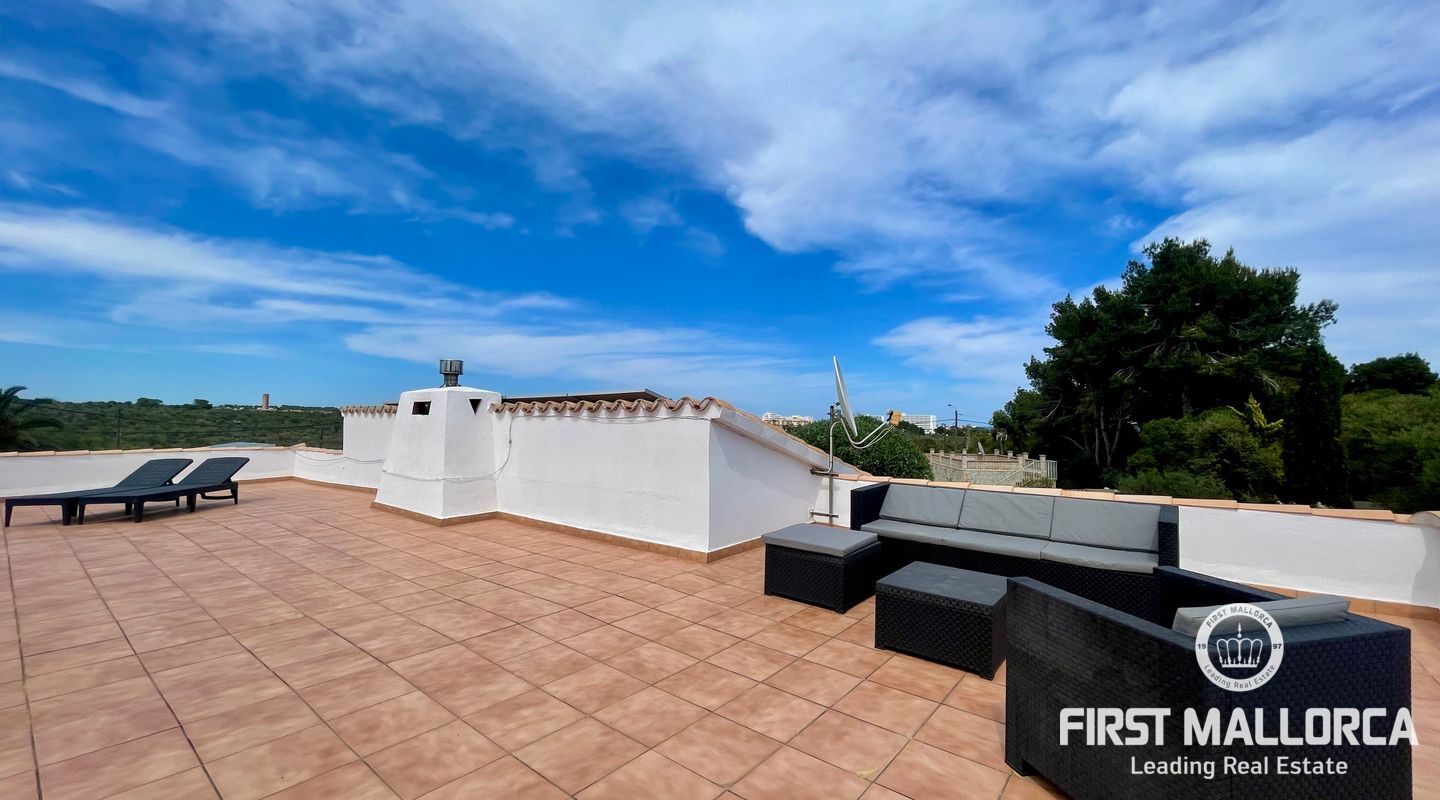 Den stora terrassen och den välskötta trädgården med egen pool inbjuder till att njuta av utomhus trots de svalare temperaturerna och möjliggör underbara stunder i friska luften. Dessutom imponerar den stora takterrassen med en fantastisk utsikt över omgivningarna och berget Sant Salvador med sin pilgrimskyrka och Kristusstaty – perfekt för att avsluta dagen med ett glas vin och en solnedgång.