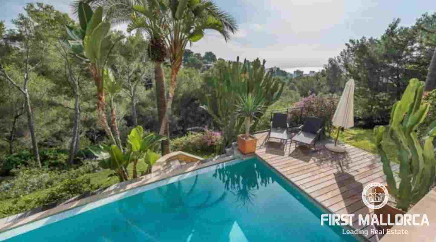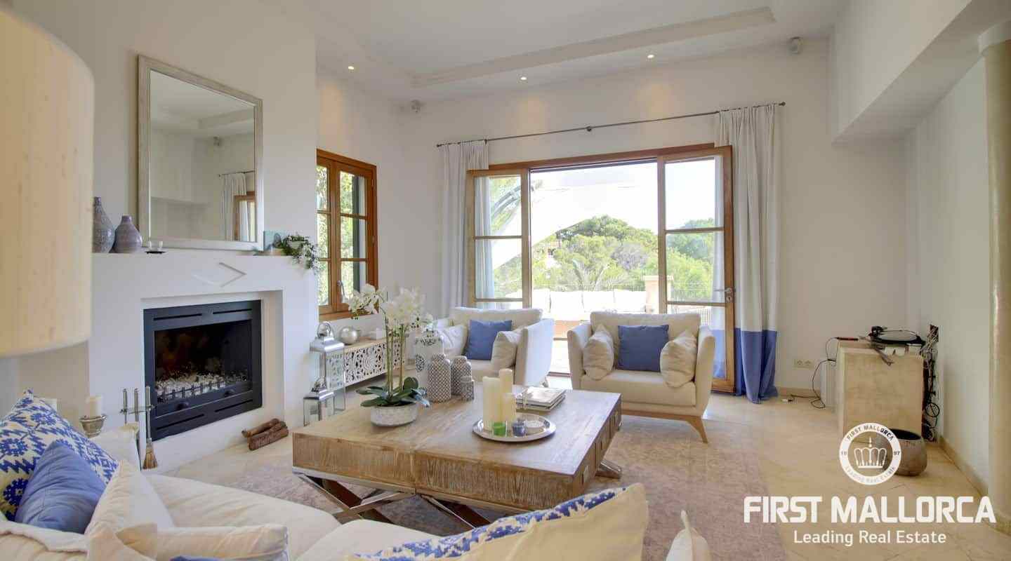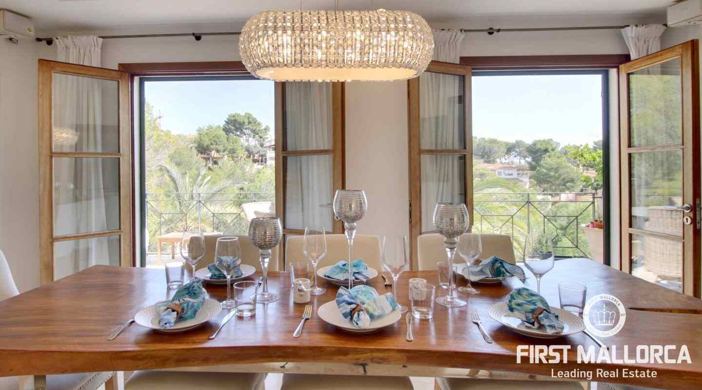 Magnifik villa till salu i Costa D'en Blanes, med panoramautsikt över dalen. Fastigheten är fördelad på två våningar. Ingången på övervåningen leder till ett rymligt vardagsrum med matsal med utsikt, som är anslutet till ett annat vardagsrum med öppen spis, båda anslutna till en terrass med utsikt över poolen. Köket med ö är anslutet till vardagsrummet, en gästtoalett och tvättstugan. Fastigheten har ett garageutrymme för två bilar, som för närvarande används som ett spelrum.