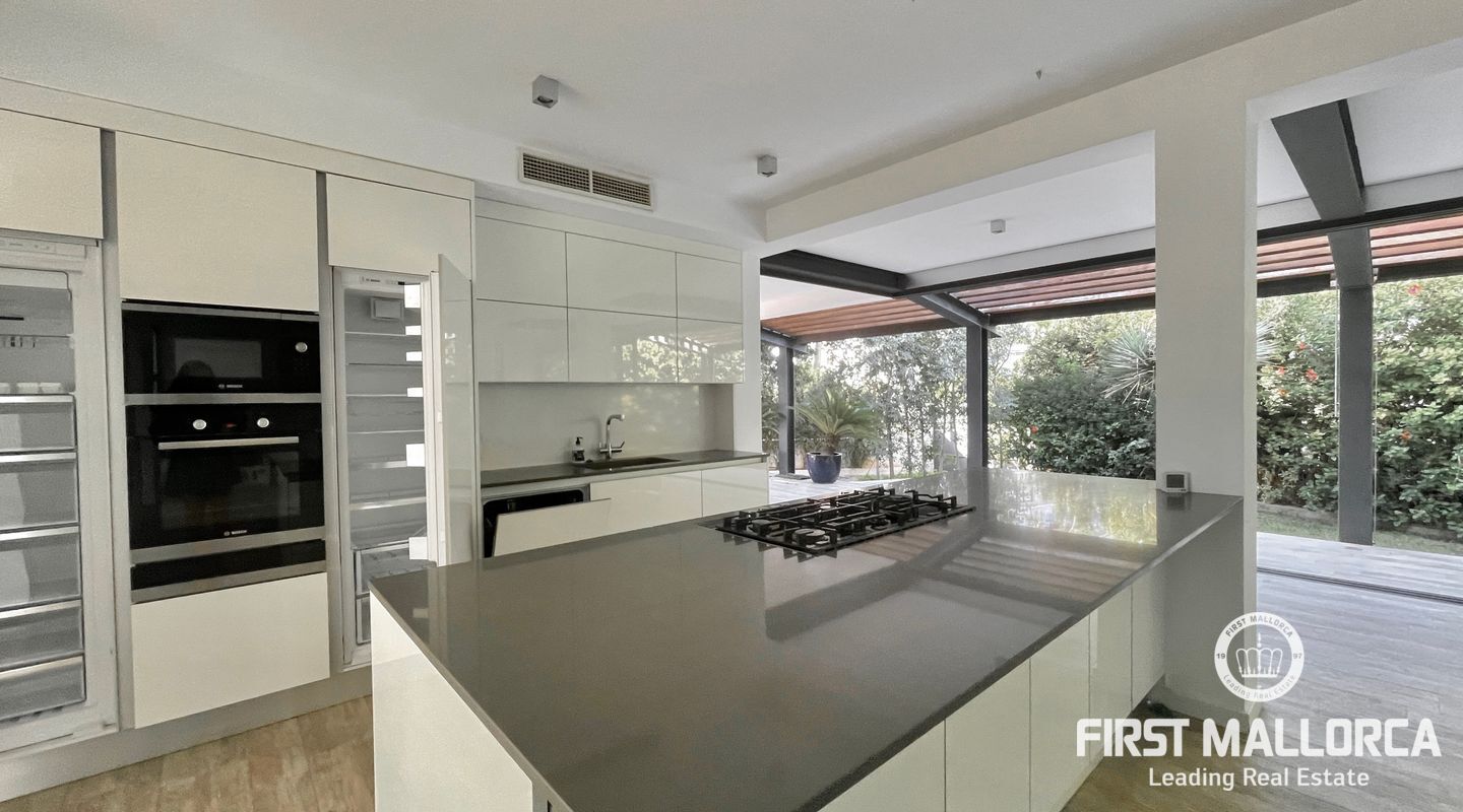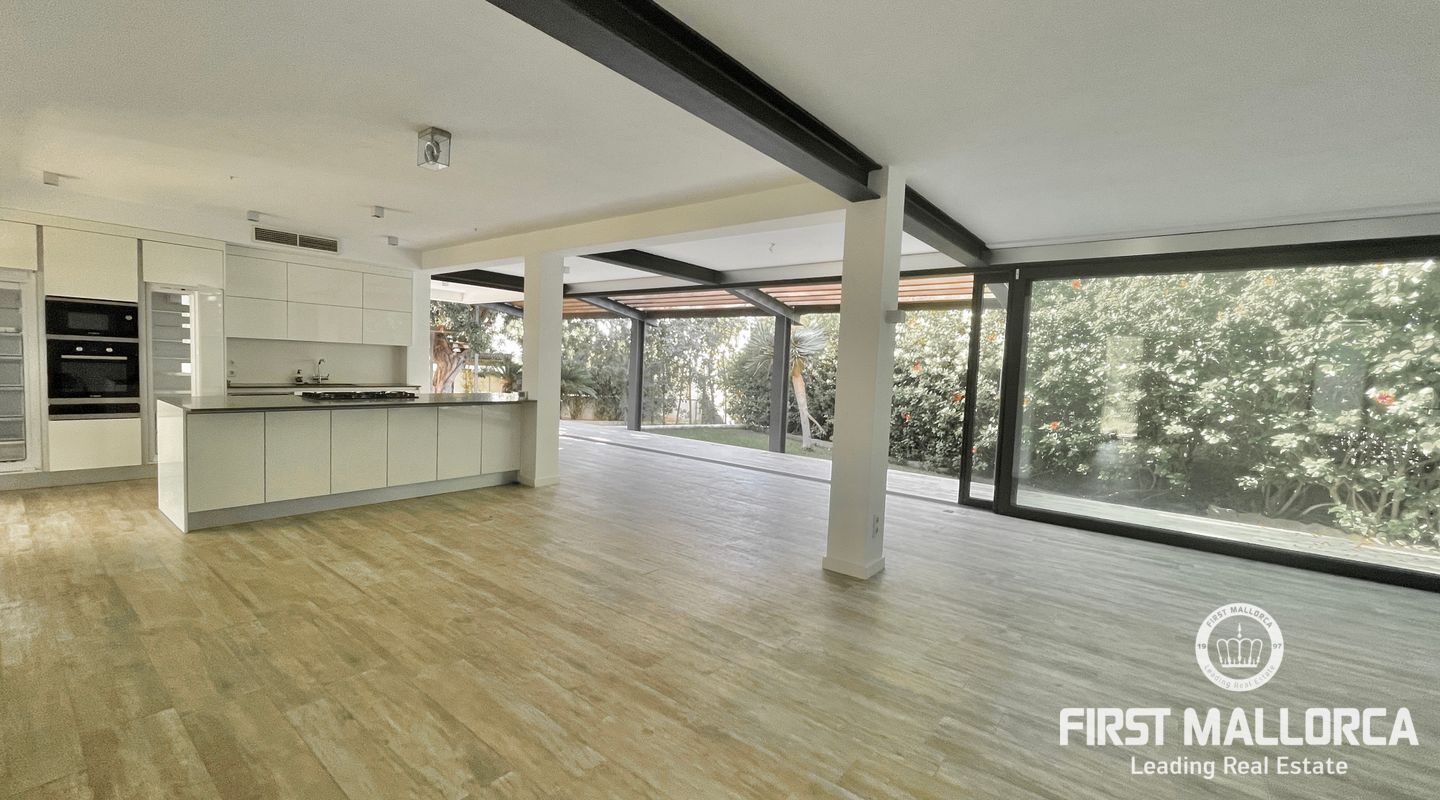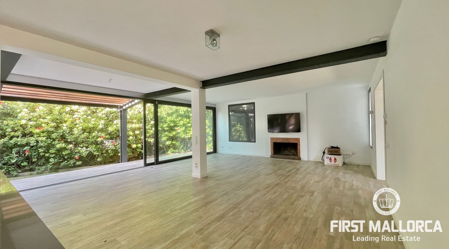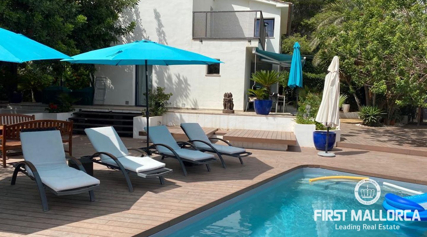Denna moderna fastighet med lyxig atmosfär ligger på en plan tomt med trädgård samt ett stort utomhusområde, bara några minuters gångavstånd till stränderna, restaurangerna, stormarknaderna och småbåtshamnen Puerto Portals. Bottenvåningen har ett rymligt vardagsrum med öppen planlösning som består av ett vardagsrum med öppen spis, matplats och ett fullt utrustat drömkök. På denna nivå finns också ett sovrum och ett badrum. De andra sovrummen ligger på första våningen, ett av dem med eget badrum. Det mysiga poolområdet med gott om plats för solbad och utomhusaktiviteter sticker ut. Detta är det perfekta huset för en familj med barn. Det hyrs endast ut för kortare vistelser.
