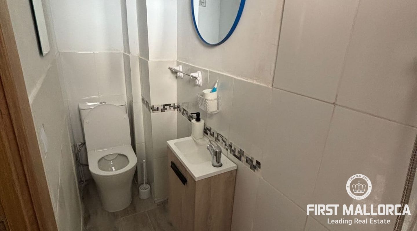 När vi kommer in hittar vi ett mysigt vardagsrum med matsal och kök med öppen planlösning, utrustat med alla nödvändiga apparater för att flytta in. På denna våning finns också ett badrum med dusch, perfekt för stranddagar. Terrassen på baksidan, som erbjuder en avslappnad atmosfär, har en tvättstuga och ett perfekt utrymme för grillkvällar med vänner eller familj.