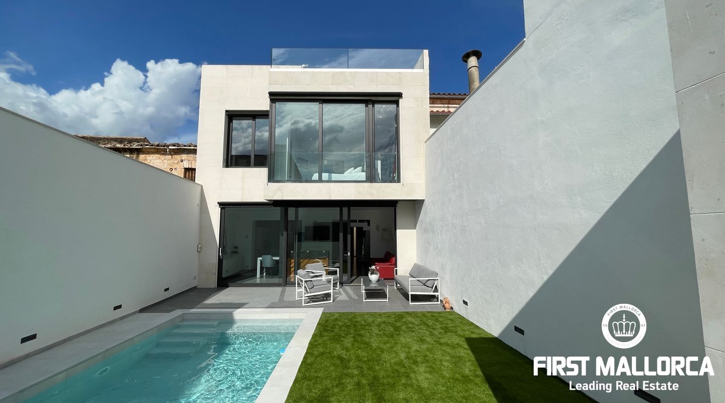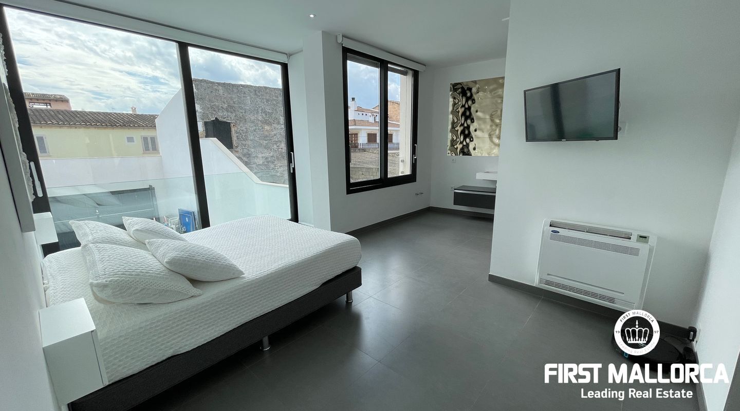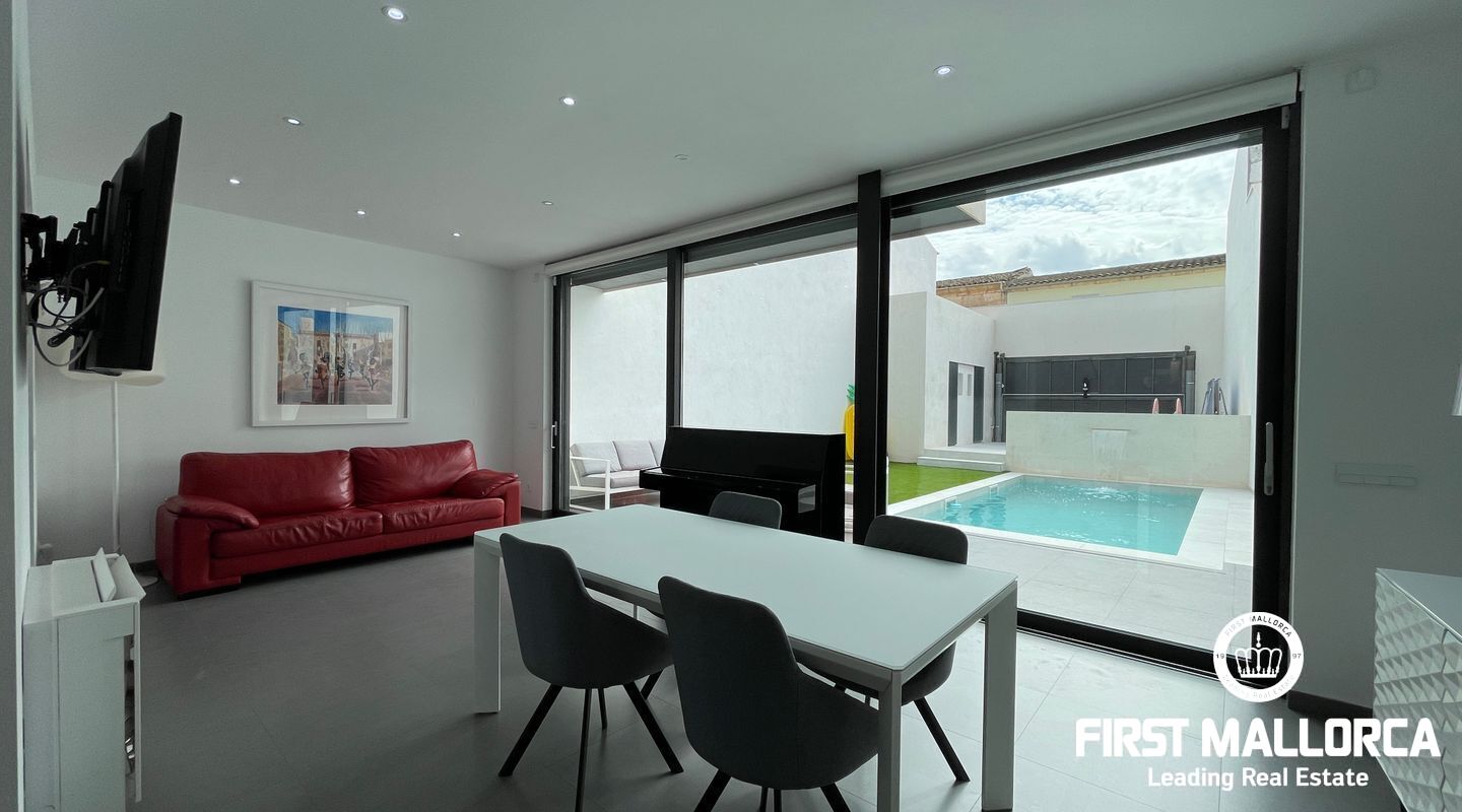 Detta nybyggda moderna designhus ligger i den lugna byn Sa Pobla och erbjuder ett hem fullt av ljus och komfort. Huset är fördelat på tre våningar och kombinerar öppna och funktionella utrymmen med en modern touch.