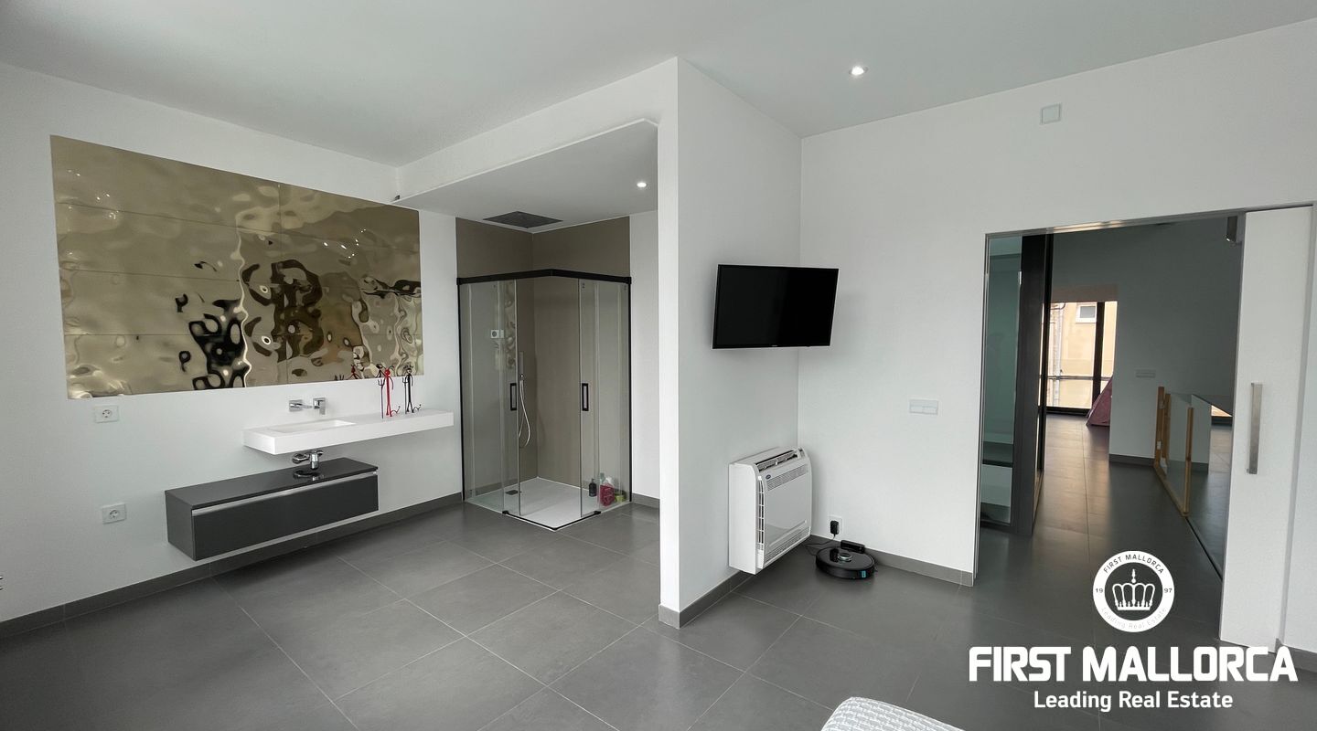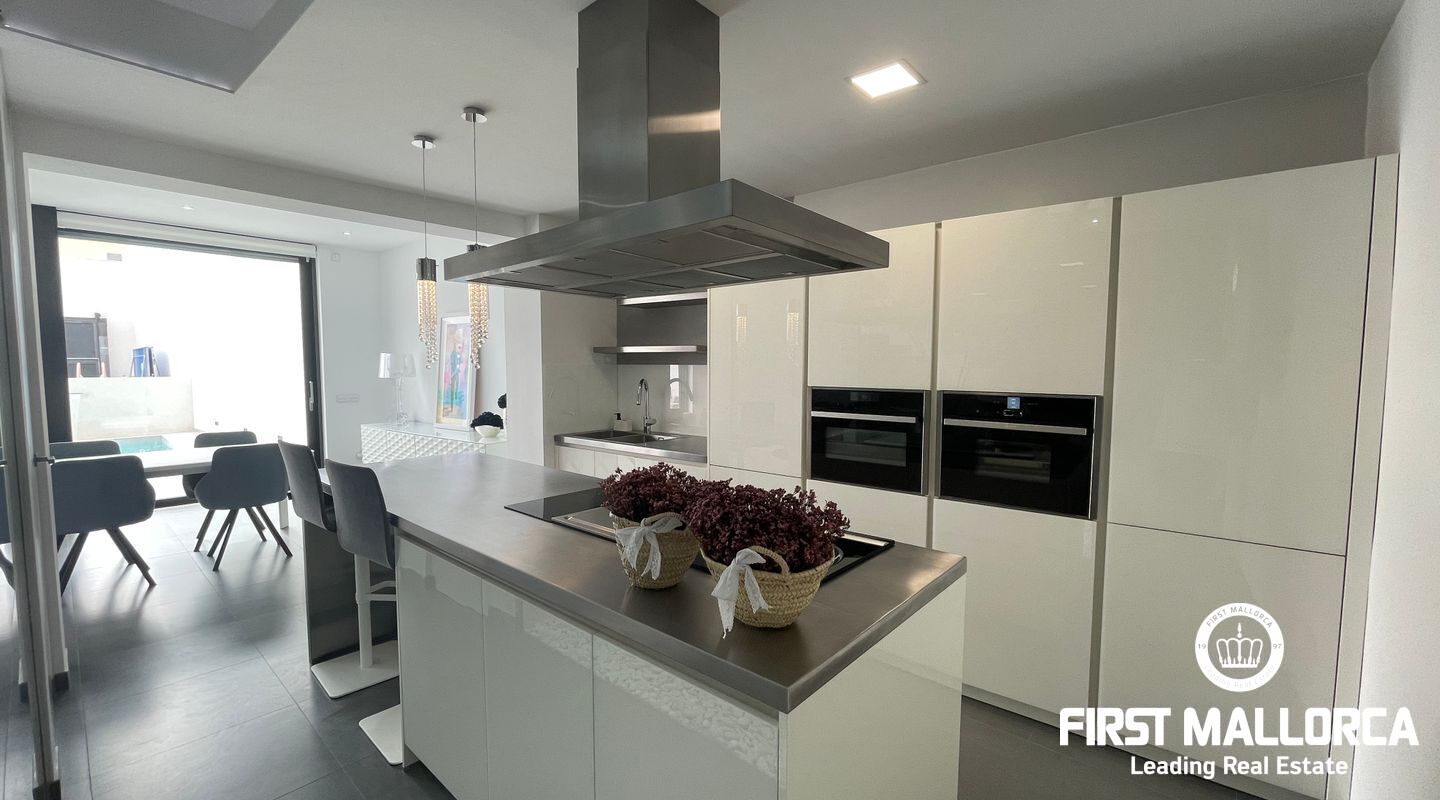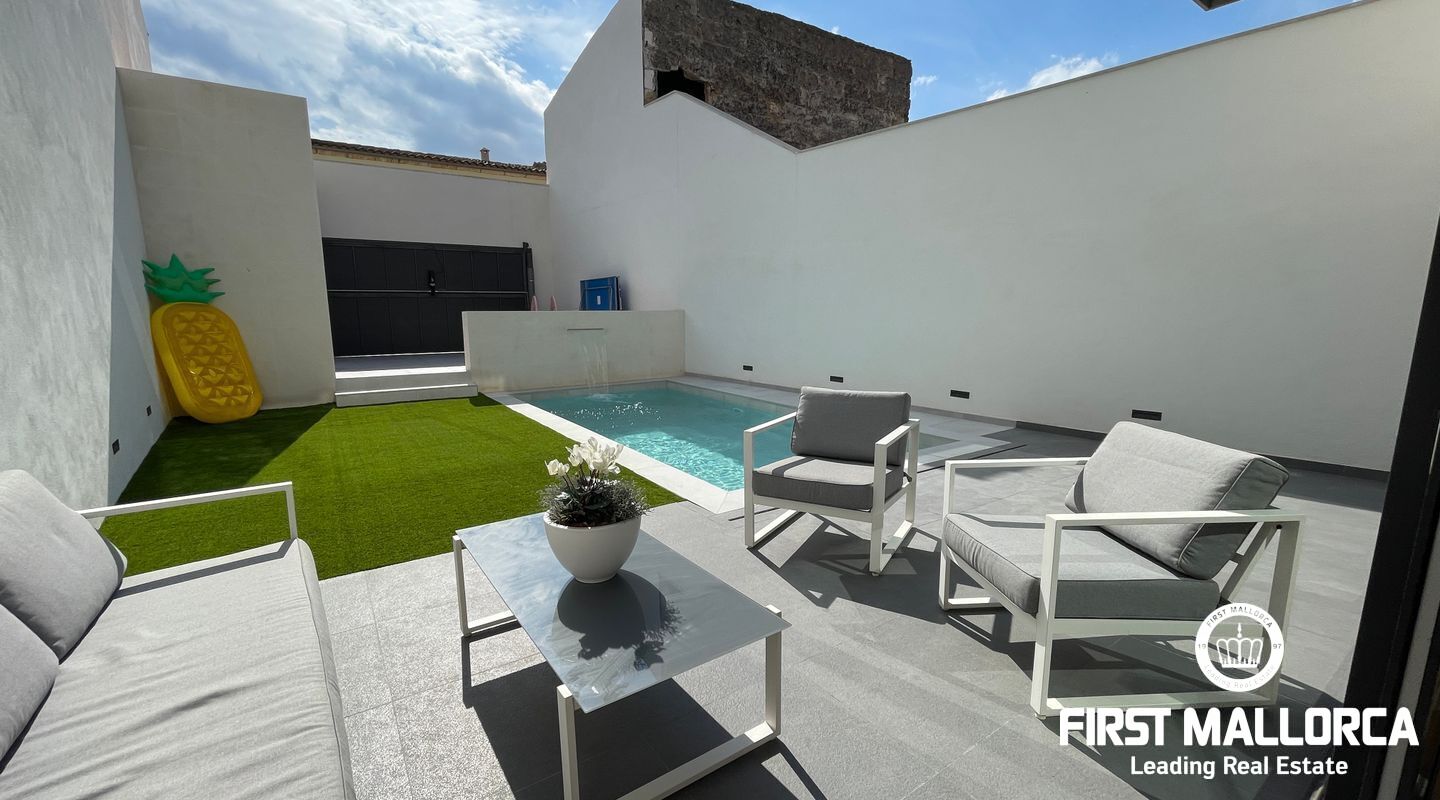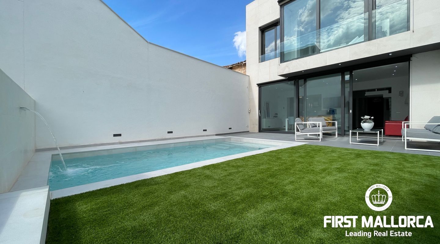 Detta nybyggda moderna designhus ligger i den lugna byn Sa Pobla och erbjuder ett hem fullt av ljus och komfort. Huset är fördelat på tre våningar och kombinerar öppna och funktionella utrymmen med en modern touch.