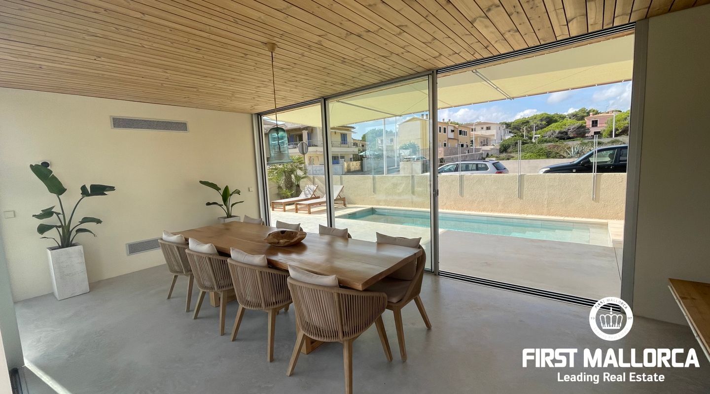 Upptäck denna spektakulära nybyggda villa i Son Serra de Marina, en äkta fristad av lugn och naturlig skönhet. Med högkvalitativa materialval erbjuder denna fastighet imponerande havsutsikt från alla sovrum, vardagsrummet och matsalen, vilket skapar en unik upplevelse i varje del av huset. Dessutom är terrasserna utformade för att du ska kunna njuta fullt ut av omgivningen och havsbrisen.