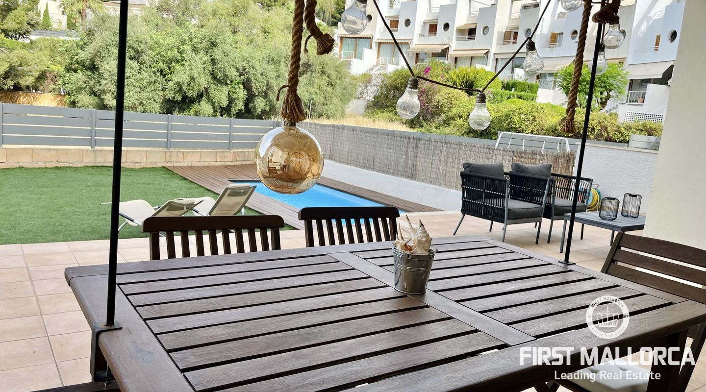 Vacker lägenhet på bottenvåningen med mysig känsla och inbjudande design. Mycket ljust vardagsrum med matplats låter dig känna glädje och komfort. Terrassen och den privata poolen kommer att skämma bort dig under de varma sommardagarna och nätterna. Även tillgång till den gemensamma poolen. En perfekt plats att njuta av med din familj och dina vänner. Fullt möblerad lägenhet, fullt utrustat kök med tvättstuga. Lägenhet med tre sovrum med ett badrum med eget badrum. Lägenhet belägen i ett bostadsområde omgivet av natur med gångavstånd till Palmas centrum. Parkeringsplats ingår.