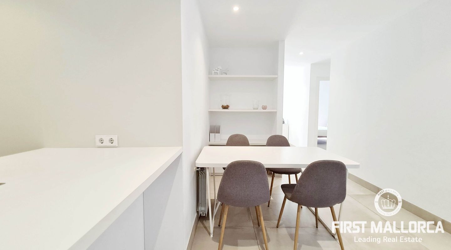Helt renoverad fastighet för uthyrning i det emblematiska området El Terreno i Palma de Mallorca bara några meter från Paseo Marítimo med parkeringsplats som ingår i priset fastigheten levereras fullt möblerad och har två dubbelrum varav ett med eget badrum två badrum totalt ett rymligt och ljust vardagsrum med luftkonditionering öppet kök med ö en balkong i vardagsrummet och ett extra område som kan organiseras som arbetsyta perfekt för dem som söker en funktionell och väl fördelad miljö.