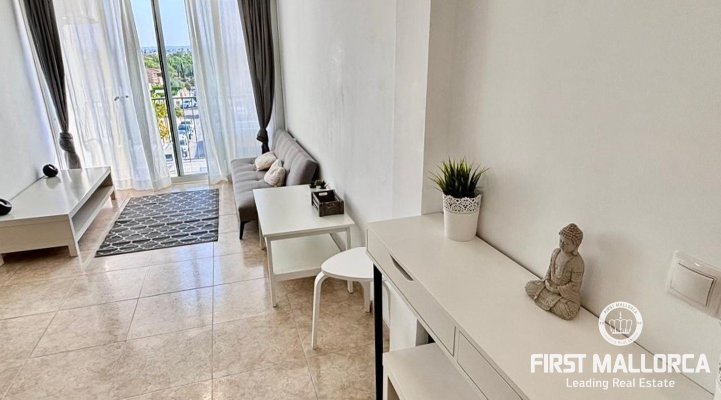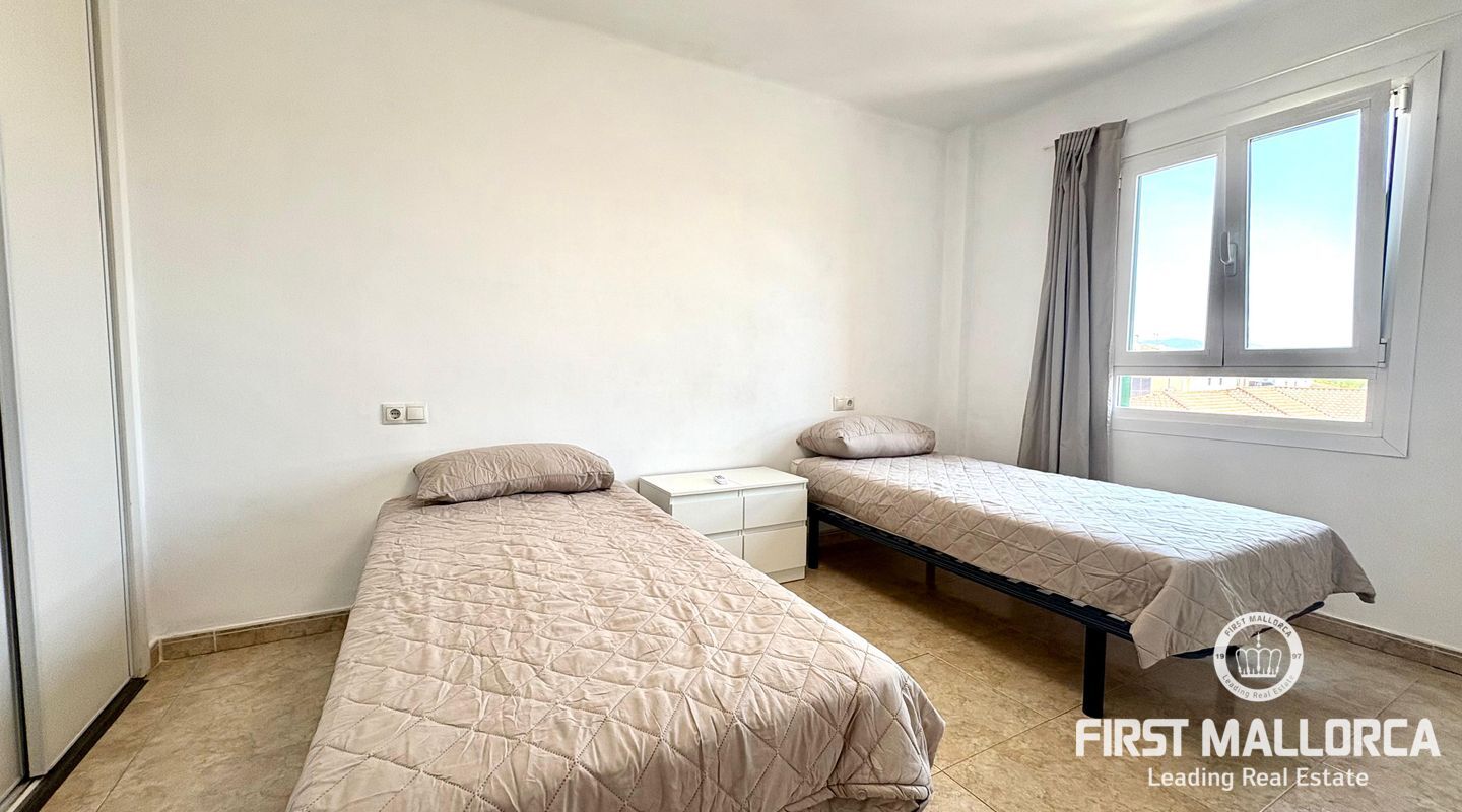 Lägenheten har norrläge och erbjuder fri utsikt över Tramuntanabergen, vilket skapar en lugn och trivsam atmosfär. Rymmer upp till fem personer, tillgänglig för företagsuthyrning från juli 2025.