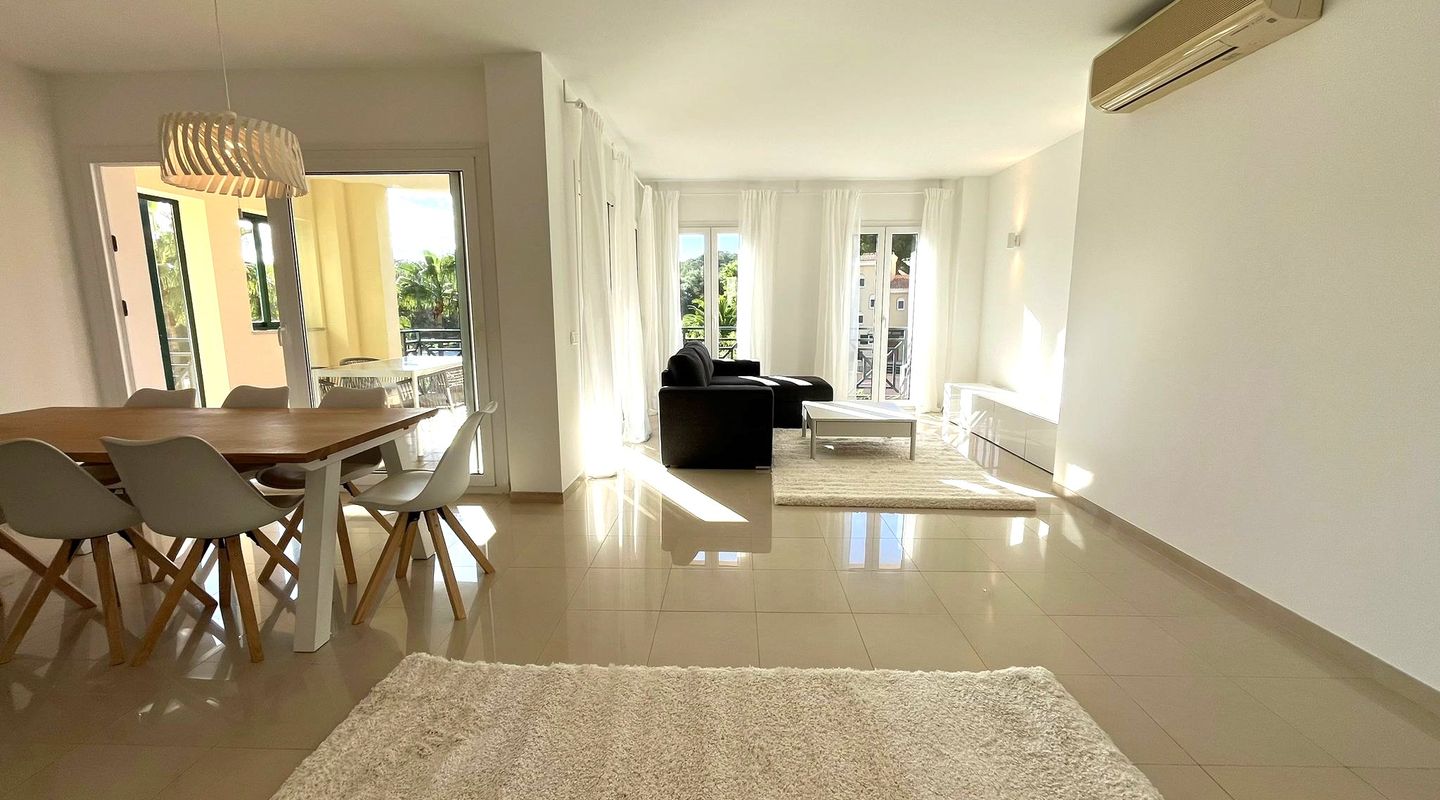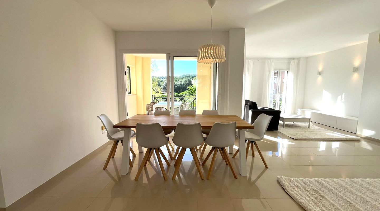 Denna nya och moderna lägenhet i Nova Santa Ponsa utmärker sig genom sin rymlighet, ljusa atmosfär och samtida design. Den har tre sovrum och tre badrum, varav två är en suite, vilket ger maximal komfort och avskildhet. Möblerad med nya och högkvalitativa möbler är bostaden inflyttningsklar. Belägen i ett lugnt bostadsområde med stora grönområden och två gemensamma pooler kombinerar detta hem komfort, stil och en naturnära miljö.