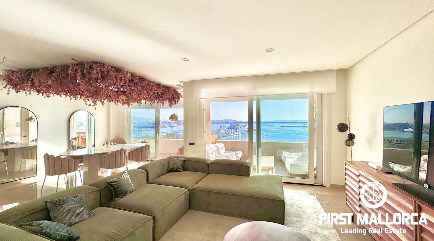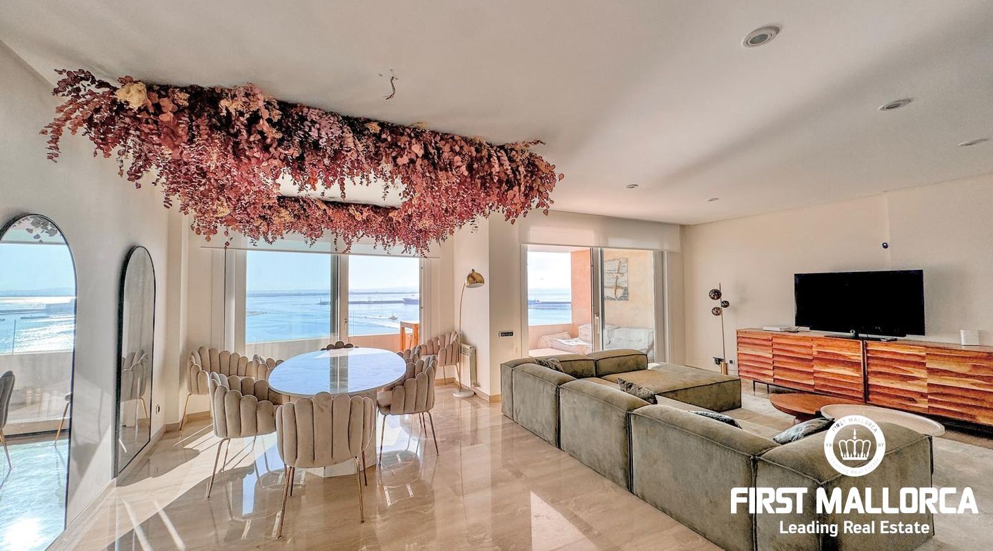 Denna våning består av ett stort fullt utrustat kök, 4 stora sovrum, två av dem med egna badrum, 4 fullständiga badrum och ett rum för tjänstefolk. Förutom att ha en boyta på 300 m2 har den 2 stora terrasser, som kan avnjutas från praktiskt taget hela lägenheten och som båda har utsikt över havet och Palmas hamn.