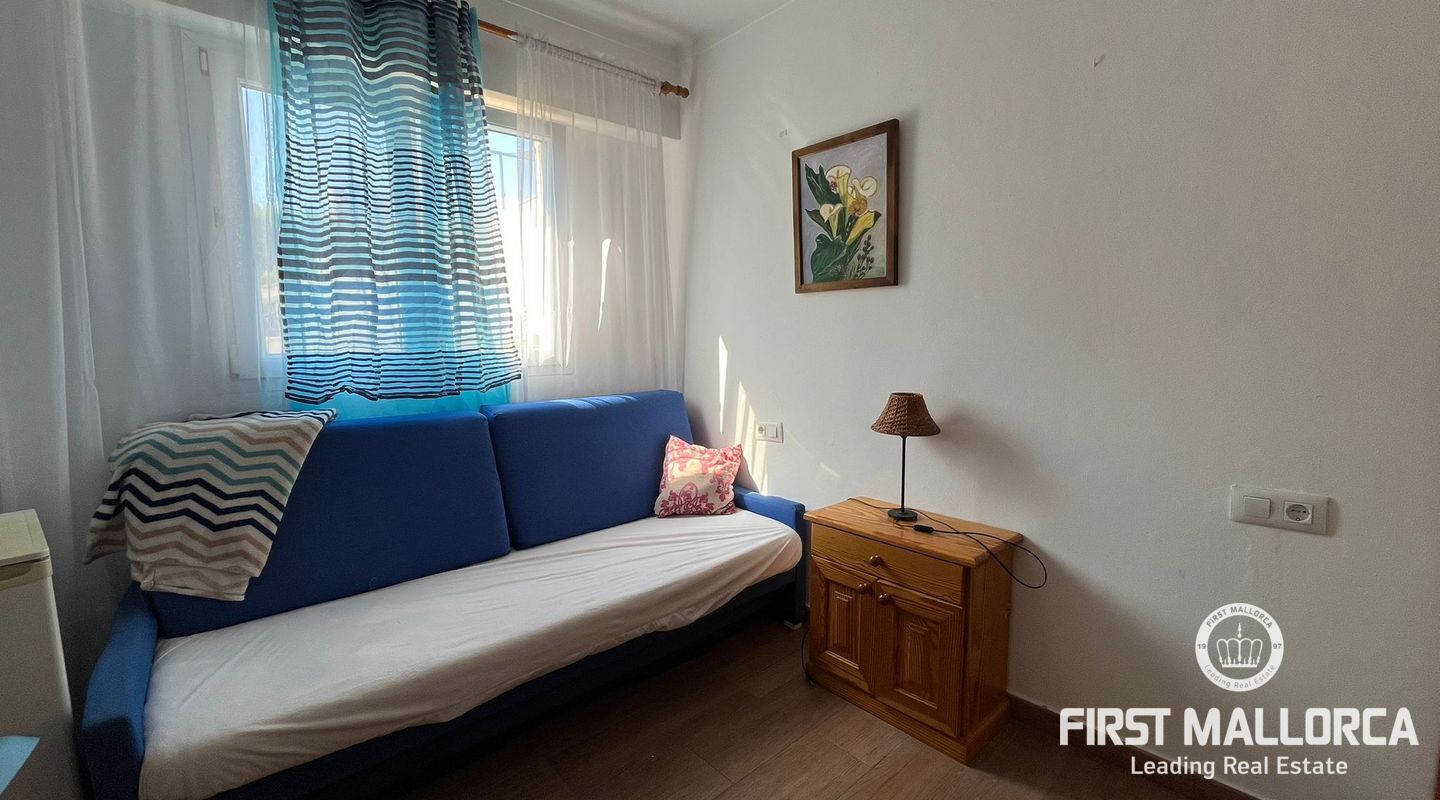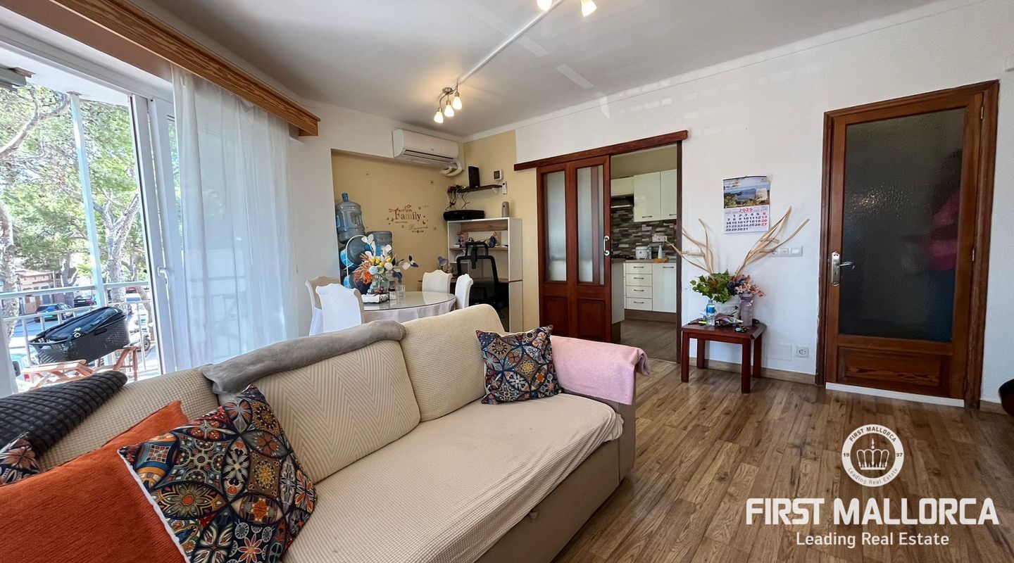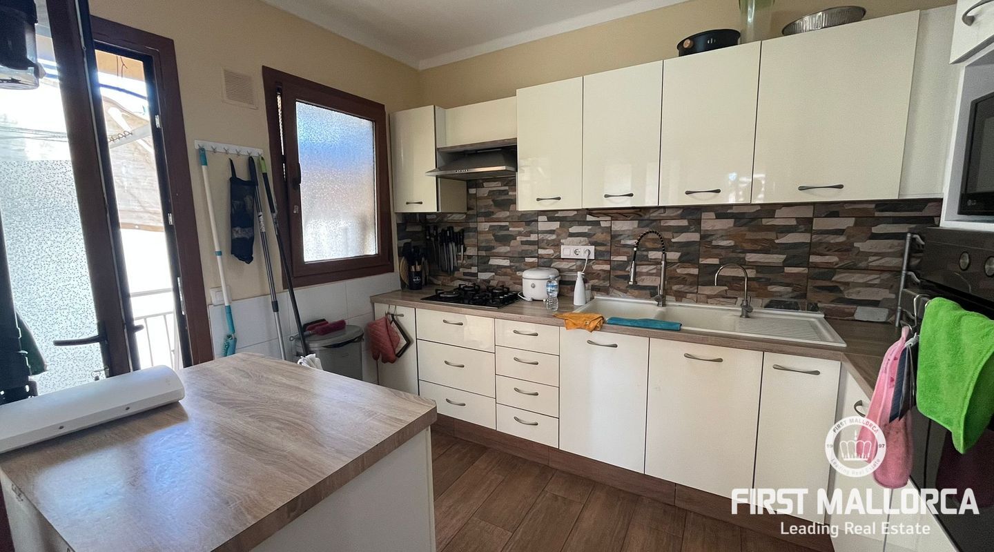Denna lägenhet i Porto Cristo har en praktisk planlösning och erbjuder cirka 124 m² boyta, endast några minuters promenad från havet. Den består av tre sovrum, två badrum och ett rymligt, ljust vardagsrum med stora fönsterpartier. En balkong som löper runt stora delar av lägenheten är tillgänglig från vardagsrummet, köket och två av sovrummen – perfekt för extra utrymme utomhus. Köket är funktionellt utrustat, och ett separat grovkök ger extra förvaringsmöjligheter. Lägenheten uthyrs möblerad och är tillgänglig för långtidsuthyrning från och med den 1 september. Läget nära kusten gör den till ett bra alternativ för den som söker ett boende i Porto Cristo med gott om plats och komplett utrustning.