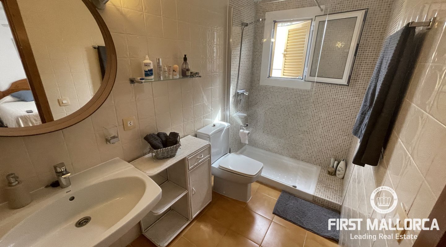 Denna bekväma och rymliga lägenhet ligger bara en rad tillbaka från havet i Santa Ponsa, bara 2 minuters promenad från stranden och en lekplats. Den har ett ljust vardagsrum med matplats som vetter mot en stor terrass med havsutsikt. Lägenheten har tre sovrum med inbyggda garderober och varm/kall luftkonditionering, två badrum (ett en suite) och ett fullt utrustat kök.
