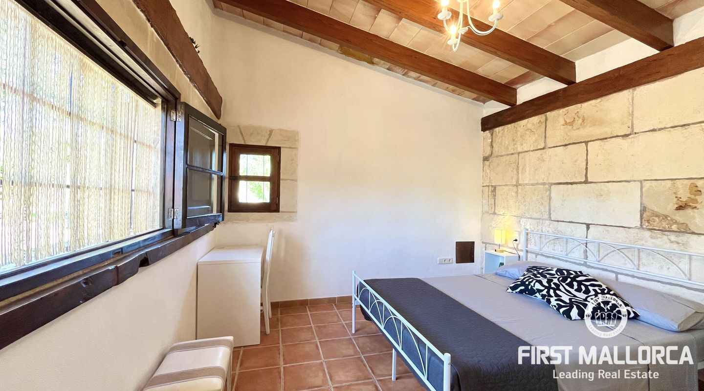 Detta vackra lantliga hus ligger i det fridfulla mallorkinska landskapet, i ett mycket privat område endast 3 minuters bilresa från den charmiga byn Muro och 15 minuter från det kristallklara vattnet vid Playa de Muro.