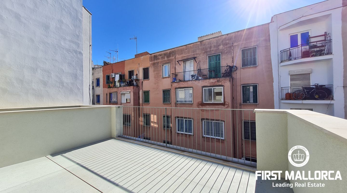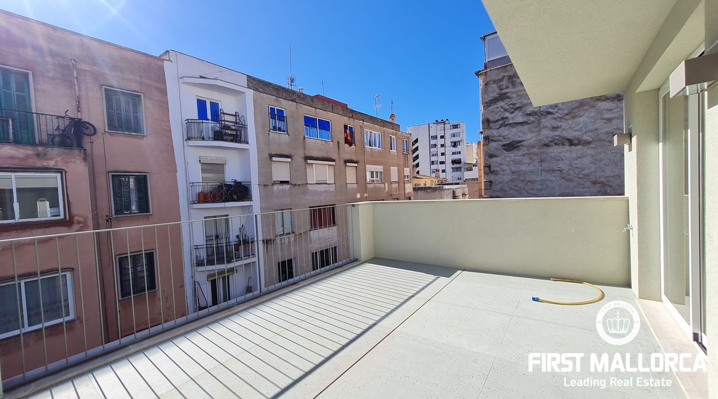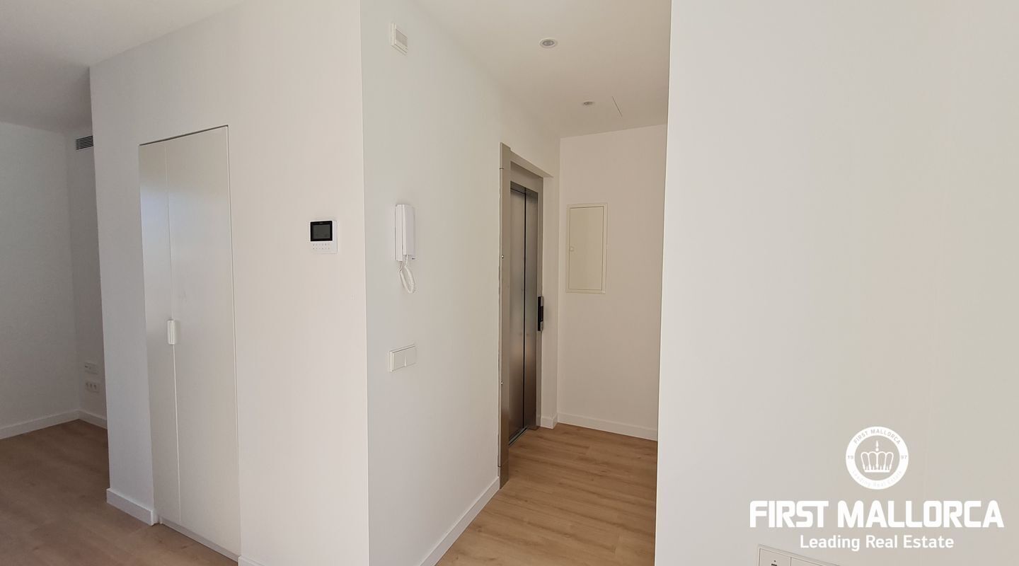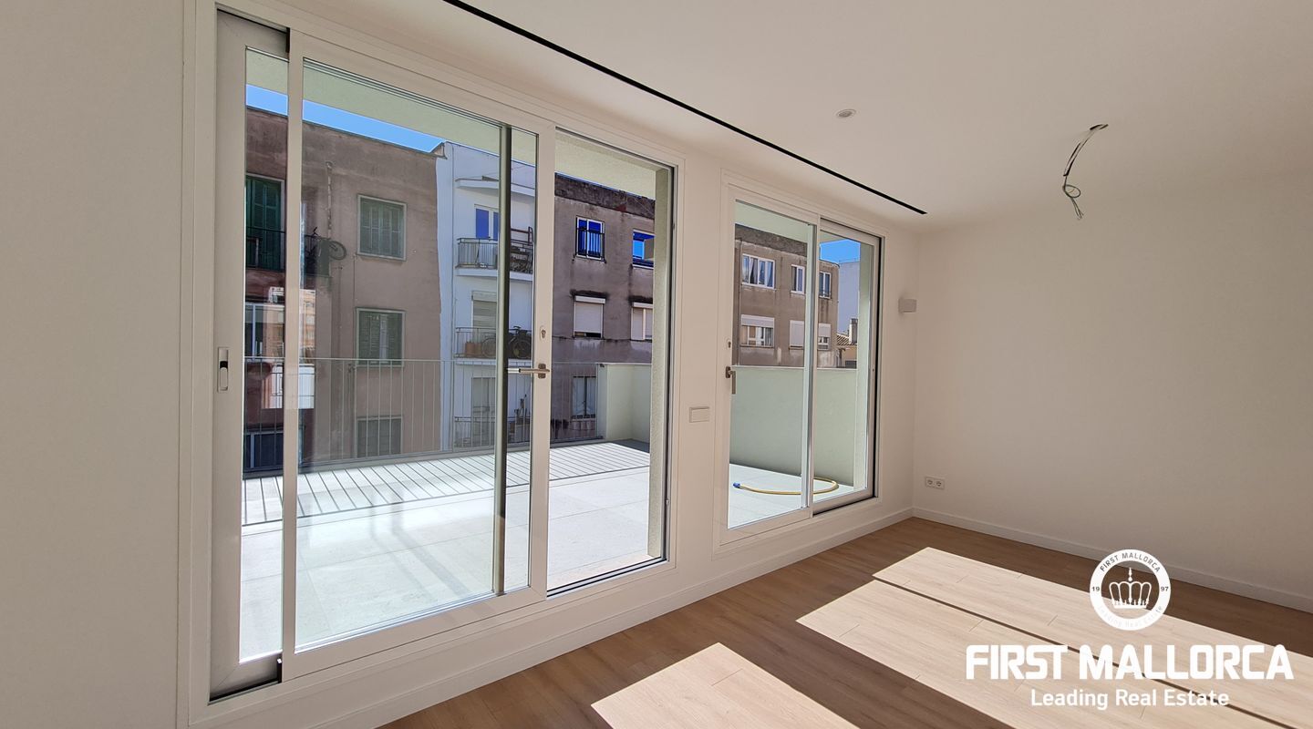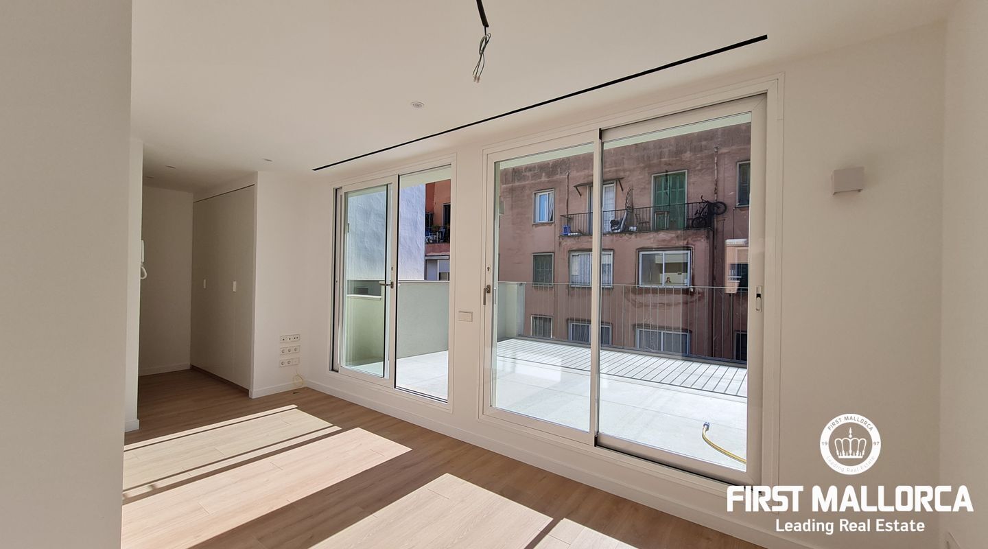 Hela lägenheten är mycket ljus, med stora fönster med dubbla glasrutor skjutdörrar till terrassen.