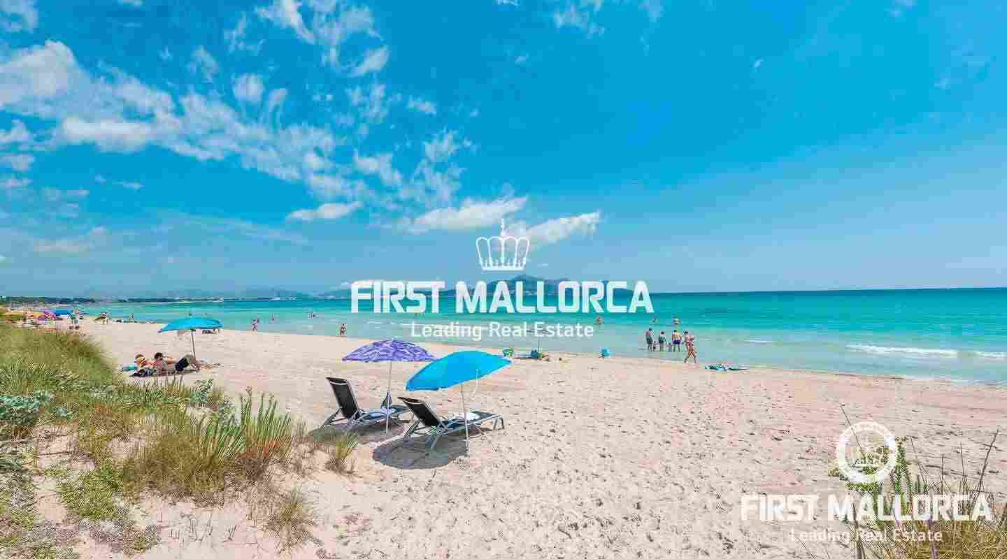 Detta ljusa radhus ligger bara 50 meter från stranden Playa de Muro, Mallorcas längsta sandstrand på öns nordöstra kust.