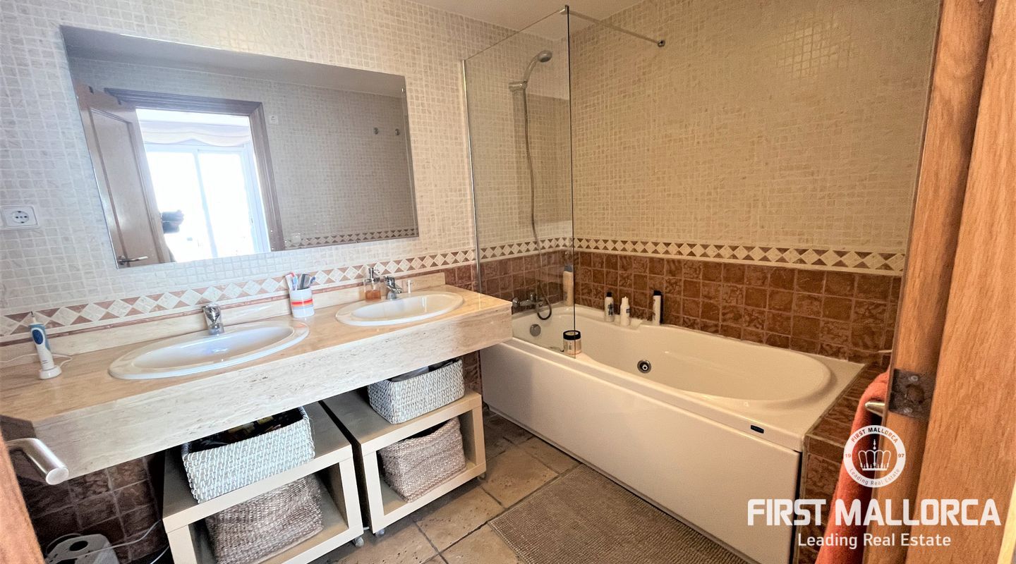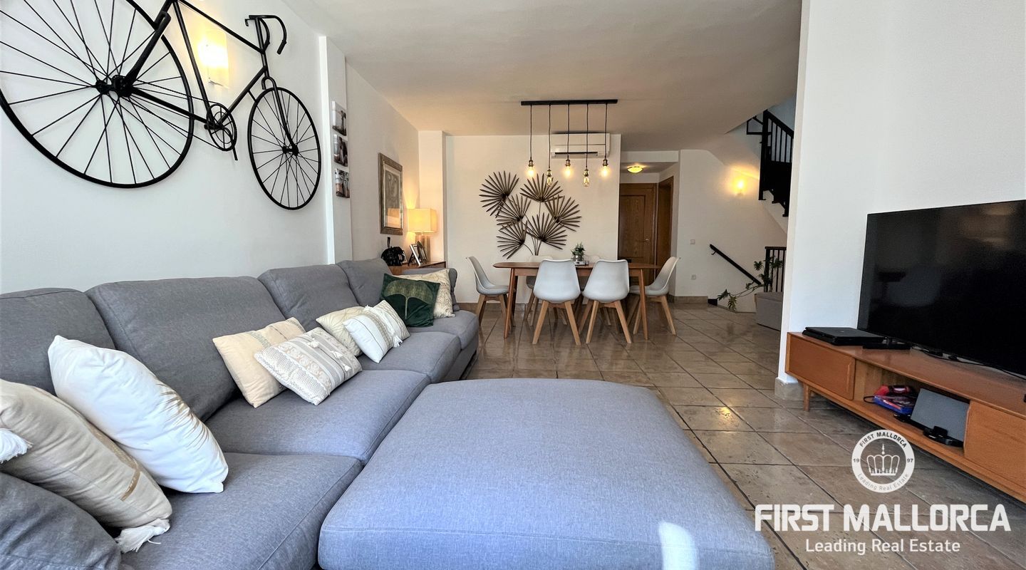 Ljust och rymligt radhus i perfekt skick som nu kan hyras i Puerto Pollensa. Denna fantastiska fastighet erbjuder sina hyresgäster gott om utrymme och har 4 sovrum och 4 separata badrum. Fastigheten hyrs ut fullt möblerad och har en stor och rymlig matsal som går ihop med det fullt utrustade köket. Det finns en fransk balkong från ett av sovrummen. Dessutom finns det luftkonditionering med varm och kall luft i fastigheten. Fastighetens höjdpunkt är den gemensamma utomhuspoolen med utsikt över bergen i fjärran, som du kan njuta av när som helst på året. Det finns privat parkering för 2 bilar. Huset har ett mycket bra läge och ligger nära alla bekvämligheter, en skola och hamnen. Tveka inte att kontakta FIRST MALLORCA för mer information eller för att ordna en visning.