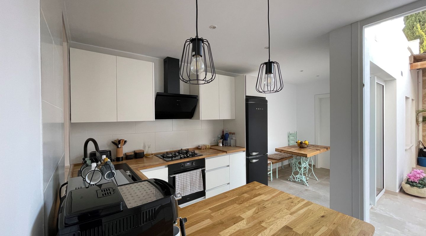 Detta charmiga radhus ligger i hjärtat av Alcudia och erbjuder en blandning av modern komfort och traditionell lockelse. Med tre sovrum, två badrum - varav ett en suite - och en total byggd yta på 197 kvadratmeter, erbjuder denna bostad en tidlös elegans som återspeglar kärnan i Medelhavslivet.