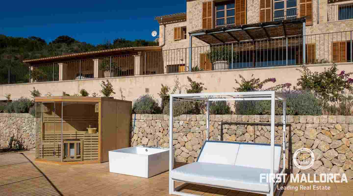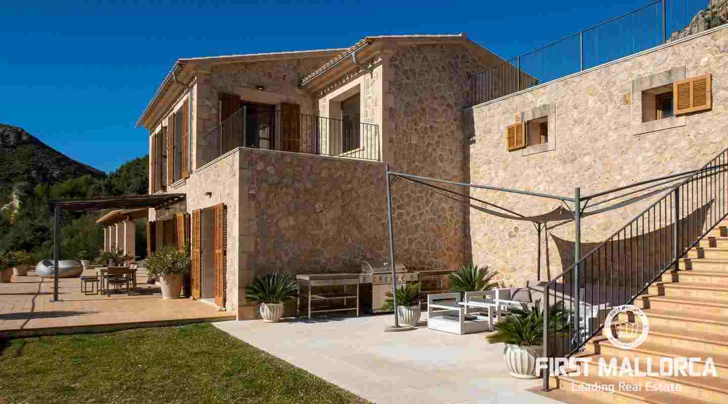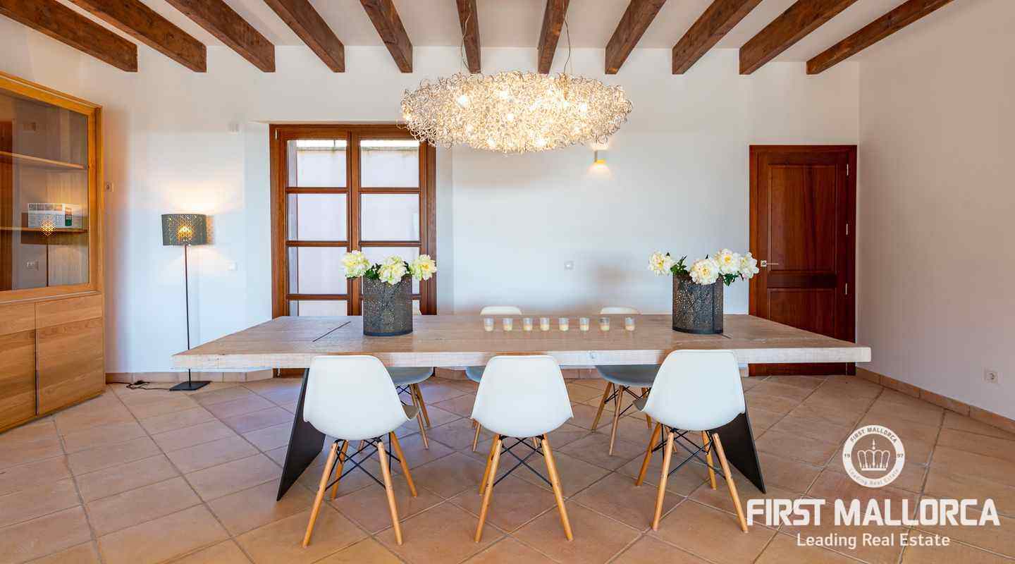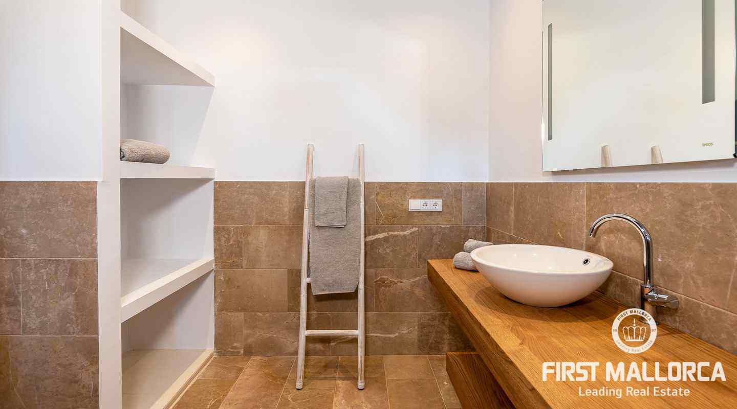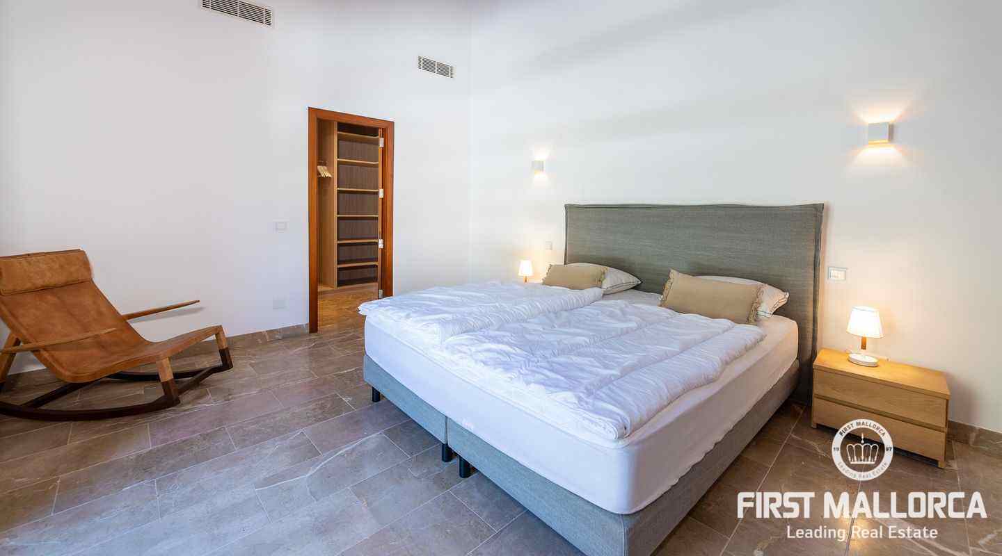 Bottenvåningen består av ett stort vardagsrum i öppen planlösning med matsal och kök med panoramafönster och direkt tillgång till terrassen. På denna våning finns också 2 rymliga sovrum med eget badrum och en gästtoalett. På denna nivå har alla rum direkt tillgång till den stora och delvis täckta terrassen och en inre uteplats. En trappa leder upp till första våningen, där du hittar det stora sovrummet med eget badrum med egen privat terrass och ytterligare ett sovrum med eget badrum. Dessutom erbjuder villan en enorm källare full av möjligheter. Den stora poolen är omgiven av flera terrasser, en lounge och en grillplats. På denna terrass kan du koppla av och njuta av medelhavsatmosfären och den sensationella panoramiska havs- och bergsutsikten. Denna fantastiska villa är idylliskt belägen på en stor tomt högt upp på ett berg i Andratx, dess sydliga orientering garanterar hela dagen sol på. Körningen till villan är en av de bästa på ön med breda vägar och imponerande utsikt hela vägen från Andratx.