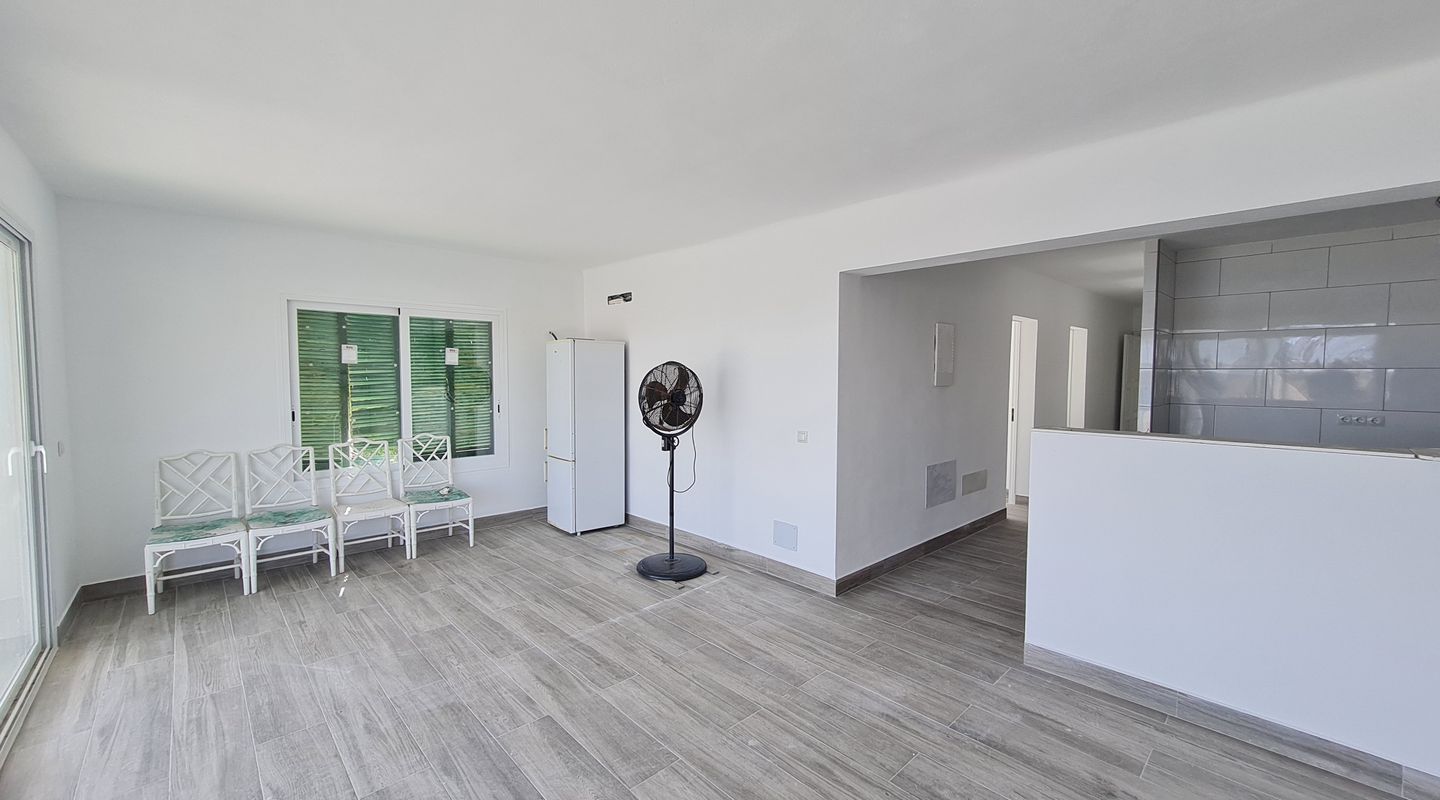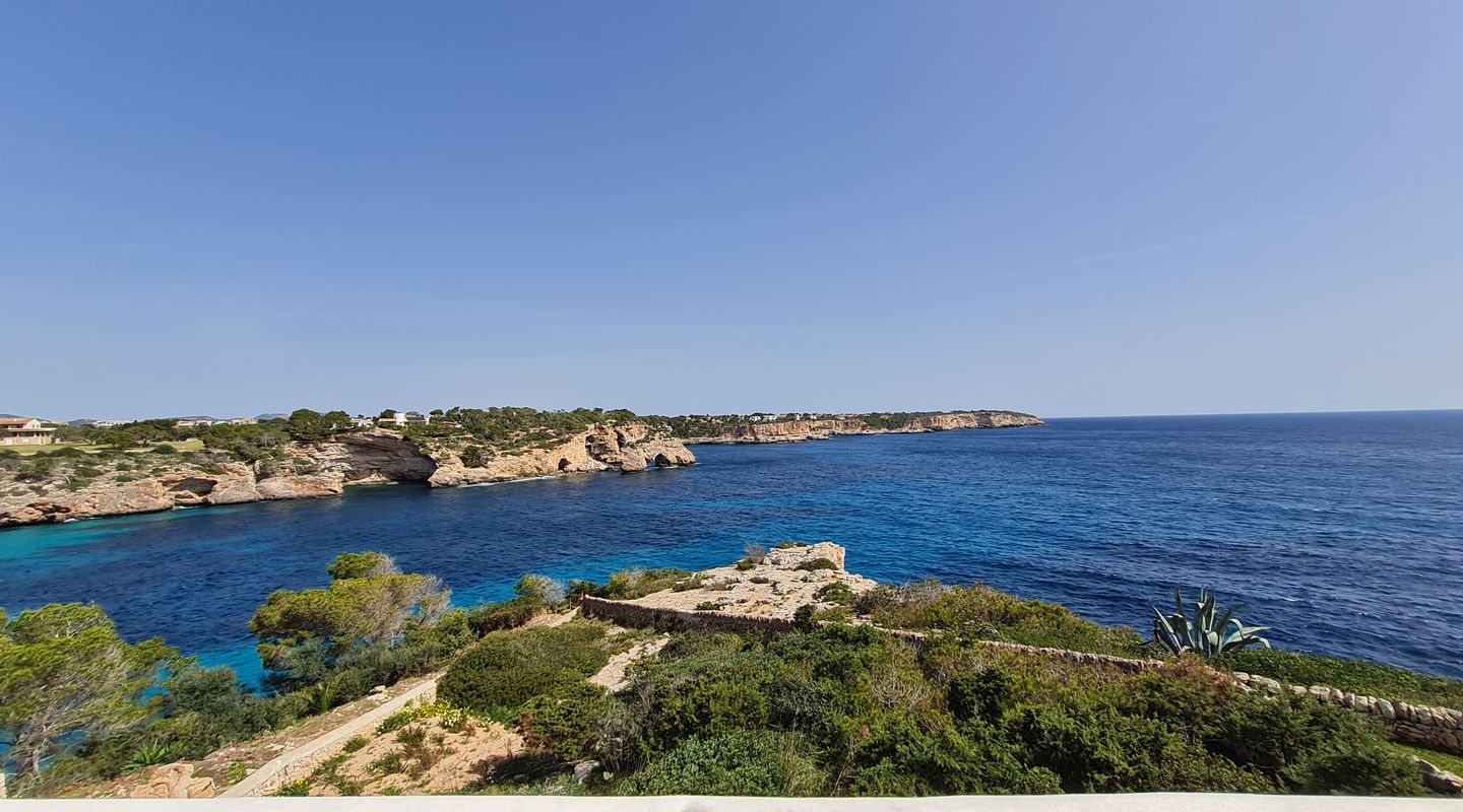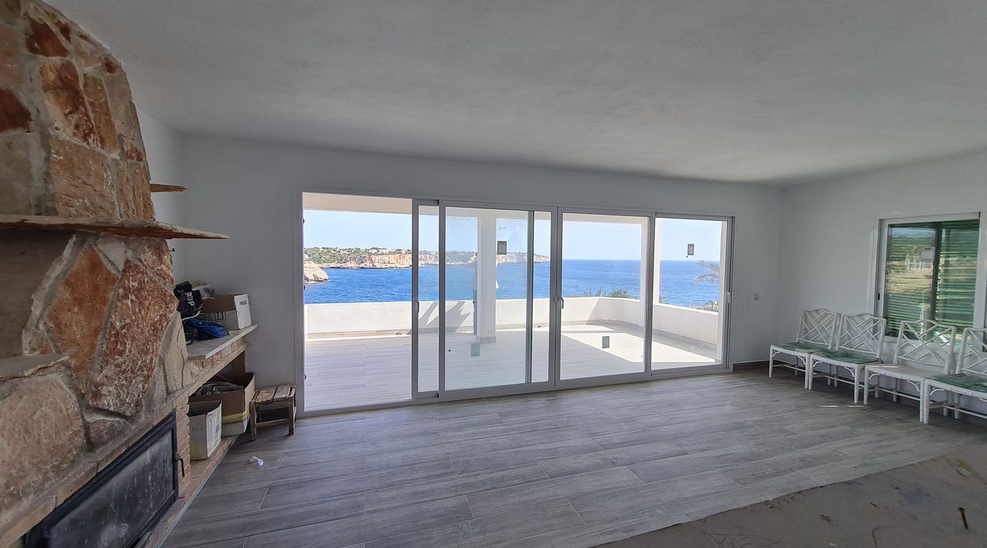Tomten på 907 m² sträcker sig till klipporna och har magnifik utsikt över havet och den berömda klippan Es Pontàs.