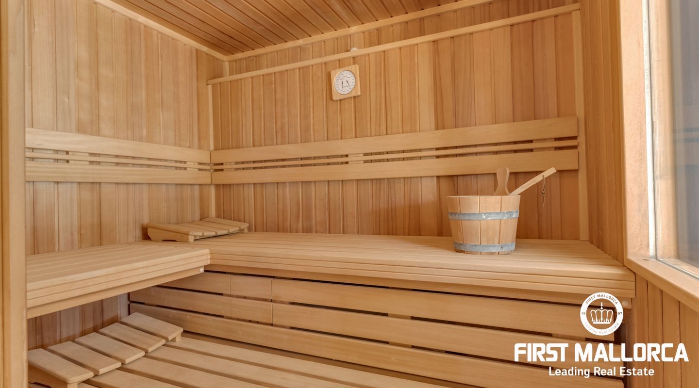 Gästavdelningen, gymmet och bastun ligger precis vid poolen och ger extra komfort och lyx.