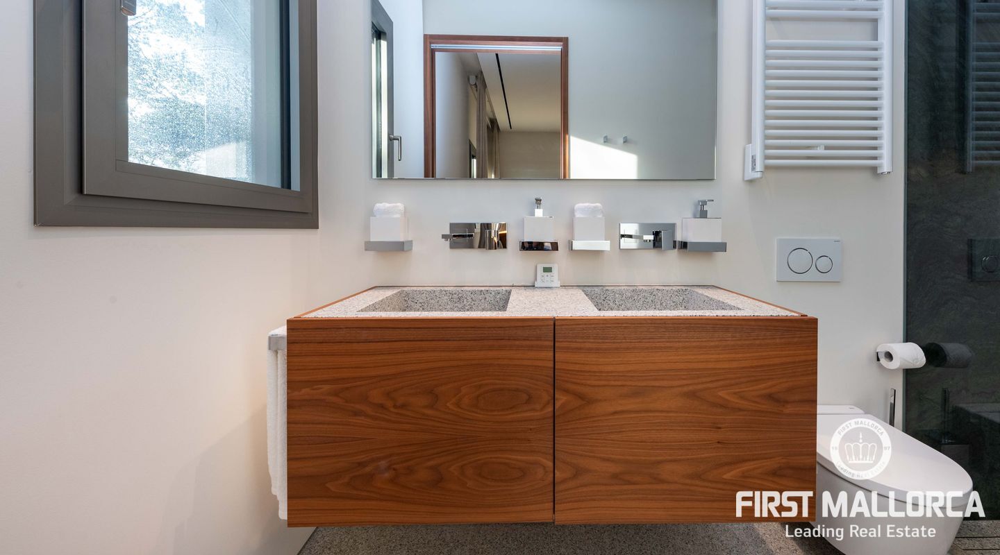 Denna imponerande lyxvilla i Puerto Pollensa är en sann arkitektonisk pärla som kombinerar modern design, komfort och enastående panoramautsikt. Belägen på ett högt läge erbjuder fastigheten fri och spektakulär utsikt över de majestätiska Tramuntanabergen, vilket gör att du kan njuta av en privilegierad naturlig miljö från ditt hems bekvämlighet.