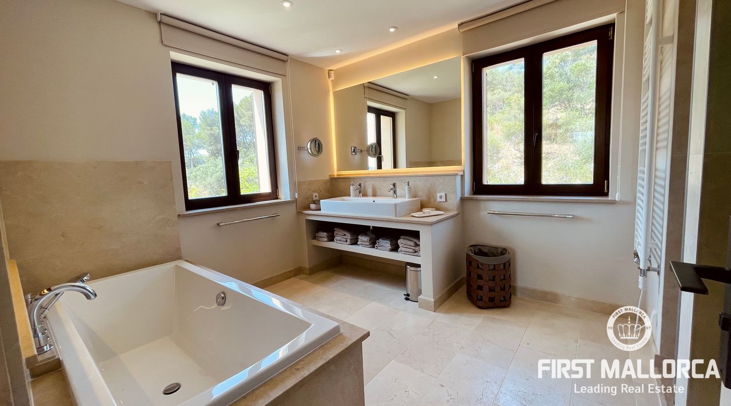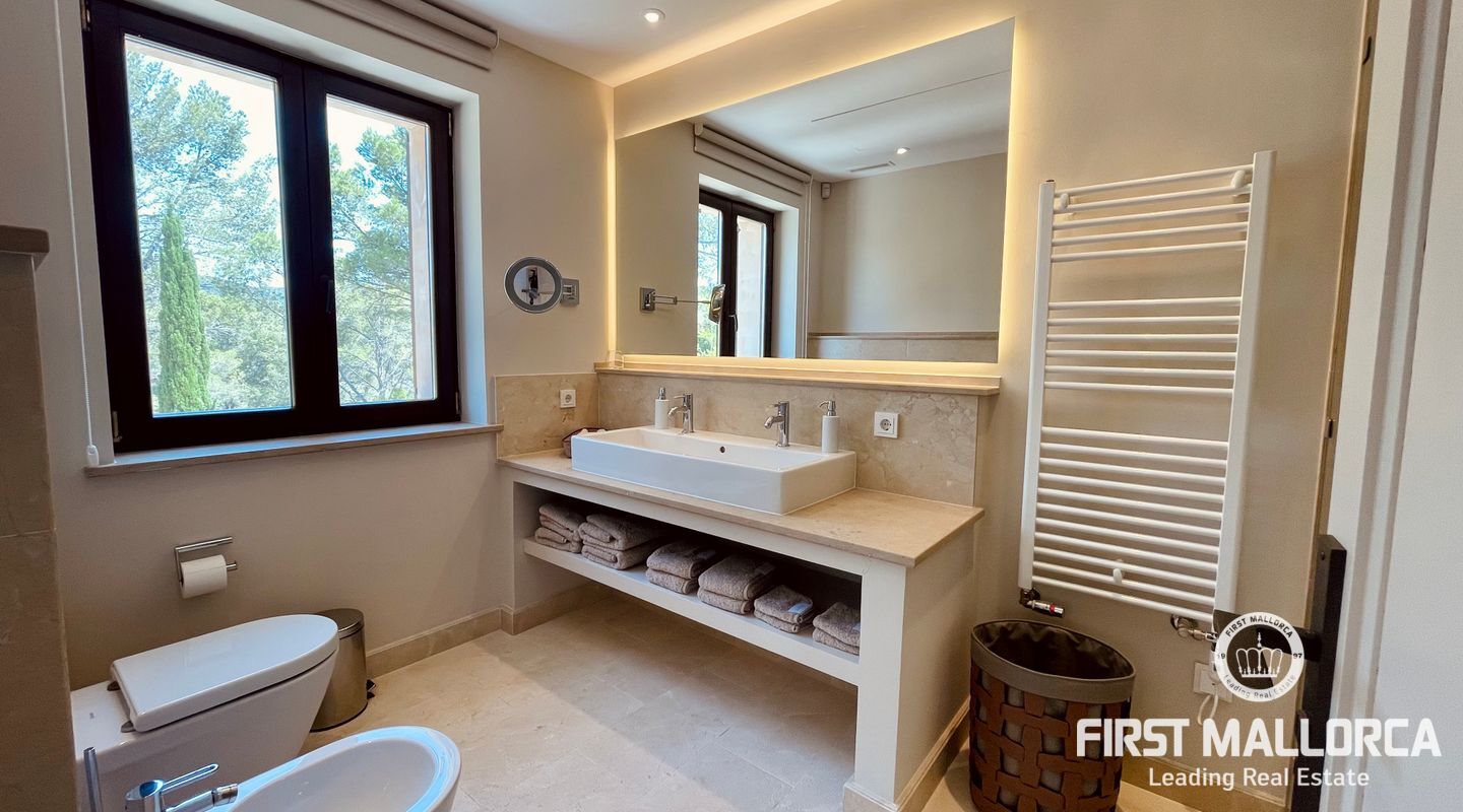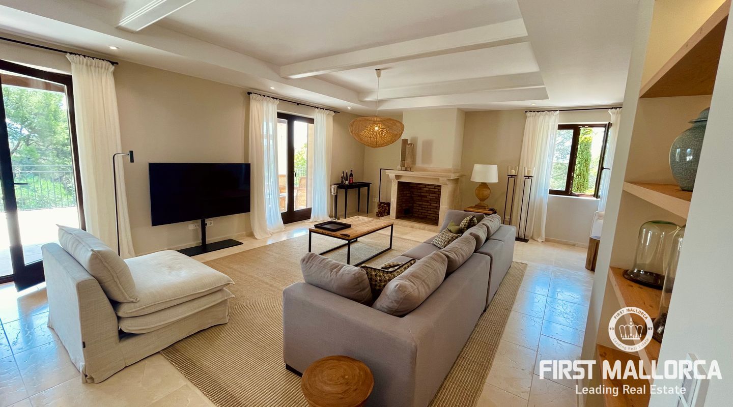 Denna enastående villa får dig att känna dig som kungligheter. Nyligen renoverad med material och finish av högsta kvalitet, belägen i det lugna och naturligt eleganta Son Font – ett av öns mest exklusiva områden.