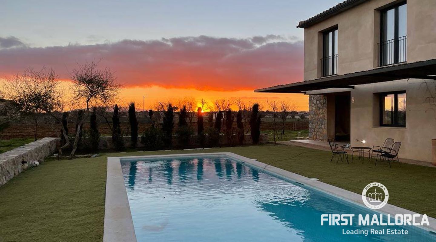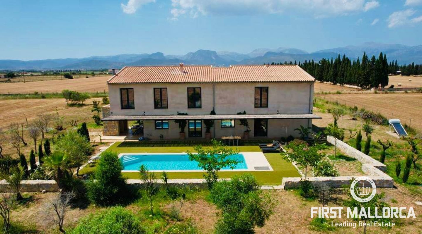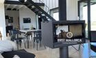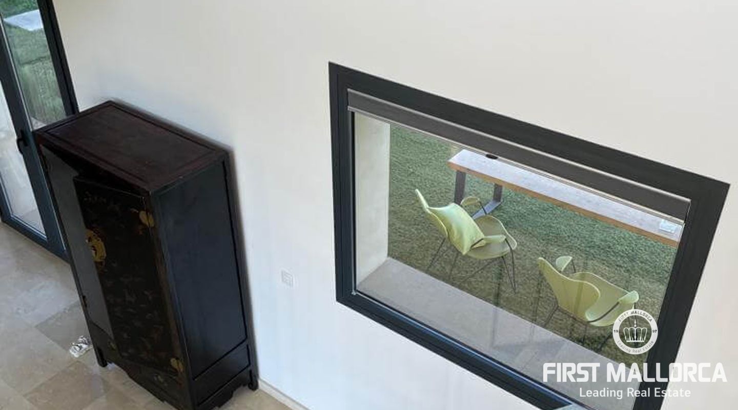 Denna moderna finca ligger i Binissalem, Mallorcas vinhuvudstad, på en tomt på 14 000 kvadratmeter med en byggd yta på 287 kvadratmeter.) Den har två våningar, tre sovrum, tre badrum och ytterligare ett öppet rum. På bottenvåningen finns huvudingången till det stora loftet med kök, matsal och vardagsrum med öppen spis. Det finns ytterligare en ingång för leveranser som ansluter till huvudområdet med en hall (andra kylskåp) och tillgång till tvättstugan (med tvättmaskin och torktumlare). På bottenvåningen finns fyra dörrar till trädgården: den bakre trädgården (syd/öst) med pool, den täckta terrassen med grillplats (syd/väst) och den främre trädgården (nord/väst). Den första våningen nås via en öppen trappa som leder till ett annat öppet rum med spektakulär utsikt över några närliggande byar (Sencelles och Costix) och Tramuntanabergen. I korridoren på första våningen finns det stora sovrummet (med stort badrum/duschrum) och de andra två sovrummen samt ytterligare ett badrum (med badkar). Den övergripande designen präglas av renhet, utmärkta bearbetade material och utvalda möbler och konstverk. Den öppna och ljusa designen integrerar sömlöst naturen i de vackra omgivningarna och kulminerar i en extraordinär visuell axel (inne och ute). Allt detta bidrar till den exceptionella avkoppling som infinner sig när du kommer in i huset. I den bakre trädgården finns en 44 kvadratmeter stor pool (11 x 4 m eller 36 fot x 13,12 fot). WiFi finns tillgängligt. Binissalem ligger mitt på ön med korta avstånd till Palma, flygplatsen, Sierra de Tramunatana (UNSCO Natural Heritaga), väst- och sydkusten (alla inom 20-25 minuters bilresa). Inca, Sencelles och Costix är andra städer och byar inom räckhåll (5 minuter med bil).
