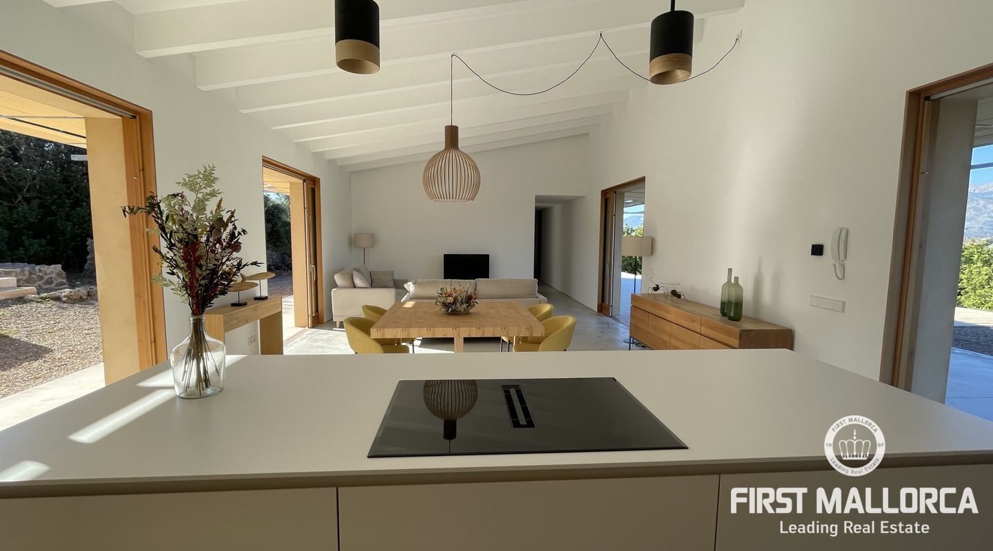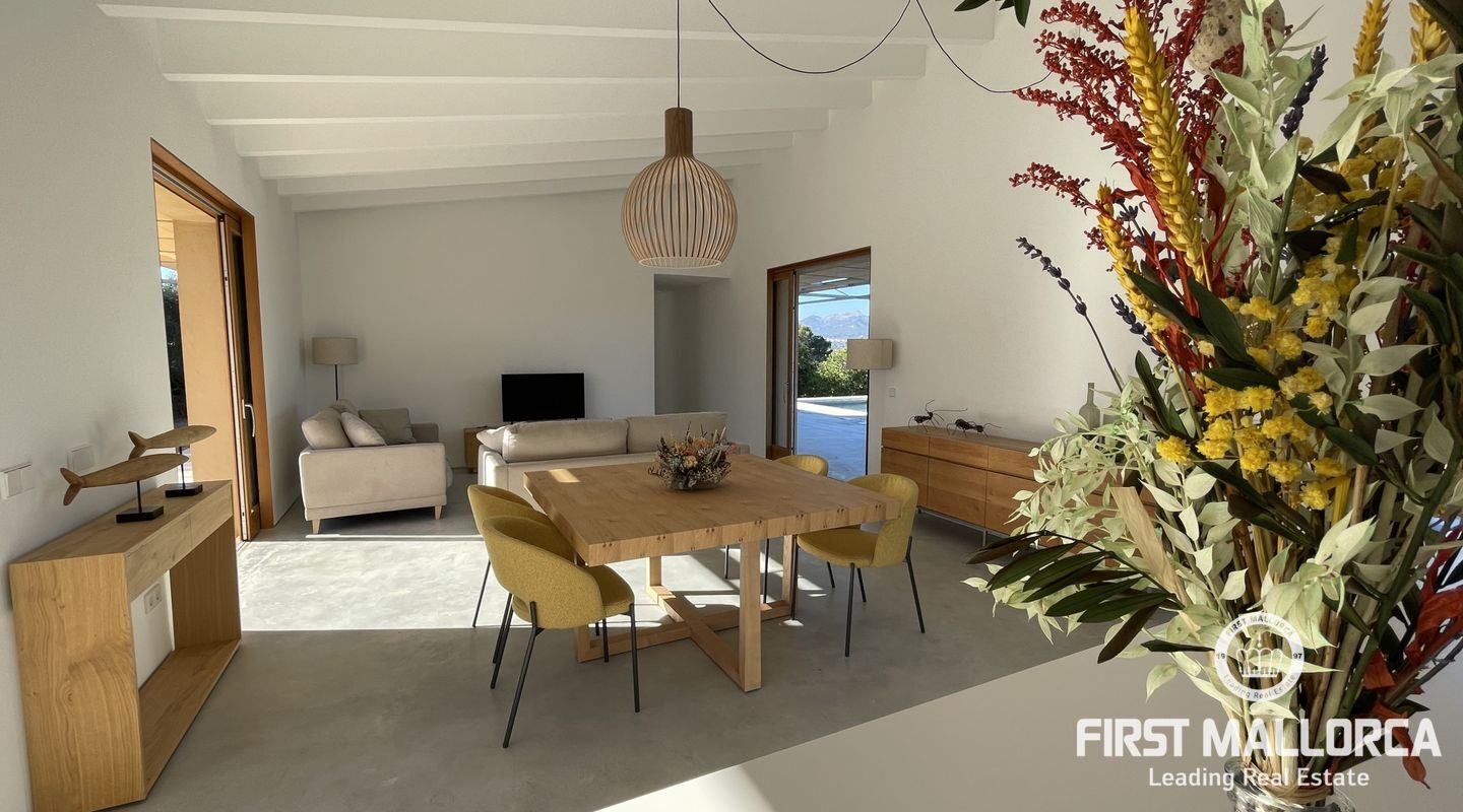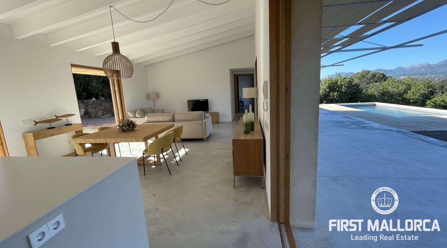 Helt ny villa i utkanten av den magnifika och pittoreska byn Búger med fantastisk utsikt över bergen. Denna nybyggda chalet består av 3 rymliga sovrum och 2 badrum, varav ett badrum. Alla är direkt anslutna till utomhusterrassen som också leder till vardagsrummet/köket. På terrassen finns en trevlig chill out area med en pool, perfekt för avkoppling och solbadning, samt ren njutning av området och dess natur och lugn. Fastigheten har en parkeringsplats samt en grillplats som kan avnjutas året runt. Tveka inte att kontakta FIRST MALLORCA för mer information eller för att ordna en visning. Vårt team står till ditt förfogande när som helst.