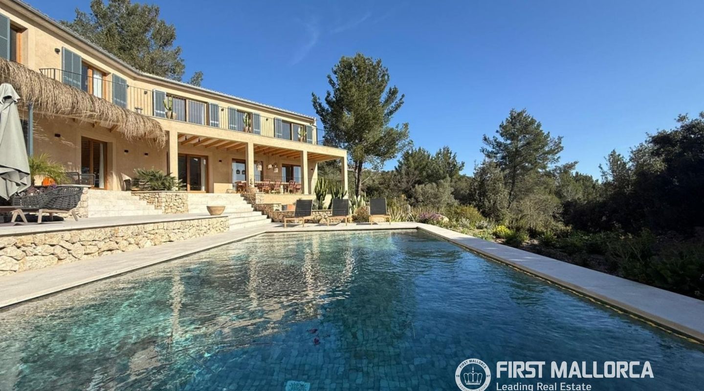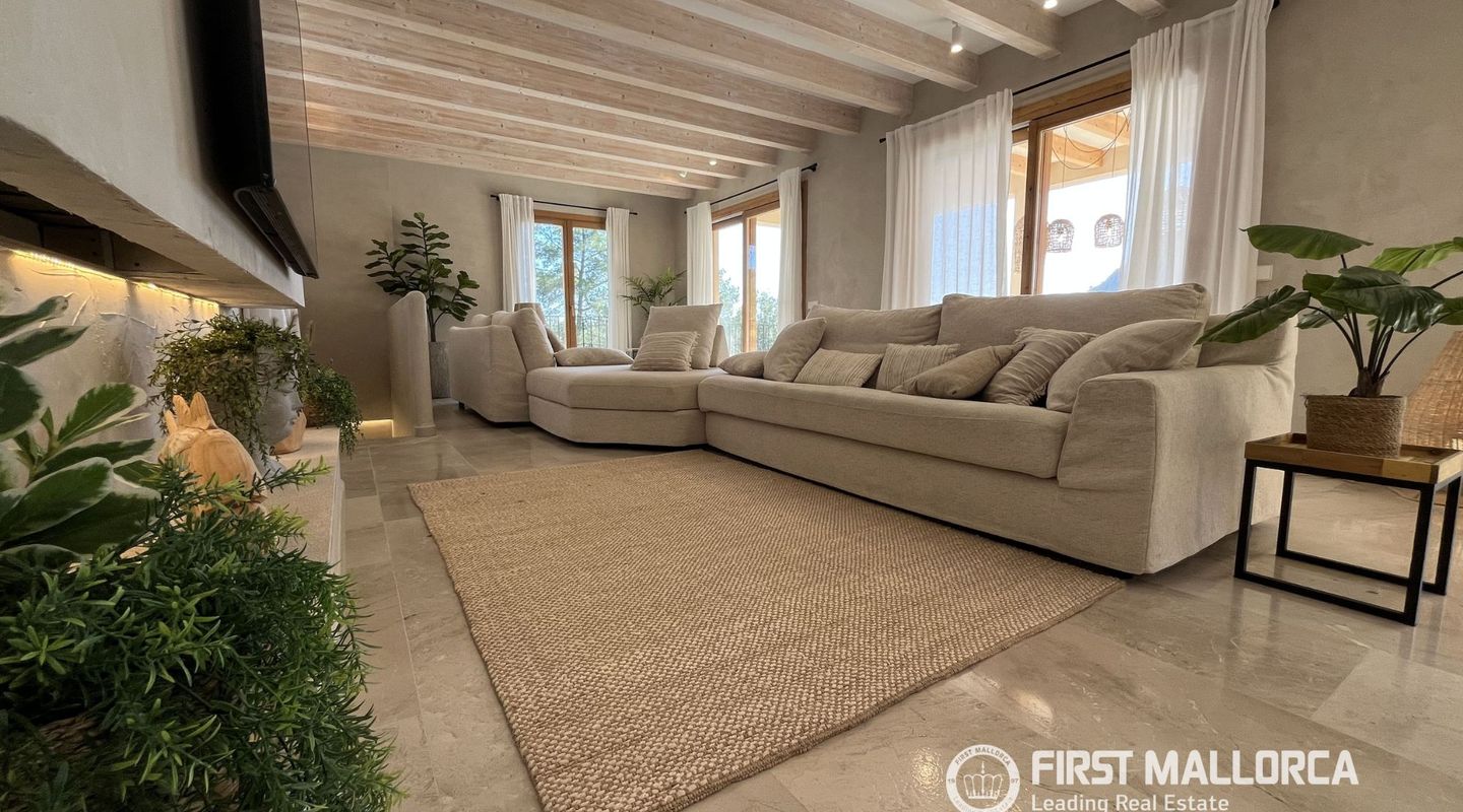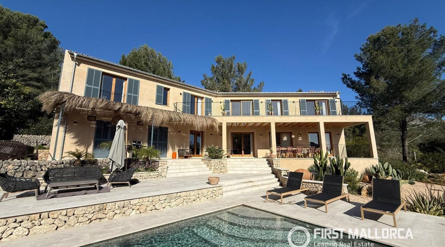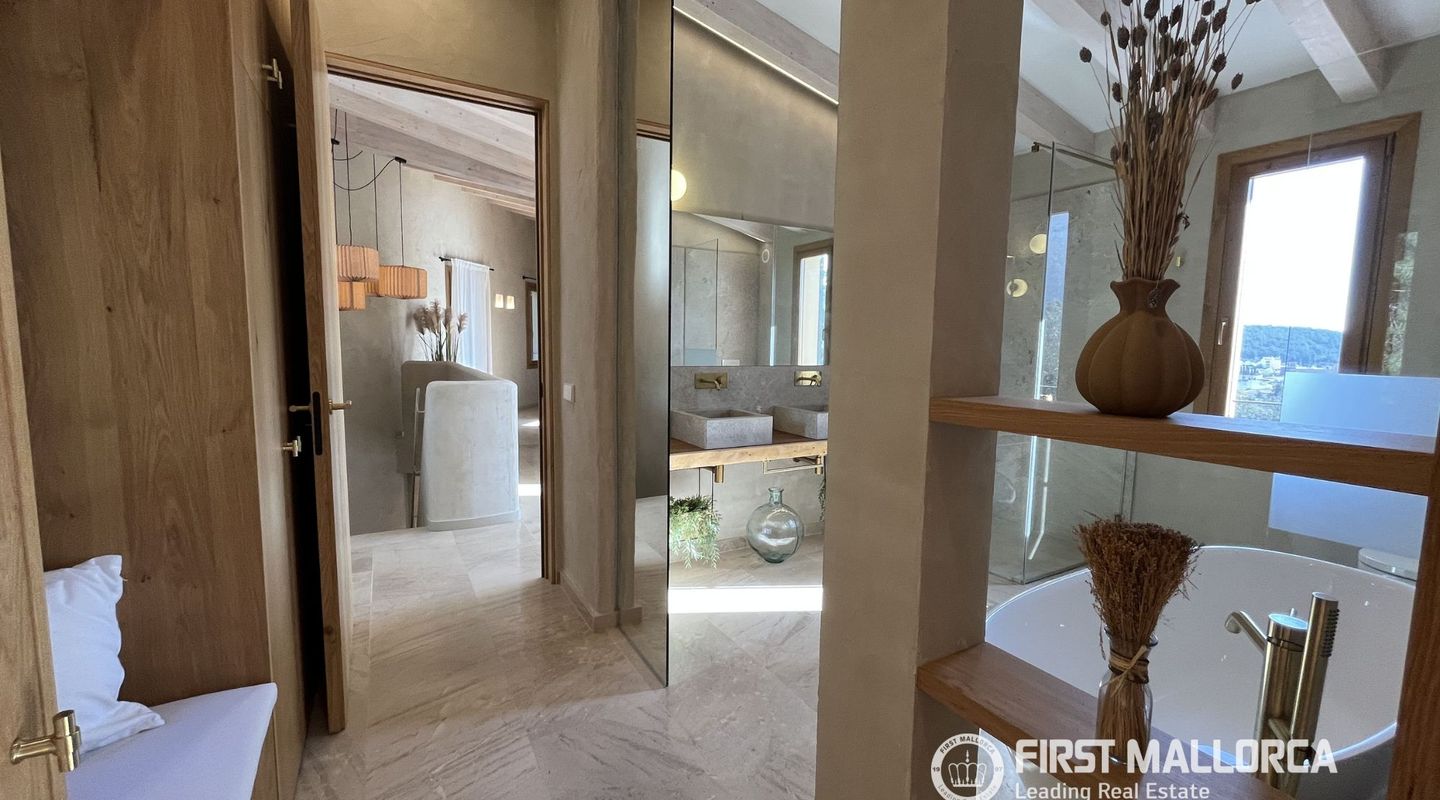 Vi presenterar denna exklusiva lyxfinca belägen i ett upphöjt och privilegierat läge i Pollença, en sann oas av elegans som erbjuder en imponerande panoramautsikt över den pittoreska byn och delvis havsutsikt mot den vackra bukten Puerto de Pollença. Denna unika egendom utmärker sig för högsta kvalitet på materialen och en arkitektonisk design som perfekt kombinerar traditionell medelhavscharm med modernaste komfort. I dess noggrant utformade interiör har hemmet skapats för att garantera maximalt välbefinnande och vila, och erbjuder tre rymliga och ljusa dubbelrum som har tre kompletta badrum en-suite, vilket ger total integritet och sofistikering för hela familjen och dess gäster.